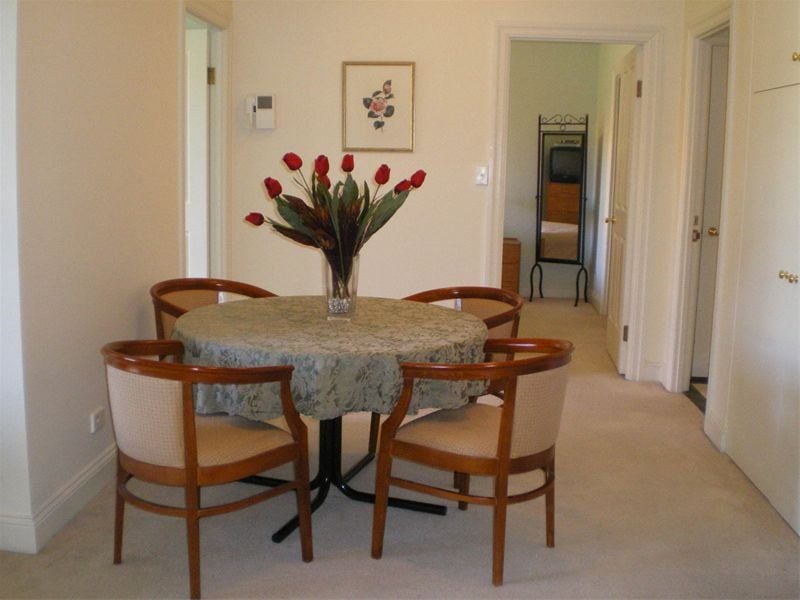 Quality: This beautifully appointed, generously proportioned, fully furnished, 2 large bedroom, 2 bathroom corner apartment has high ceilings and reverse cycle thermostatic ducted air conditioning. Master bedroom has a walk through robe and en-suite bathroom. The second double bedroom has built-in robe. A fully equipped laundry is behind folding doors in the main bathroom. The apartment has abundant natural light and overlooks a private garden, rare in this city location. The classic architecture building (The Ridgeway) features a marble floored ground floor entrance foyer behind security doors and wide hallways providing a quiet, private and luxurious ambiance. Underground single car park is behind two remote control security doors under the building with direct access to the lift.