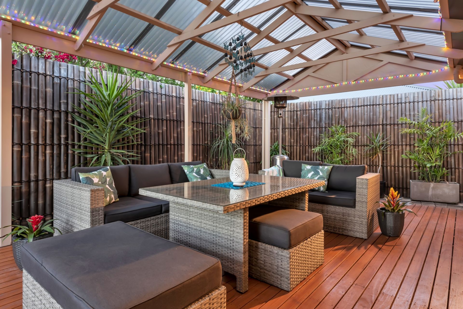 Stepping outside, this is one for the entertainers. With a seamless transition from inside entertaining to outside entertaining, step out onto a beautifully decked area under a large pitched pergola. A roll down shade cloth also helps block out the harsh Australian sun. This low maintenance courtyard space is a tranquil place to enjoy time with family and friends. Around the corner, a shed offers space for the tools and toys, the rainwater tank is environmentally friendly and raised planter boxes are great for the green thumb wanting to be self sustainable.