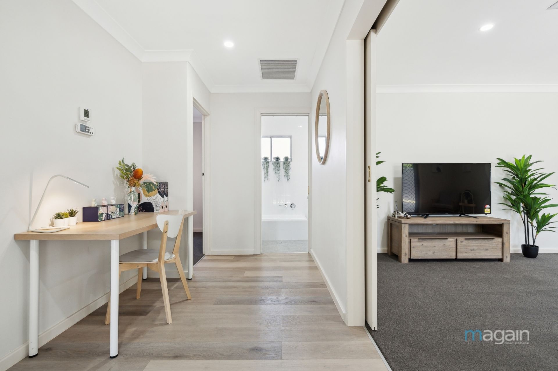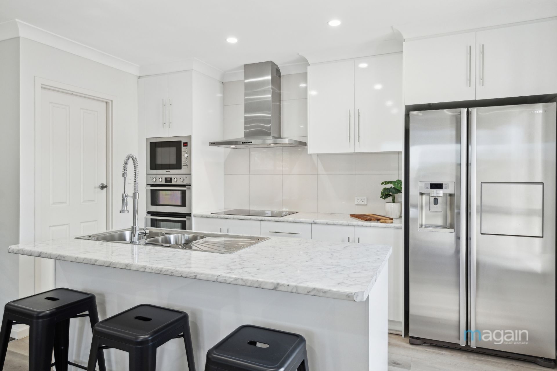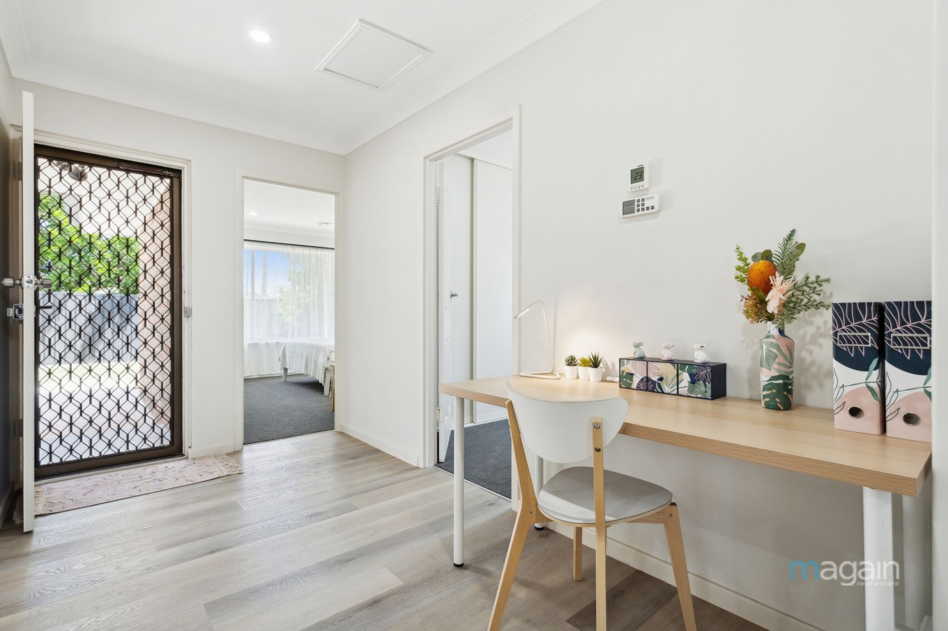 The heart of the home is an open-plan kitchen, living, and dining area that invites warmth and connection. The thoughtfully designed kitchen boasts Blanco appliances with an island bench that doubles as a casual dining spot, while the separate laundry off the kitchen ensures convenience without compromising space. Beyond the main living area, a handy study nook leads you to three well-sized bedrooms, providing ample room for everyone.