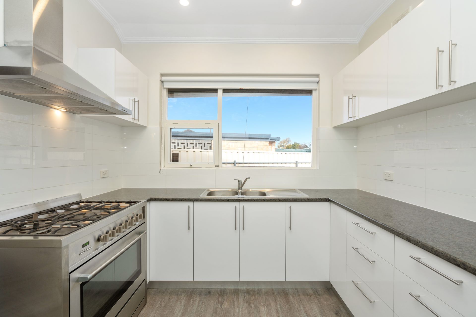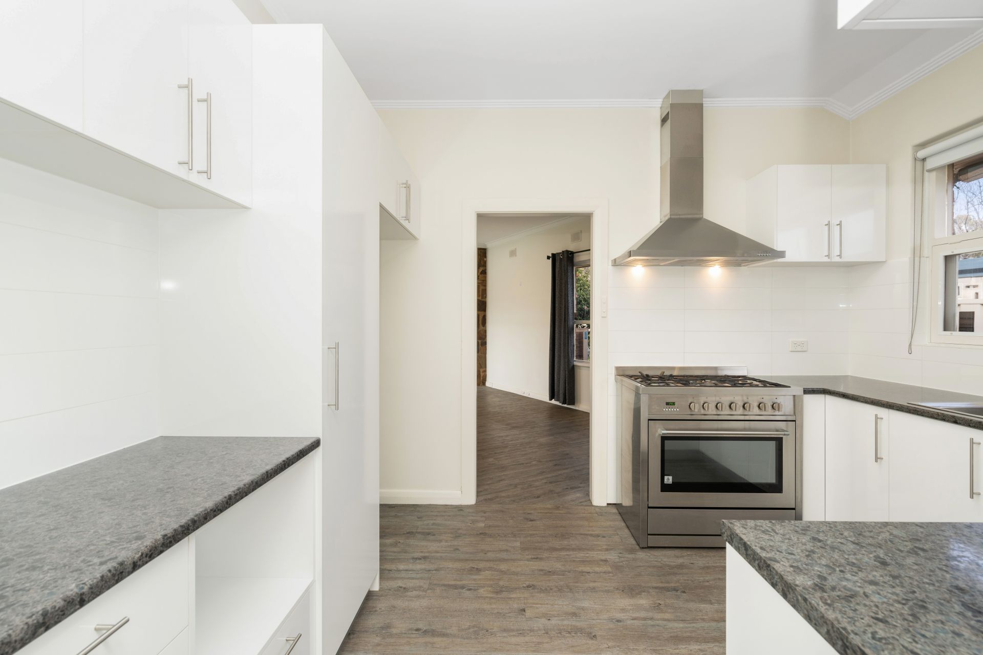 > kitchen with plenty of cupboard space and gas cooking