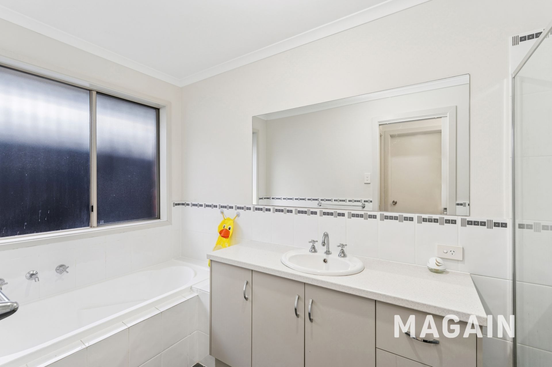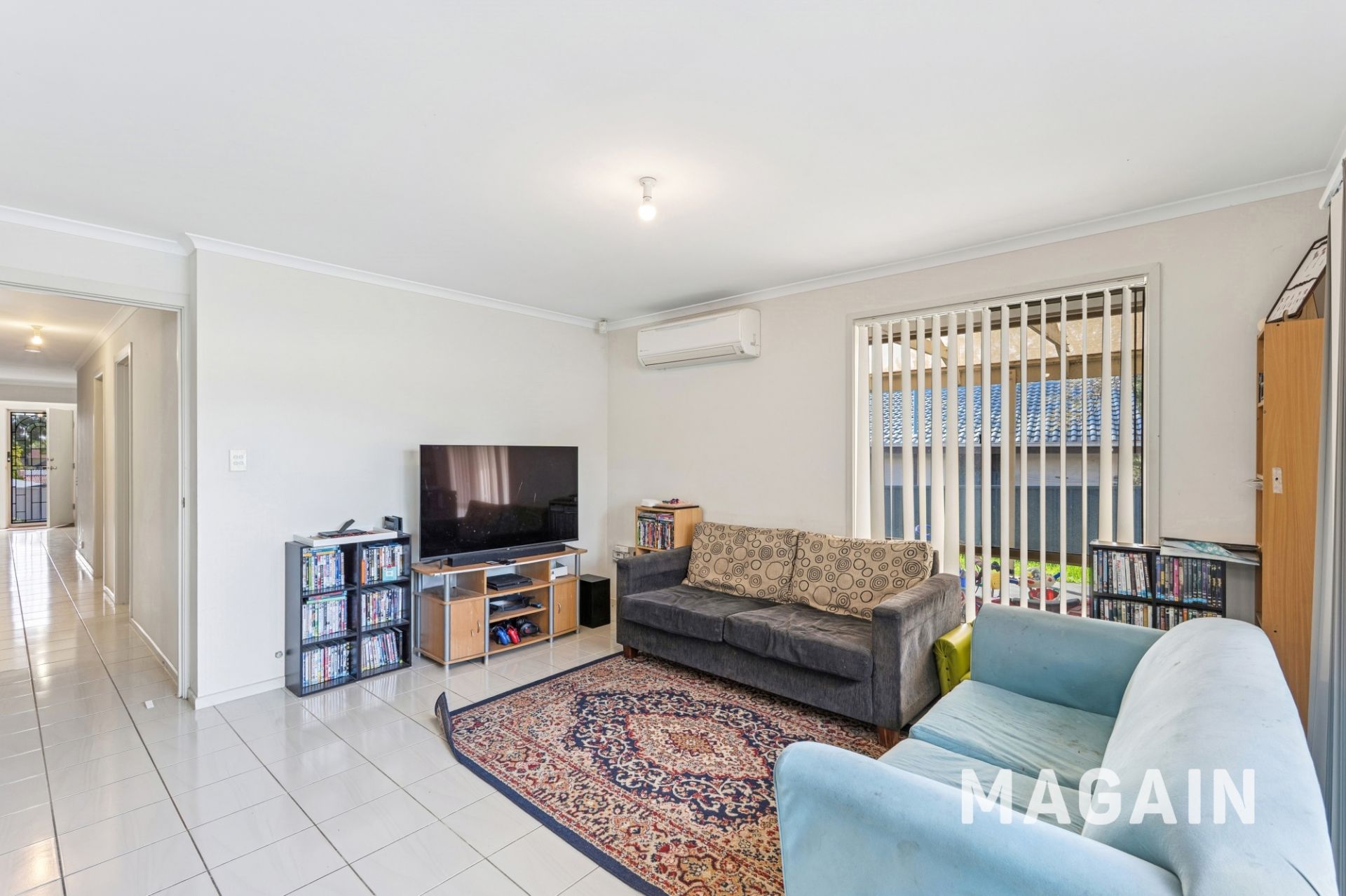 Step inside, and you'll be greeted by a cosy front living area that holds versatile potential – it can effortlessly transform into an additional bedroom or a dedicated study space. Every bedroom comes with well-appointed robes, and the master suite treats you to the luxury of a walk-in robe and a private ensuite. The family bathroom features a full-sized tub, adding a touch of relaxation to your daily routine. The heart of the home is the open-plan living, dining, and kitchen area – a seamless space that promotes togetherness. The neat and neutral kitchen, complete with a walk-in pantry, ample bench space and storage ensure a great space to create family meals.