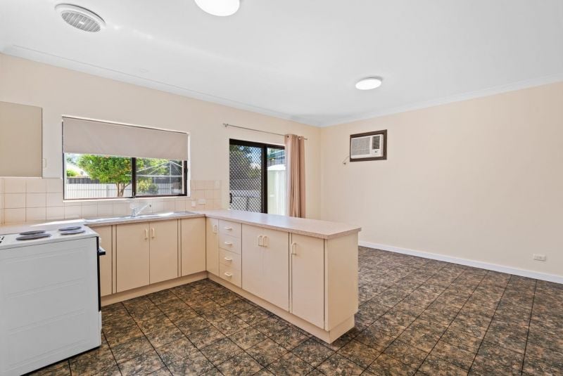 > Open plan kitchen and living at the rear of the home with separate reverse cycle AC.