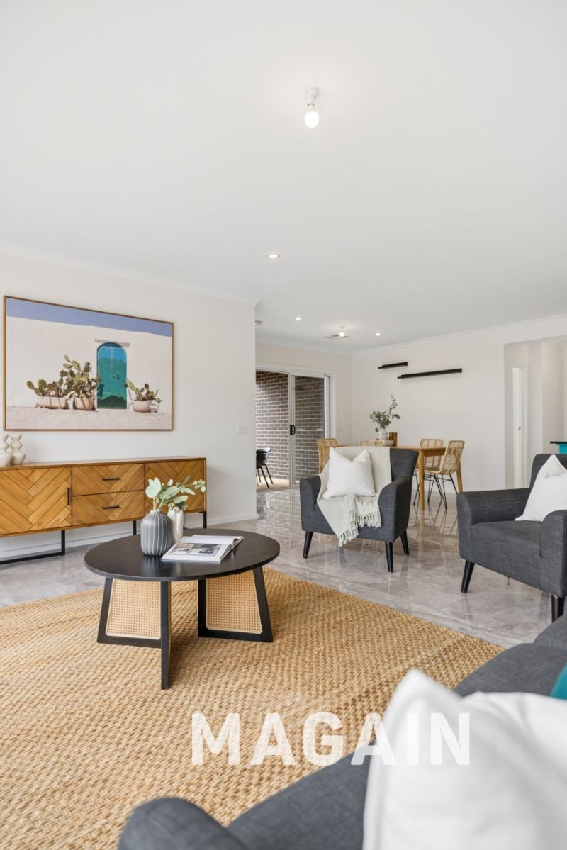 Designed for relaxed family life, the home offers a practical and spacious layout with light-filled open plan living and dining at its heart. The well-appointed kitchen overlooks the main living space and provides excellent bench space, quality appliances and plenty of storage, making it ideal for everyday living and entertaining alike.