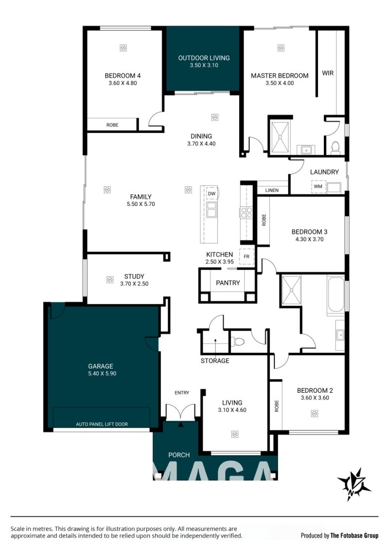Accommodation is generous, with a comfortable master bedroom complete with ensuite and robe, while the additional bedrooms are well-sized and serviced by a central family bathroom.