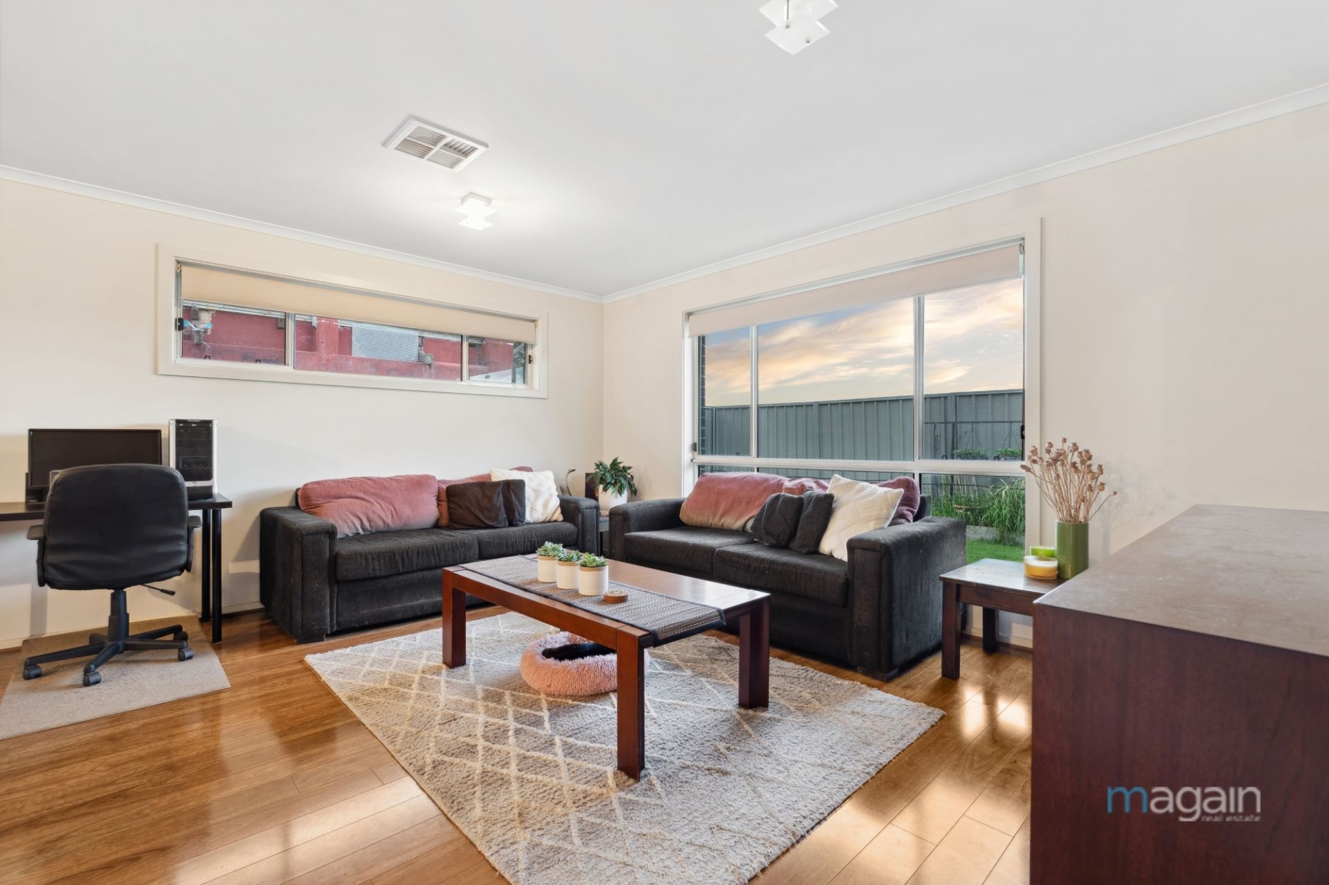 Down the hallway is where you'll find bedrooms 2 and 3, both come with built-in robes and are serviced by a very neat conventional main bathroom, a separate laundry room and a separate toilet.