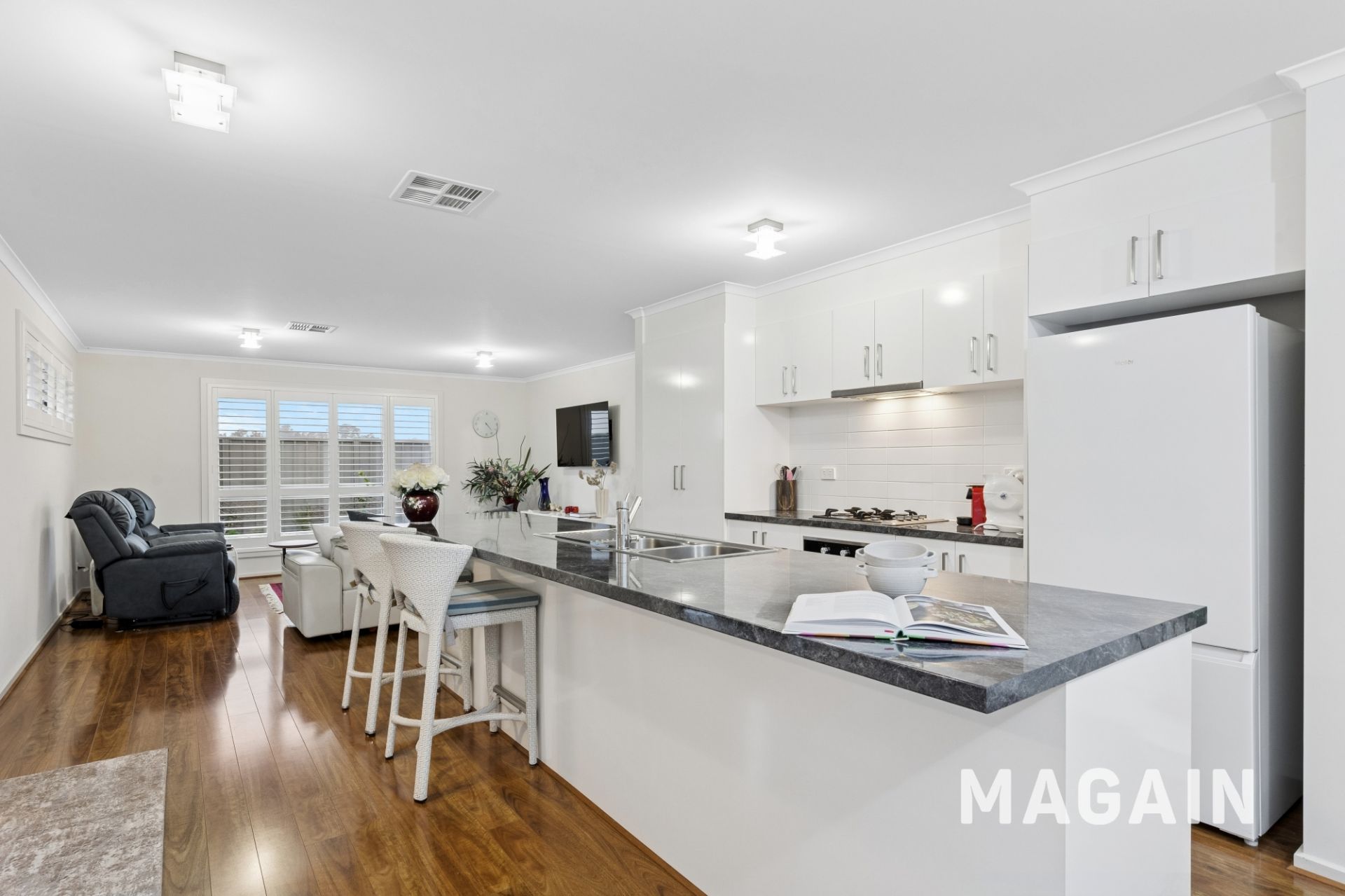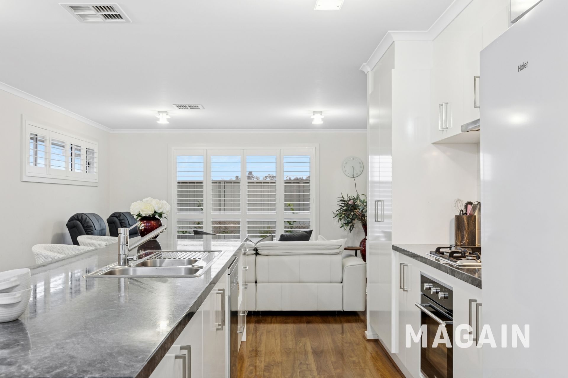 Built in 2014 and set amongst other quality near-new homes, this quiet and private residence is positioned in a peaceful street only moments from the Main Street. The home has been tastefully updated with fresh carpets and newly installed plantation shutters throughout, enhancing both comfort and style.