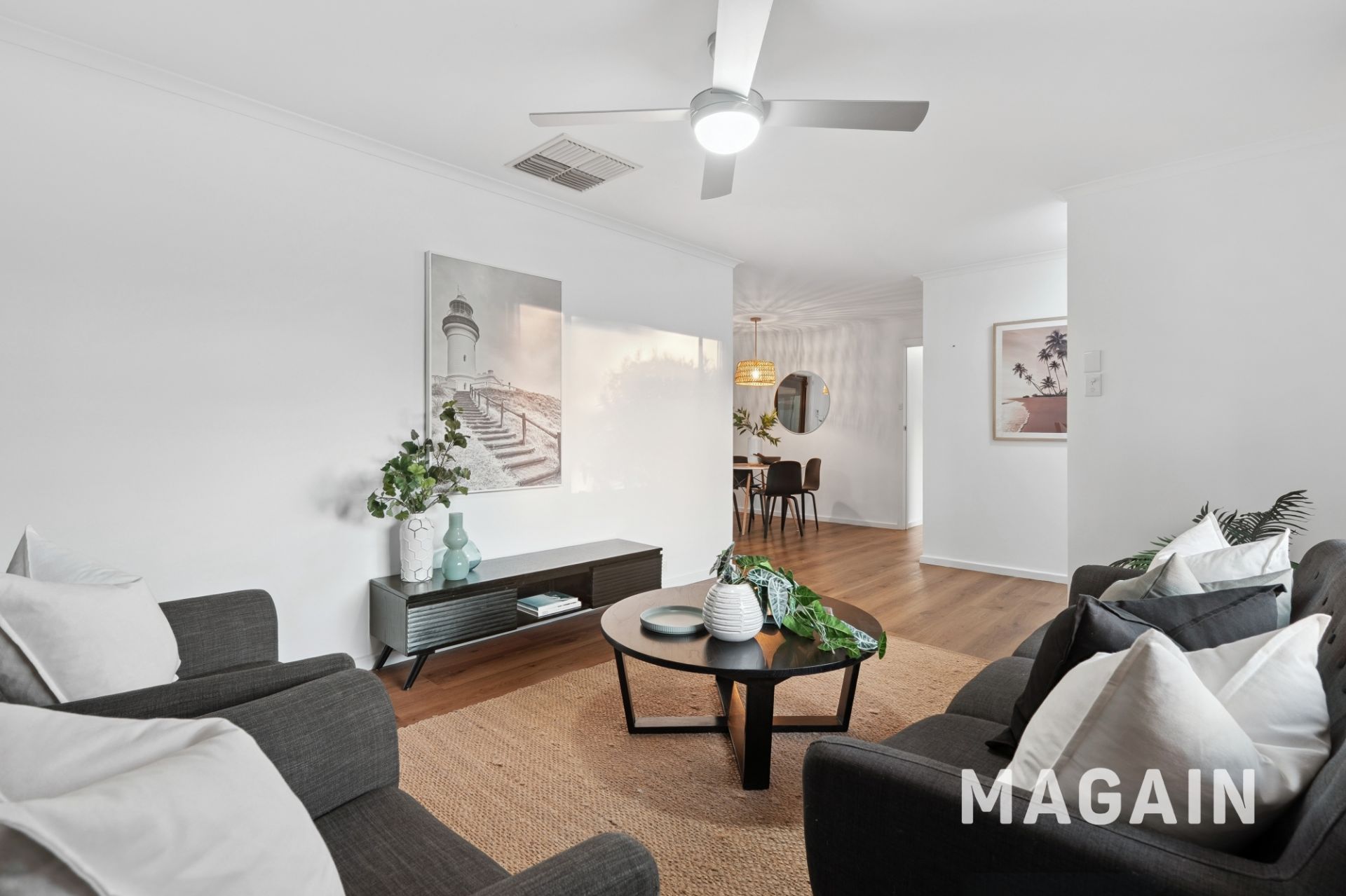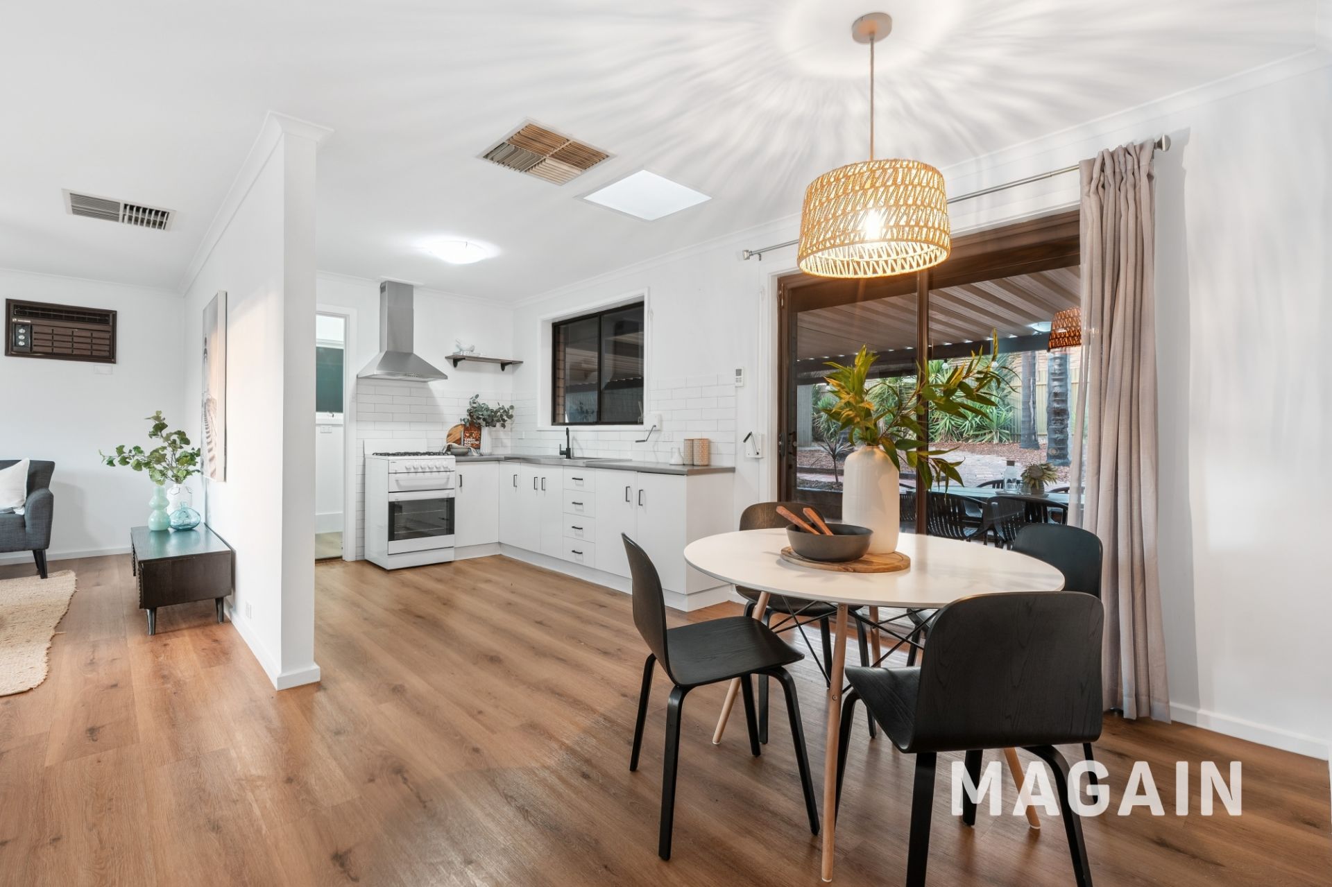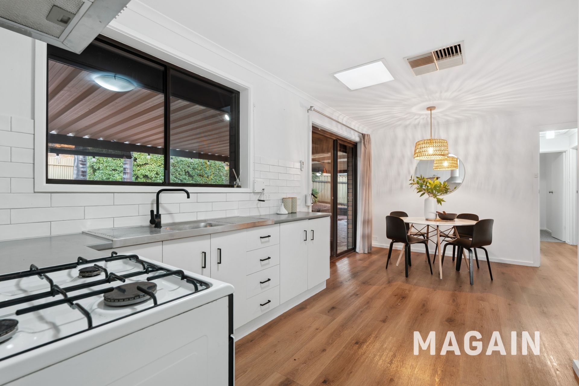 The kitchen, complete with a gas cooktop, electric oven, and great storage solutions, all complemented by an adjoining dining space that makes family meals or entertaining a breeze. Flowing seamlessly from here, the light-filled living room provides a welcoming hub for relaxing or hosting friends, while ducted evaporative cooling runs throughout the entire home to keep every room comfortable through the warmer months. Freshly painted interiors add to the modern, move-in-ready appeal, giving the home a bright, stylish, and inviting atmosphere that buyers will love.