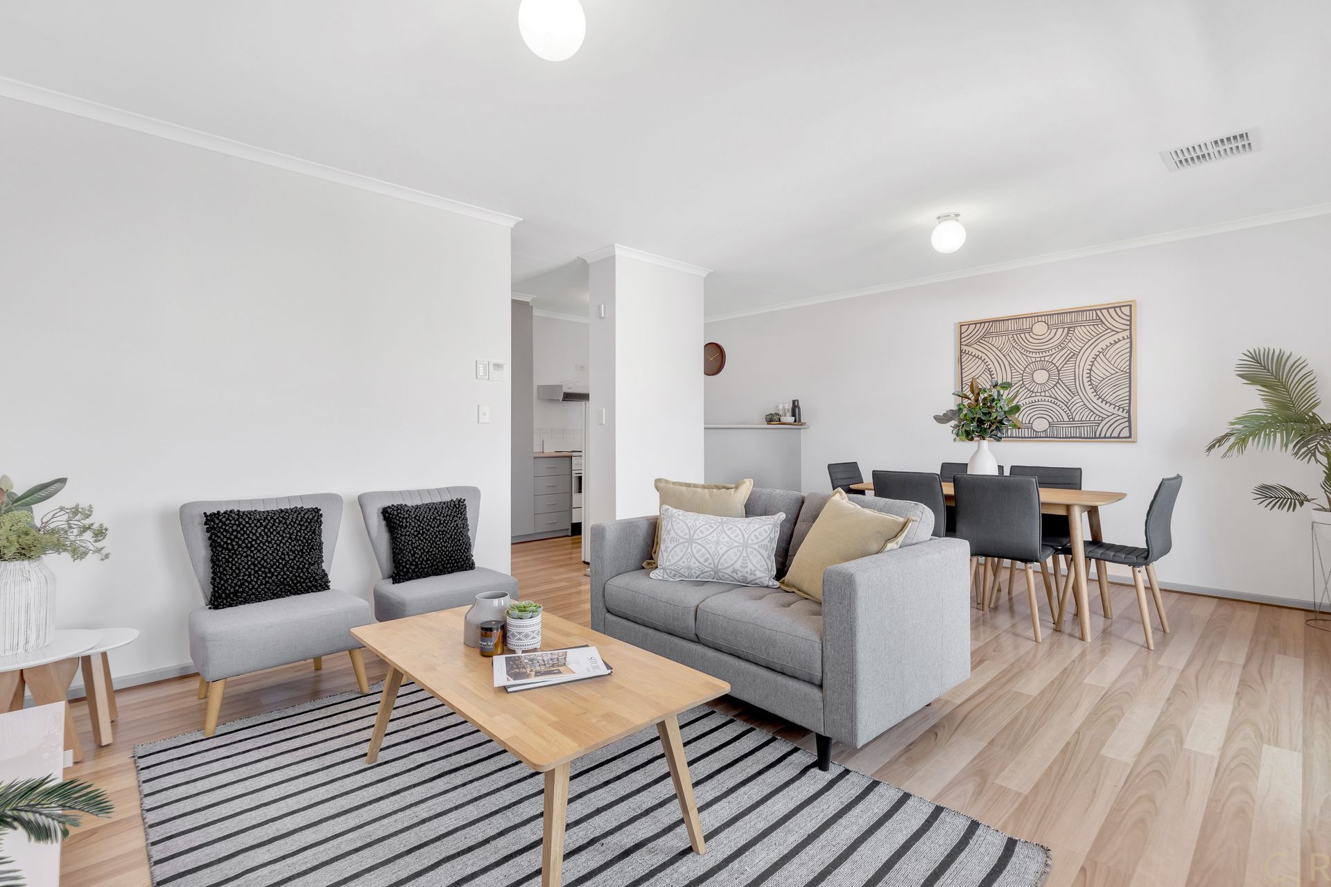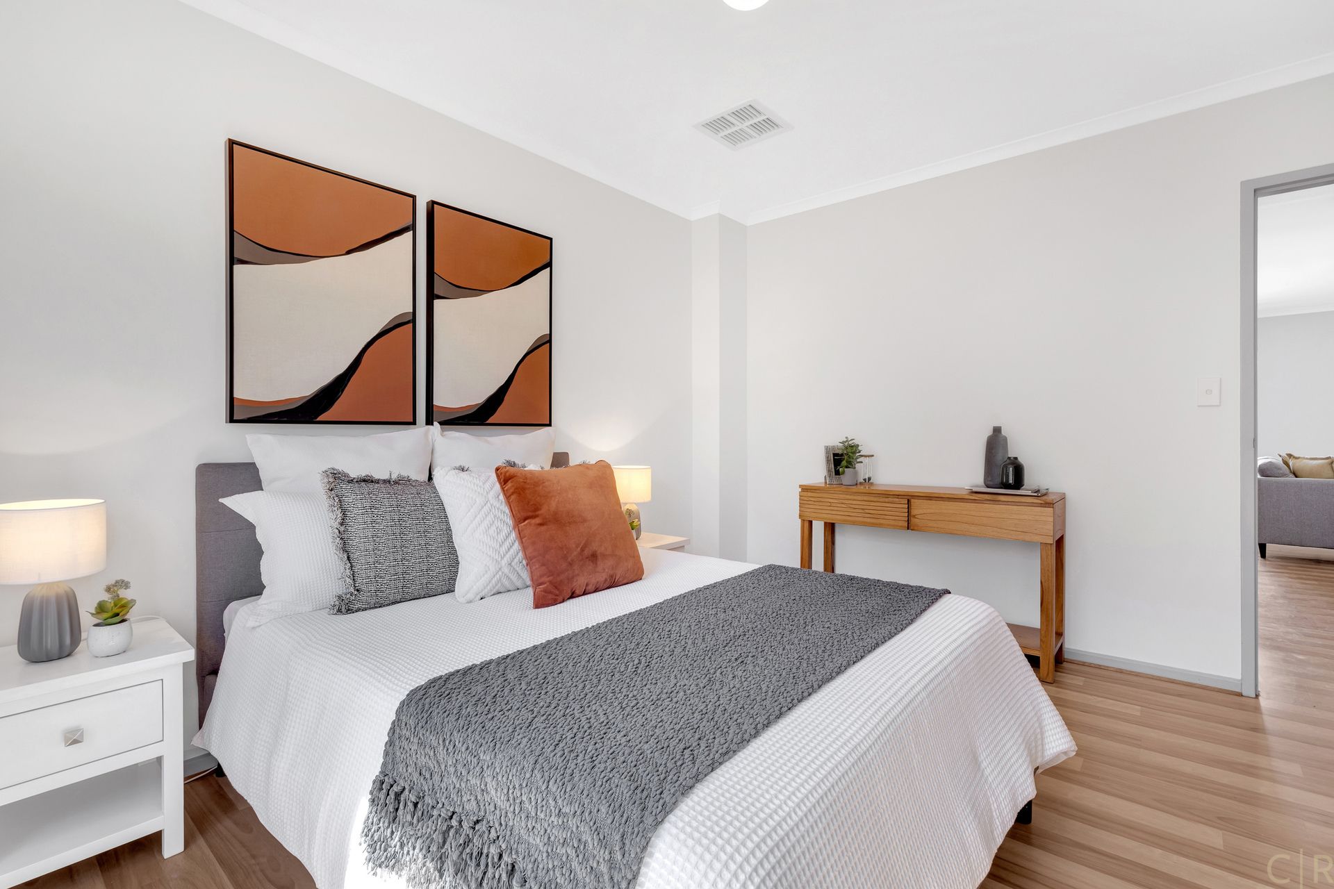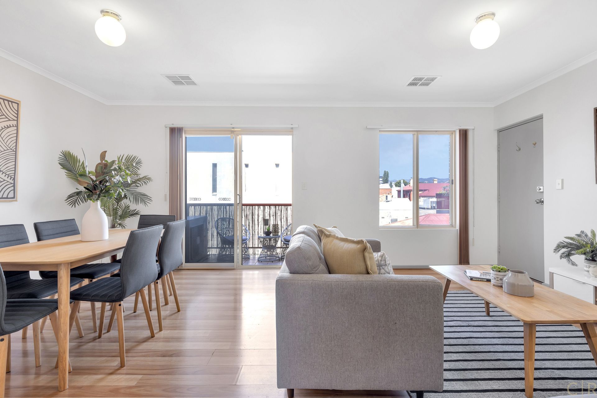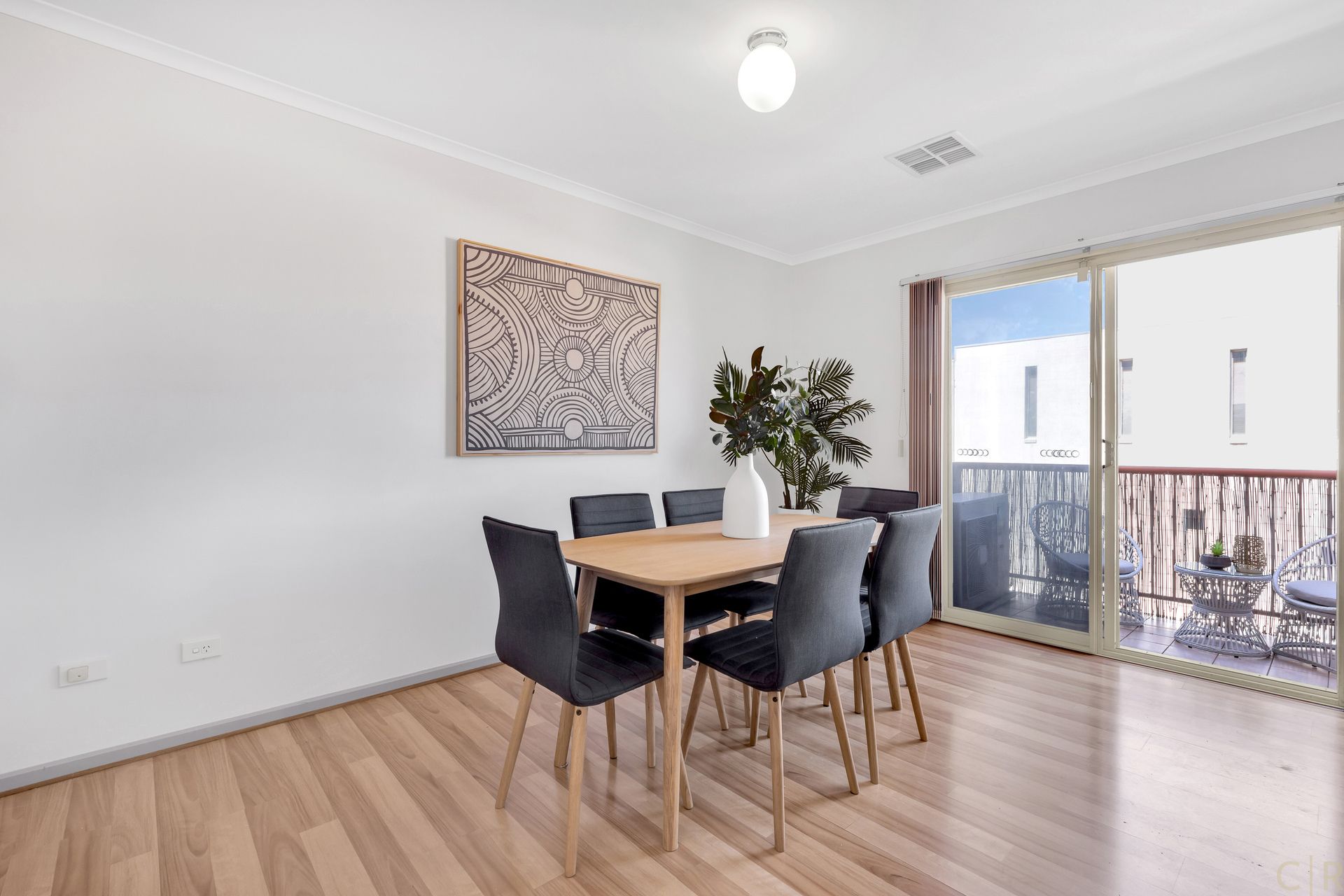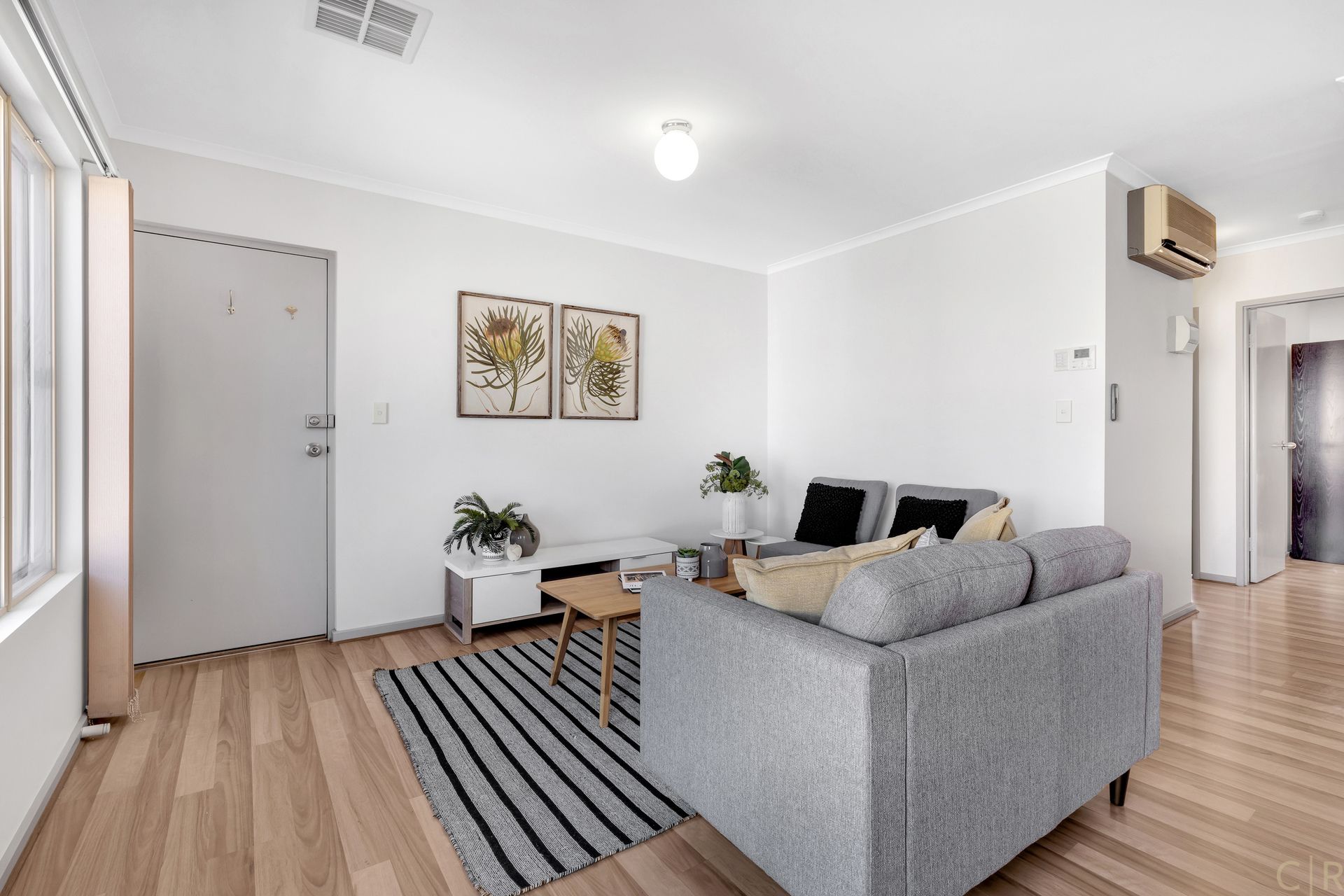 * Floorboards throughout, creating a smooth flow across rooms
