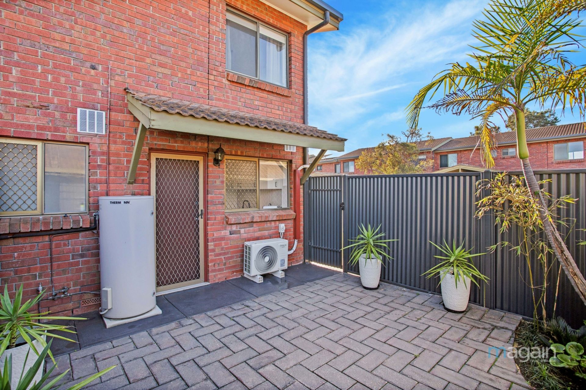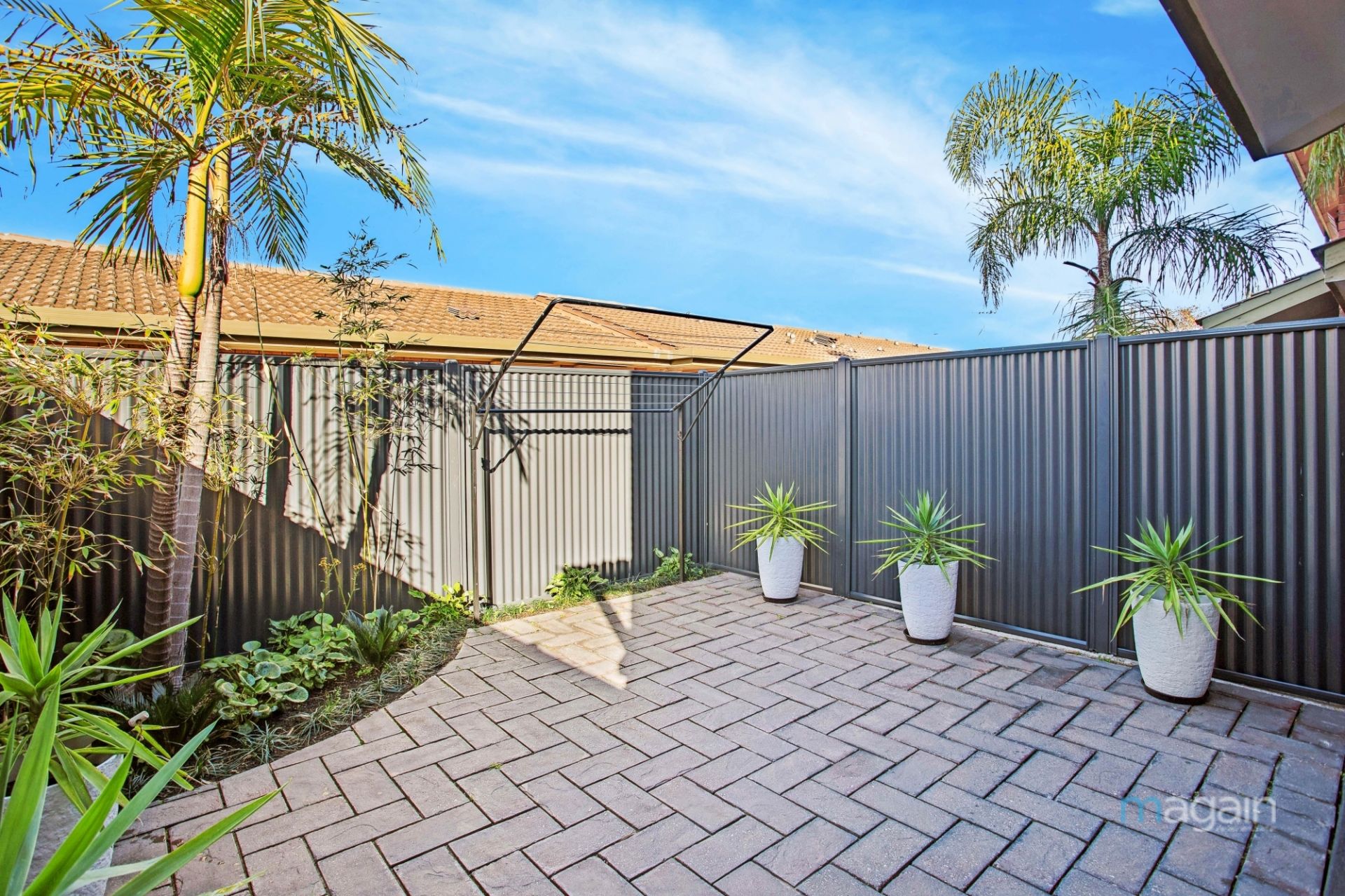 - Private backyard with landscaped garden