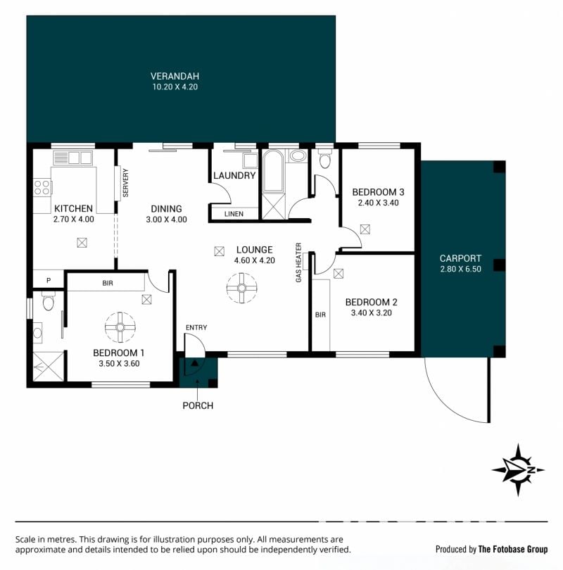 Step inside to a light-filled lounge with gas heating, flowing through to the open dining area and well-equipped kitchen complete with a servery window and ample storage. Each of the three bedrooms includes built-in robes, with the main bedroom positioned privately at the front of the home.