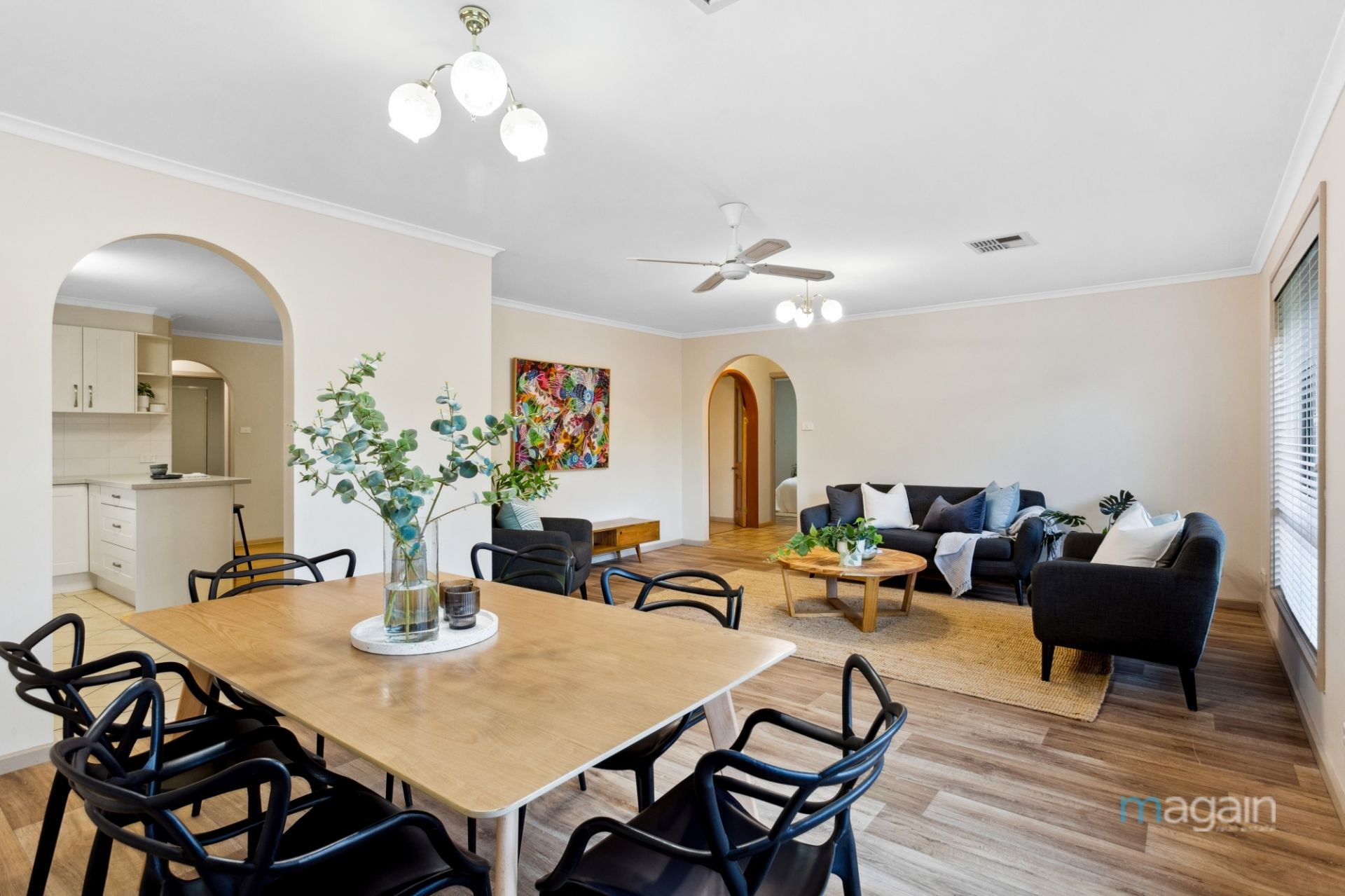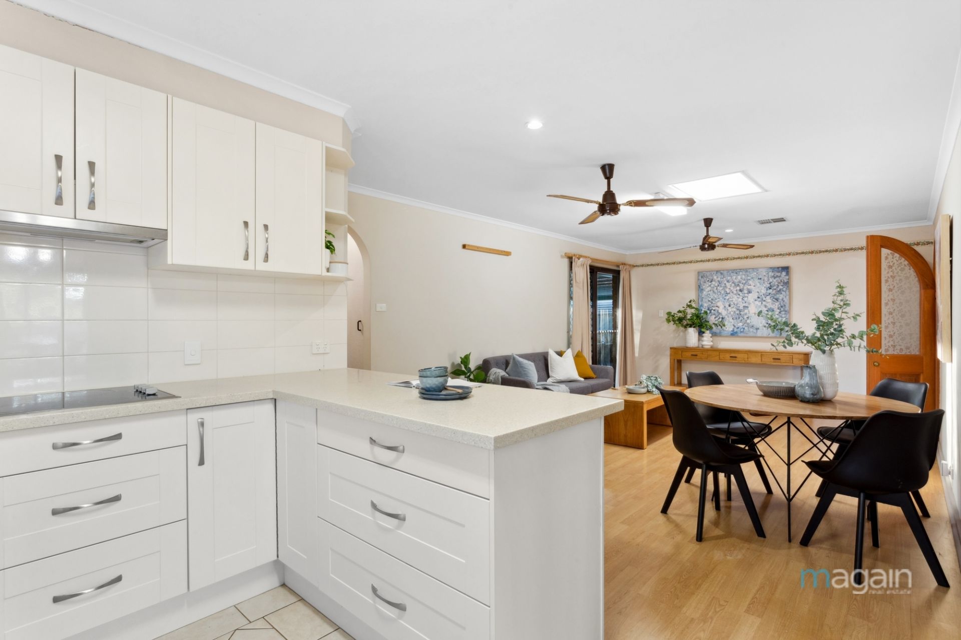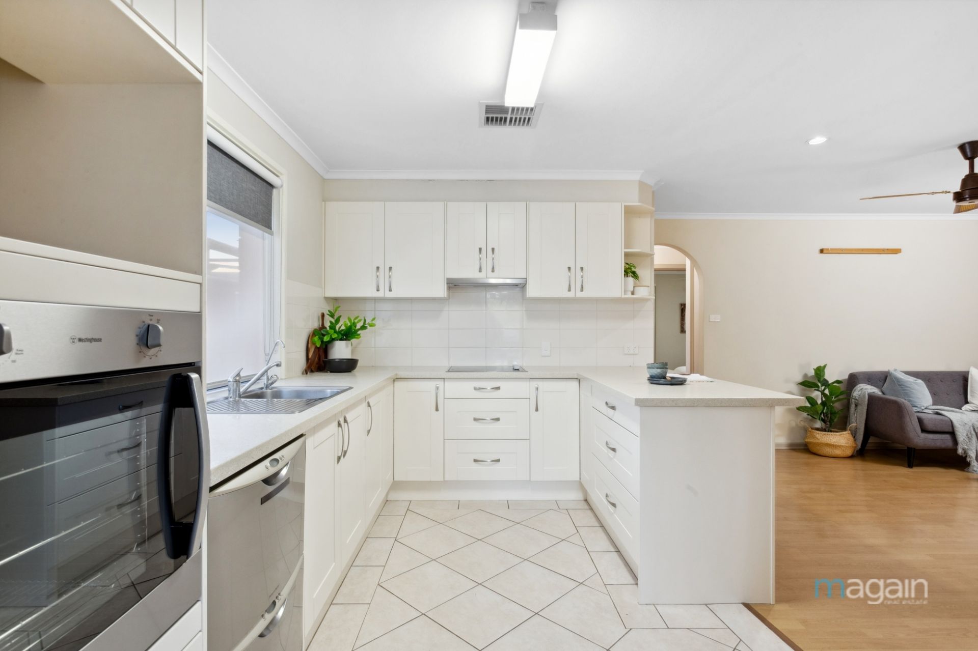 The home offers a spacious living and dining area at the front, seamlessly flowing into the beautiful kitchen and a second living and dining space. The kitchen is a standout, featuring elegant benchtops, a modern dishwasher, and plenty of cupboard and bench space, making it a chef's dream. Whether you're preparing a family meal or entertaining guests, this kitchen has everything you need.