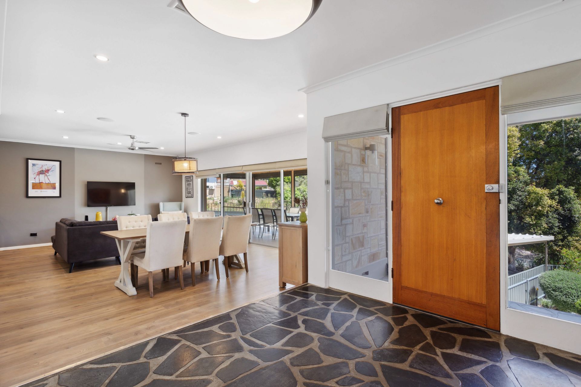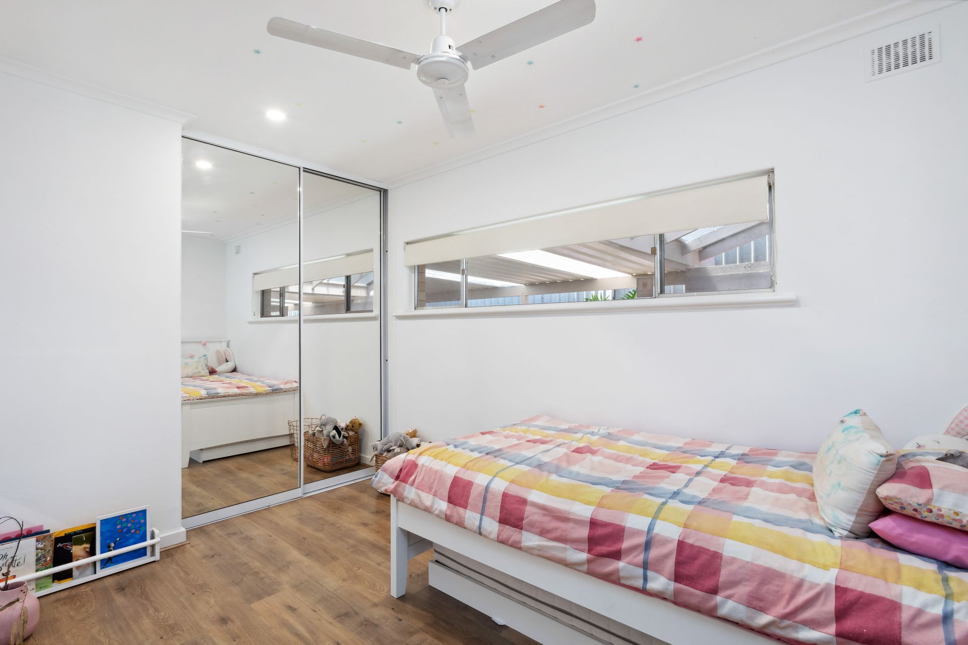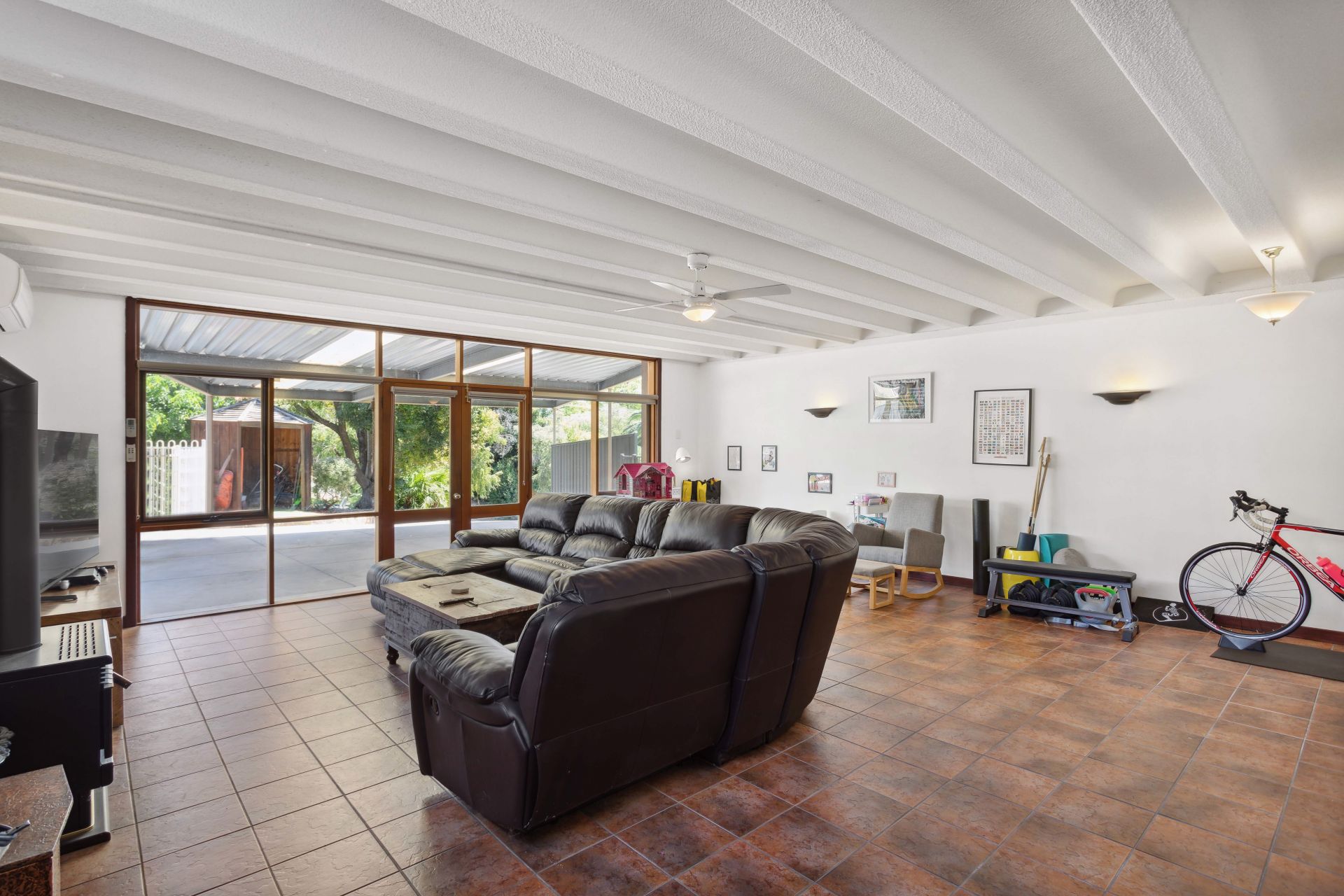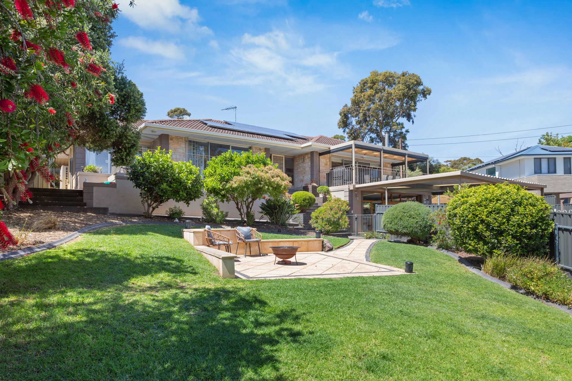 In addition to its stunning design, this home comes with a double carport, zoned ducted reverse cycle heating and cooling, a split system heating and cooling unit, a security alarm system, solar panels, and a handy garden shed. It's a rare find, offering impeccable features and tasteful decor in a neutral color palette.