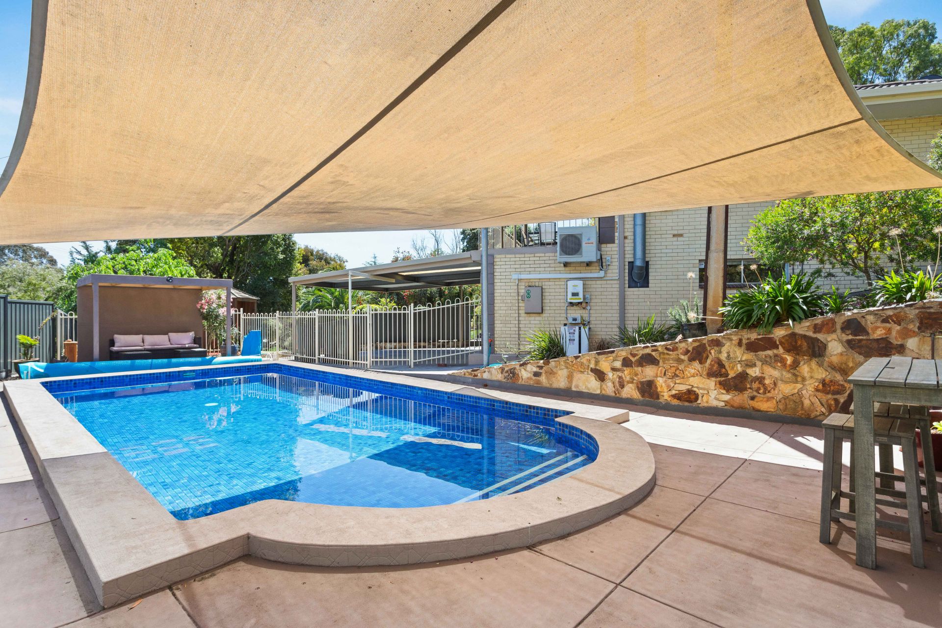 Outdoor living at this residence is nothing short of paradise. Whether you prefer the covered rear yard with charming garden beds or the fully fenced front yard with a lawn, both spaces are designed for stylish entertaining, play, and relaxation. The sparkling saltwater/chlorinated in-ground pool, complemented by a delightful patio and shaded sail, adds a touch of resort-style living to your own backyard. Established tiered gardens and a spacious shed for pool equipment complete the picture.