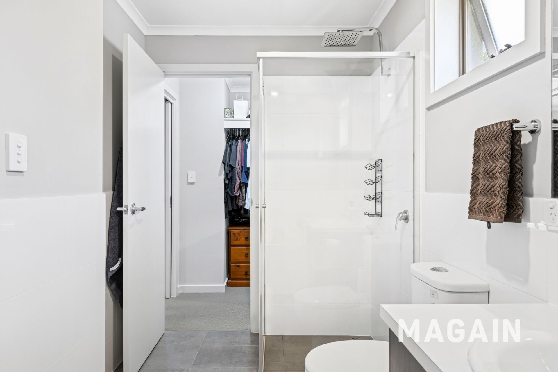 Upstairs, the accommodation is thoughtfully arranged. The master bedroom includes a generous walk in robe and enjoys two way access to the main bathroom for added privacy and convenience. A small balcony extends from this level, providing a pleasant spot to enjoy fresh air and a morning coffee. Bedrooms 2 and 3 feature ceiling fans and carpets for added comfort – a great space for children, guests or to even use as a study space.