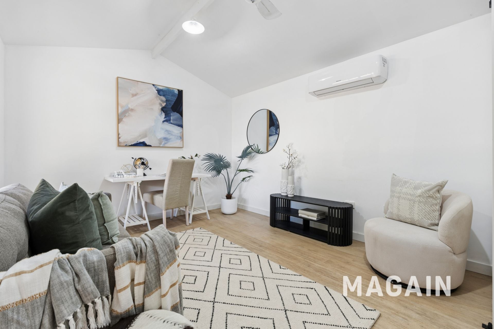 Year-round comfort is assured with reverse cycle heating and cooling, while roller shutters on the front and back windows provide added privacy, security and energy efficiency.