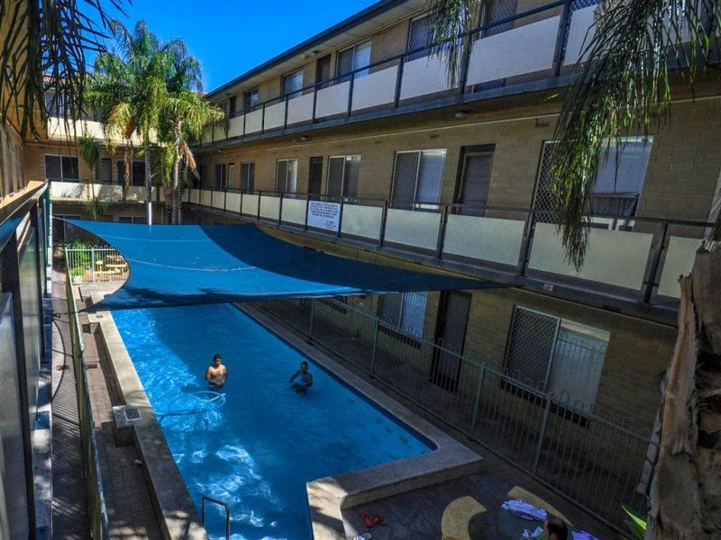 The Dorchester Complex', features a communal inground swimming pool and outdoor area, two bedrooms, open plan kitchen/living and new split system heating and cooling.