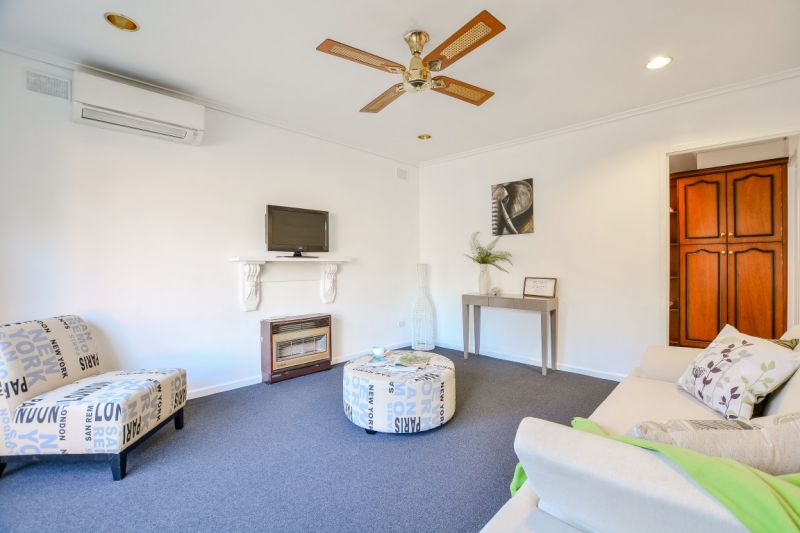 With a modern updated bathroom, new carpets and floor coverings, air con heating/cooling and overhead fans in master bedroom and lounge. Master bedroom also with built in robes.