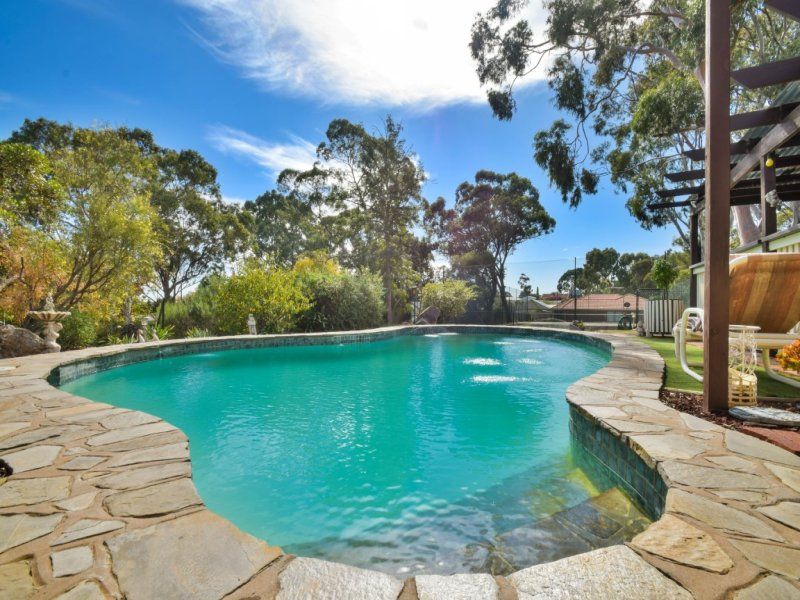 Set well back from the road and with a circular driveway, it offers a formal lounge with feature gas log fire, spacious new kitchen with loads of cupboards & self closing drawers, dishwasher, split system air conditioner and picture windows overlooking the pool. From the adjoining dining area, the undercover pergola area is easily accessed.