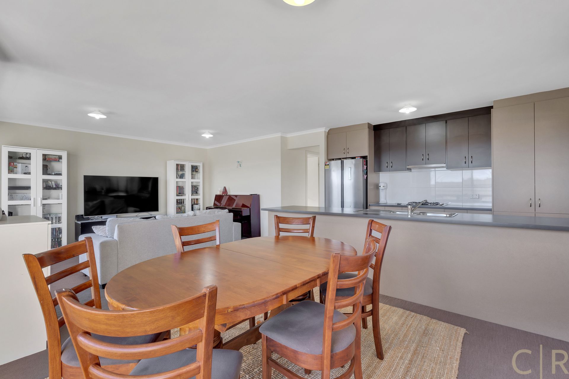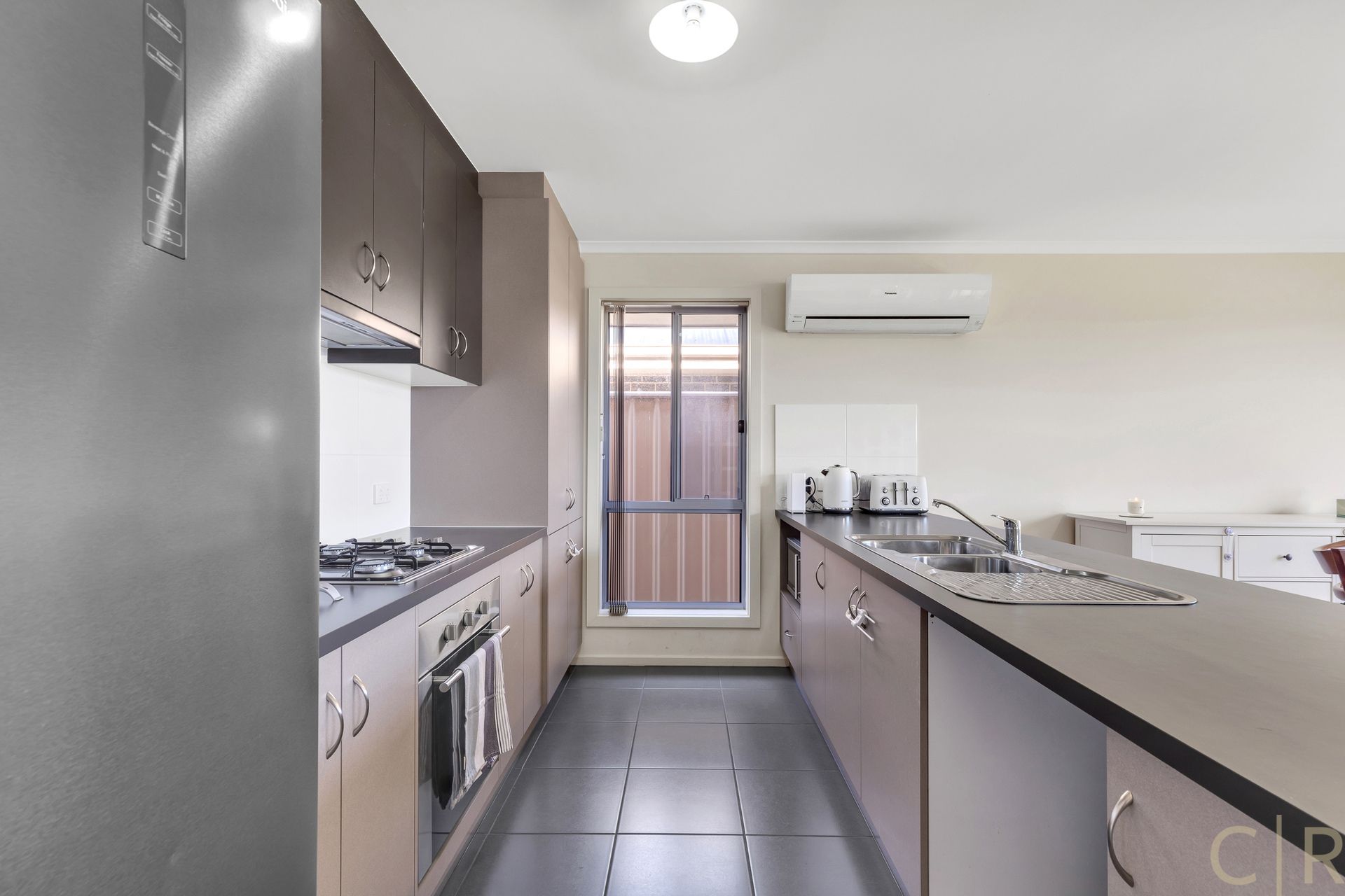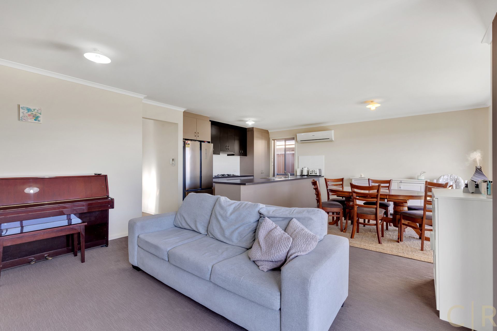 * Open plan kitchen/ living, with large windows to the backyard