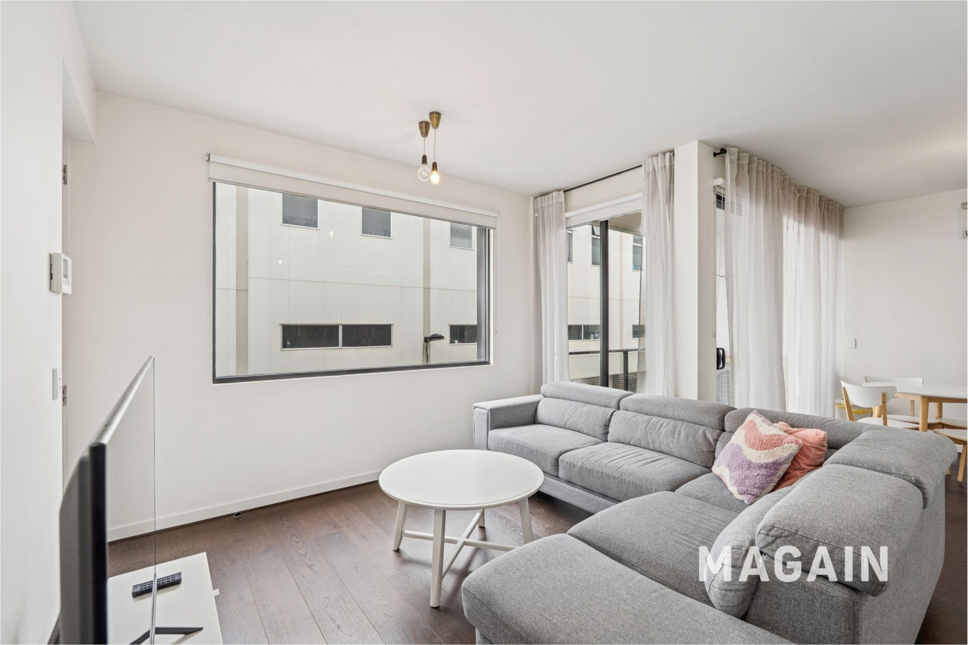 This modern day, chic apartment boasts a functional and comfortable, generous open plan design with a sizeable balcony and glass balaustrade. Comprising of two spacious bedrooms both with built-in robes; a large, stylish bathroom/laundry combination that features overhead shelving, mirrored cupboards, dual above bench vanities and an enormous shower; a generously proportioned, light filled open plan living design with timber-look flooring and a crisp white kitchen containing quality stainless steel appliances, gas cooking and ample storage space.