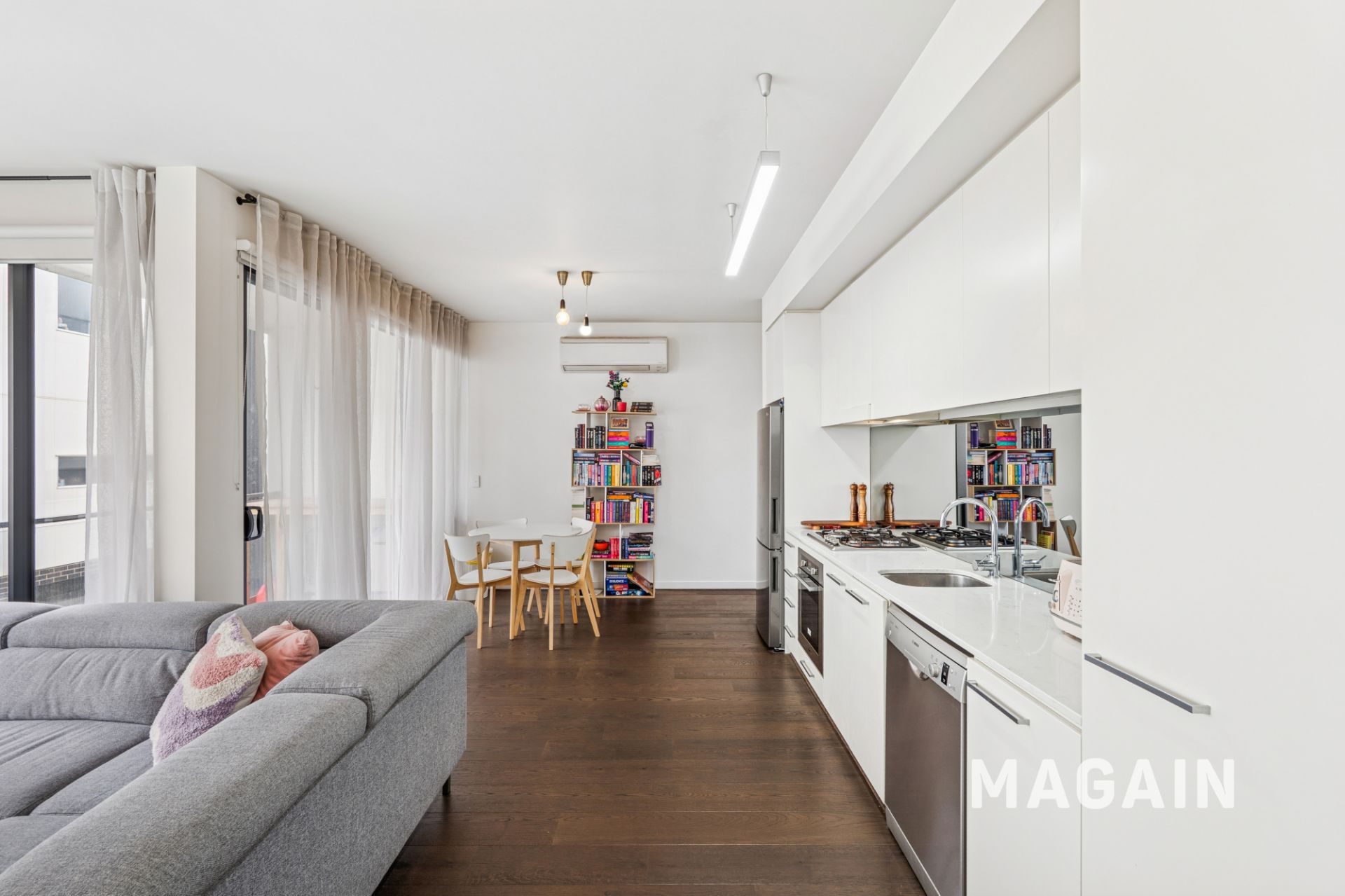 Open plan kitchen, living and dining