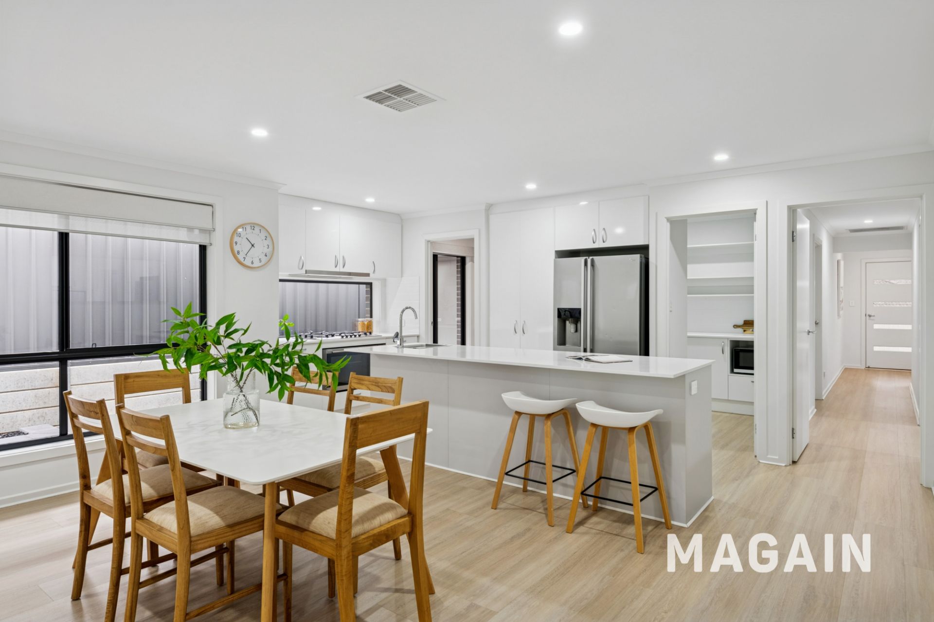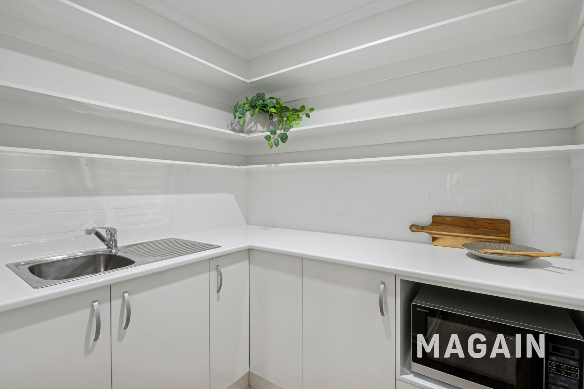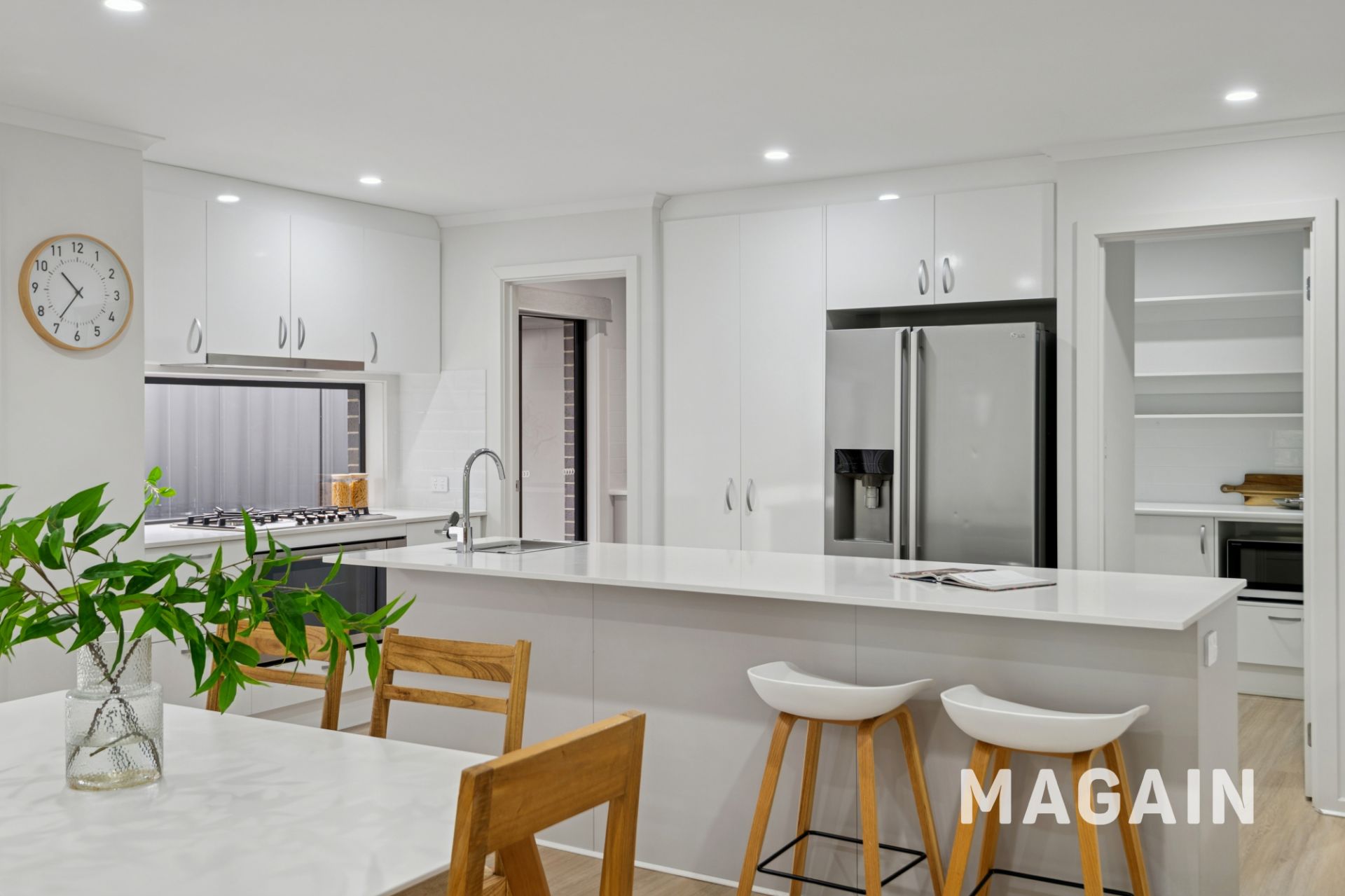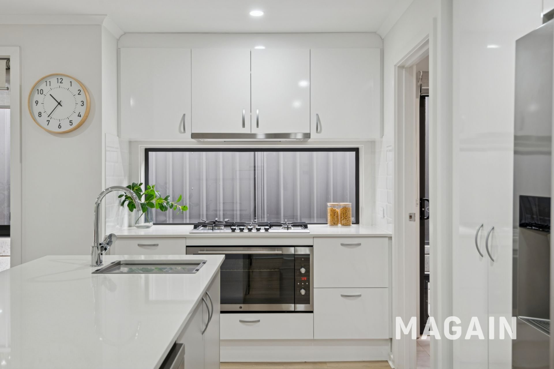 Step inside to a light-filled open-plan kitchen, dining and living area that forms the heart of the home. Designed for both relaxed living and entertaining, the kitchen is beautifully appointed with a gas cooktop, oversized oven, dishwasher and generous bench space, with a breakfast bar ideal for casual meals. The generously sized butler's pantry adds both functionality and extra storage, making meal prep and entertaining effortless. Sliding doors create a seamless connection to the outdoor entertaining area, allowing hosting family and friends to be easy and enjoyable.