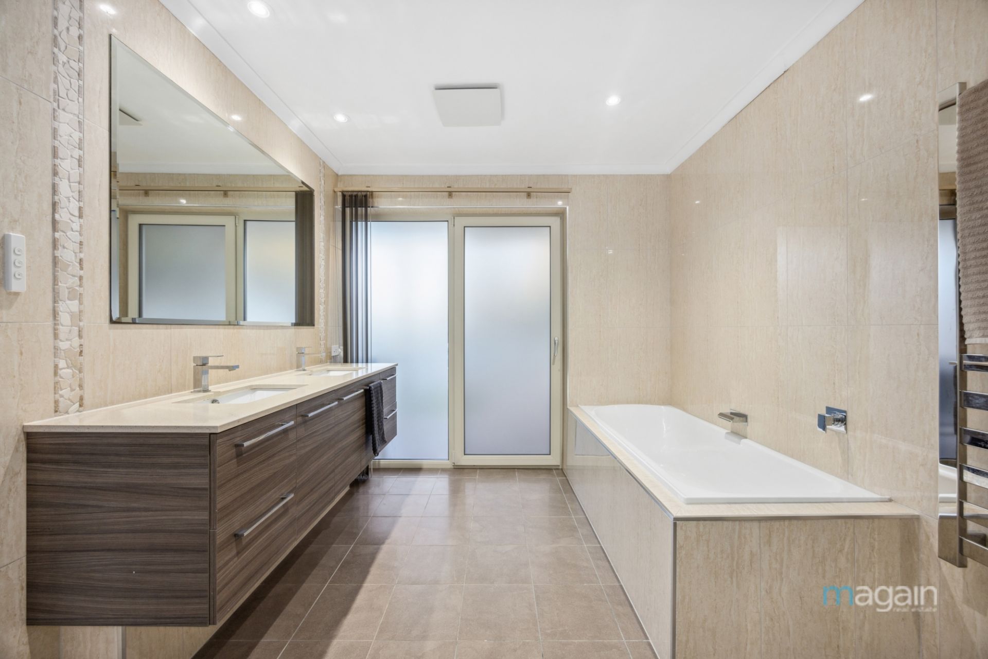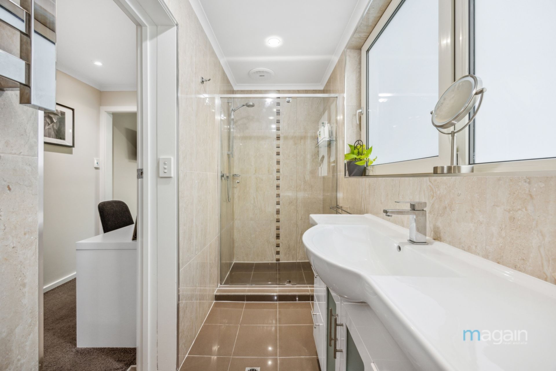 The master bedroom is impressively spacious and designed to be a true retreat with its own walk-in robe and private ensuite, offering a blend of luxury and practicality. Bedrooms two and three each feature their own ensuite and built-in robe, ensuring privacy and convenience, perfect for older children or guests seeking comfort and autonomy. Bedroom four, equipped with a built-in robe, is serviced by the thoughtfully designed main bathroom, which includes a shower, bath, and vanity. The two-way access toilet adds an element of versatility, ideal for guest use and minimizing disruptions. The generously proportioned laundry, complete with ample cabinetry, adds exceptional storage and functionality, catering perfectly to the demands of a busy family lifestyle by providing organized and efficient space for daily tasks.