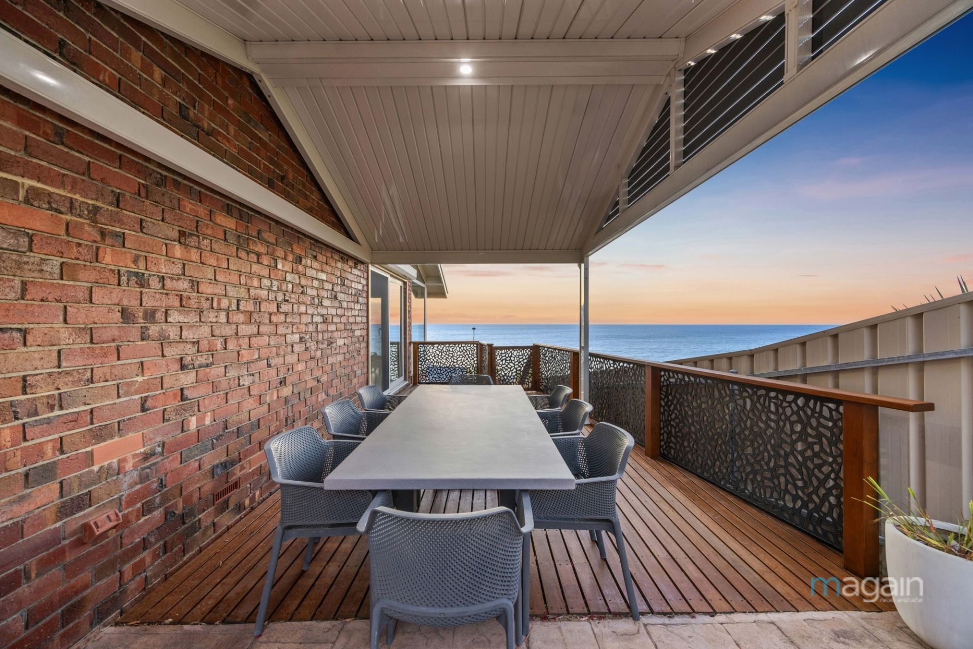 The open-plan family living area seamlessly transitions through sliding doors to the rear yard, creating an entertainer's dream space. This backyard boasts a solar-heated, saltwater in-ground pool that invites year-round enjoyment. With two distinct outdoor entertaining areas, you can host gatherings in any weather. The partially enclosed side space offers unparalleled privacy paired with breathtaking ocean views, perfect for intimate gatherings or relaxing moments. The rear entertaining area impresses with a built-in outdoor kitchen and a pergola-covered, expansive paved area, ideal for larger get-togethers, all set against show-stopping ocean views that simply must be experienced firsthand. The addition of an artificial grass yard adds a practical, low-maintenance touch, making it perfect for family activities and carefree enjoyment.