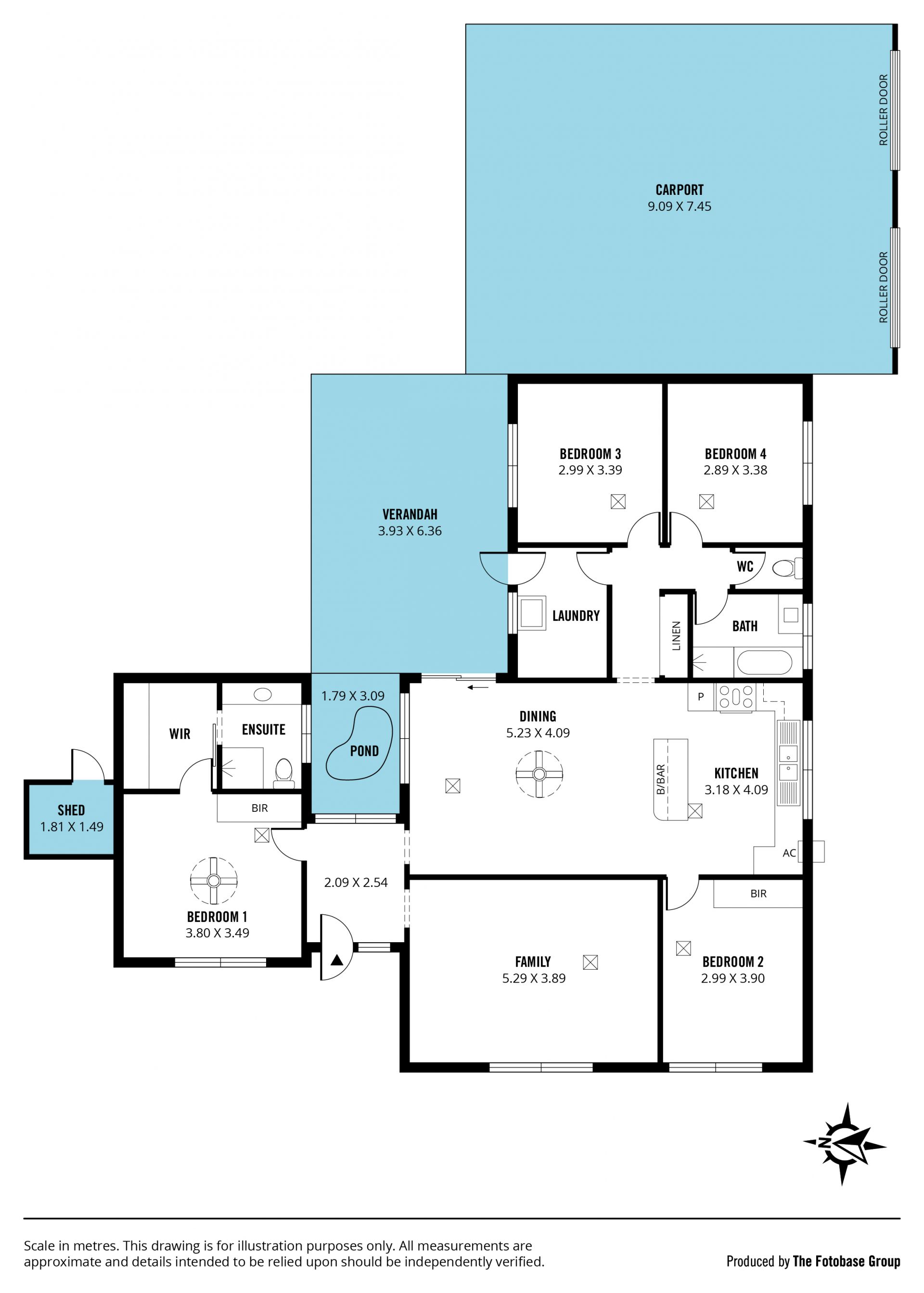 > 4 bedrooms, main with ensuite, walk in robe and ceiling fan
