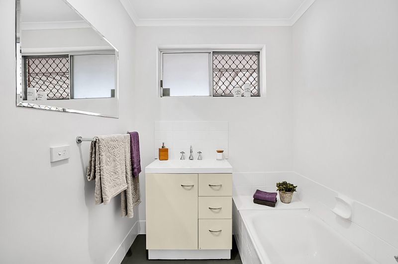 Walk in from the entranceway to the lounge at the front with its floating floors. The whole house has been repainted a modern white and has new blinds throughout and soft new carpets in the bedrooms. The kitchen and bathroom are modern, and all d?cor is in neutral tones. The kitchen has plenty of cupboard space and gas cooking with light-coloured tiles on the floor.