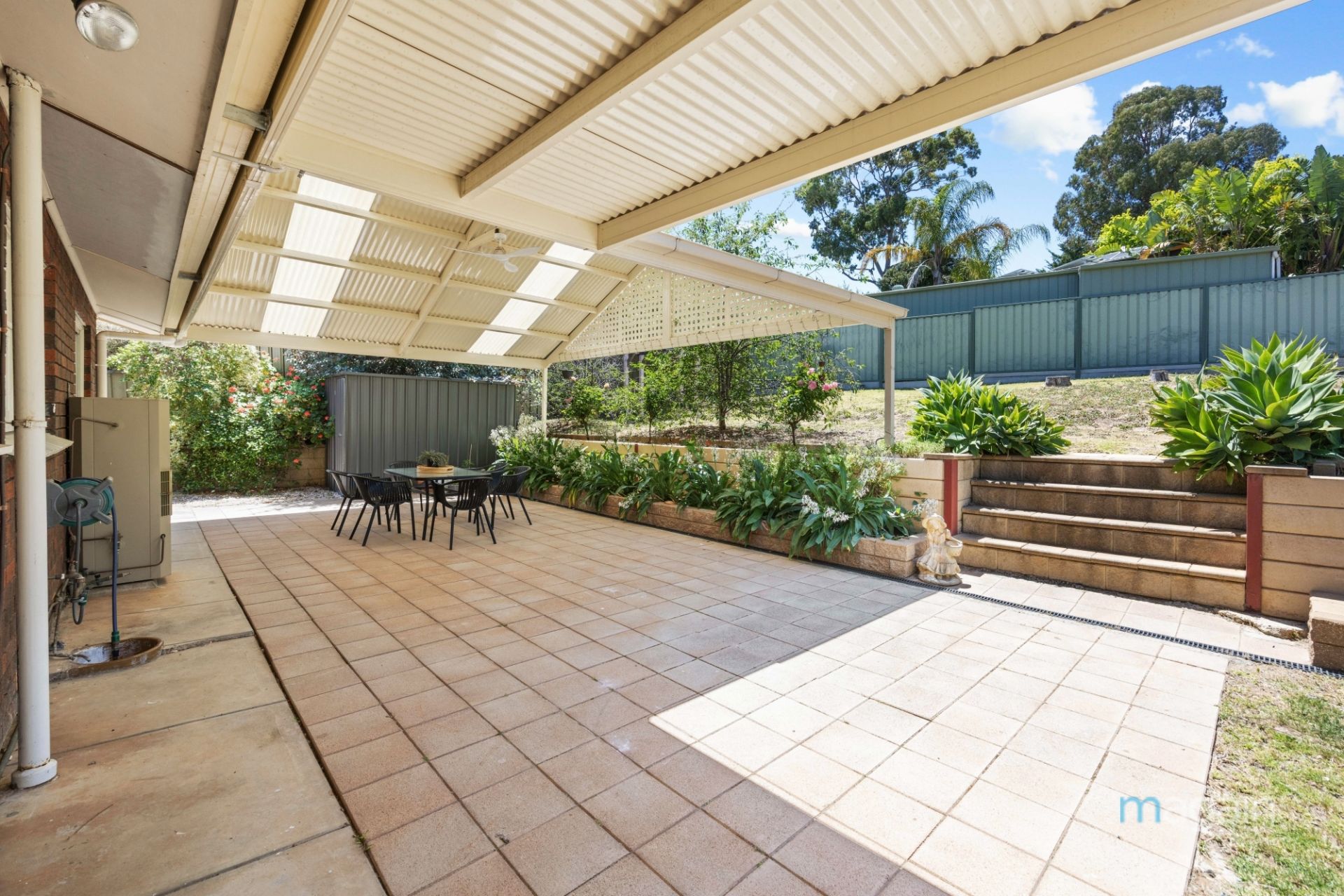 Glass sliding doors from the kitchen/dining area open to an enormous paved entertaining zone along the back of the home, overlooking the garden. This area is perfect for hosting family and friends, with a pitched roof pergola ensuring year-round use. The expansive split-level rear yard with a large level lawn area provides privacy for kids and pets to freely explore.