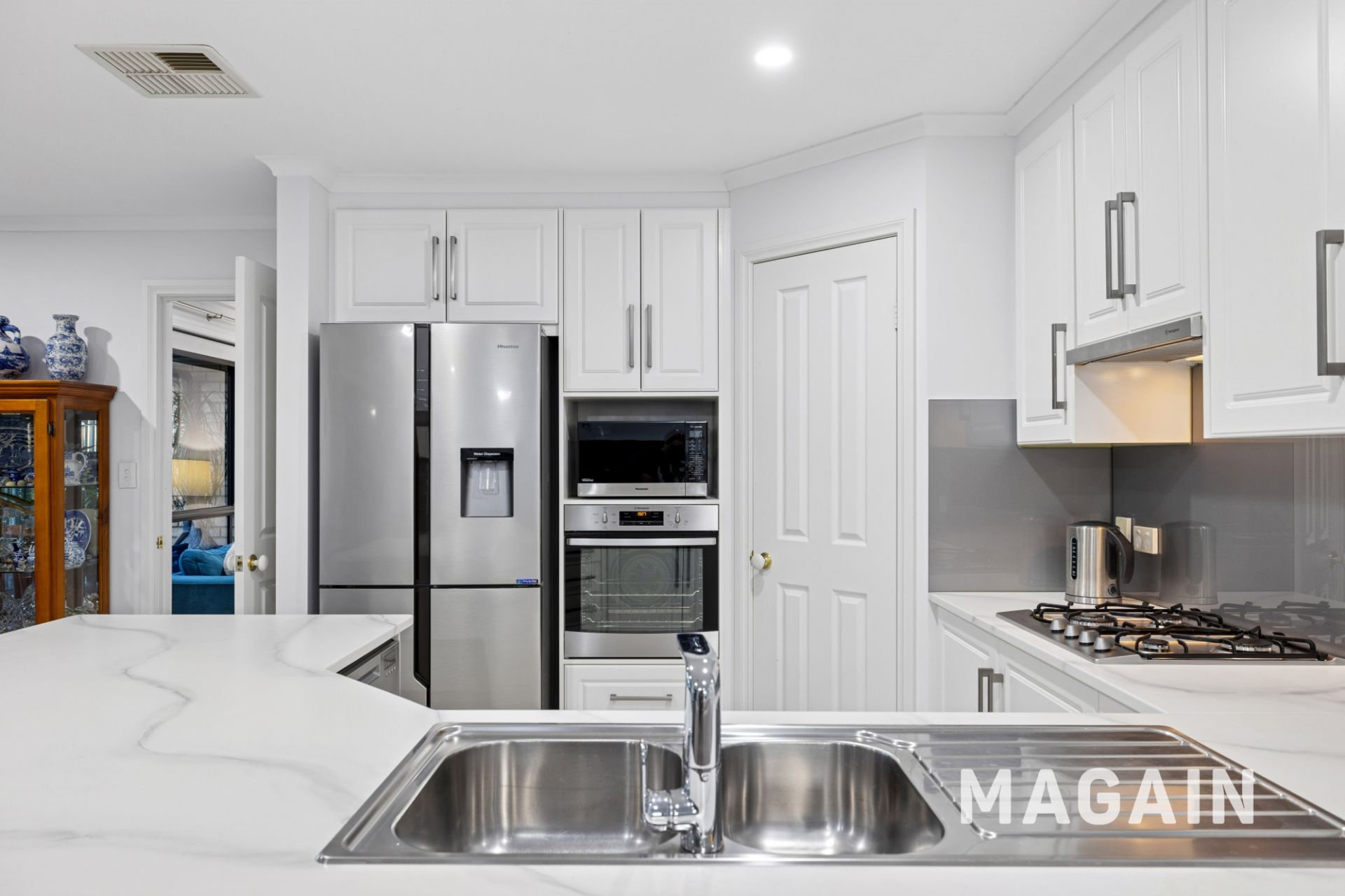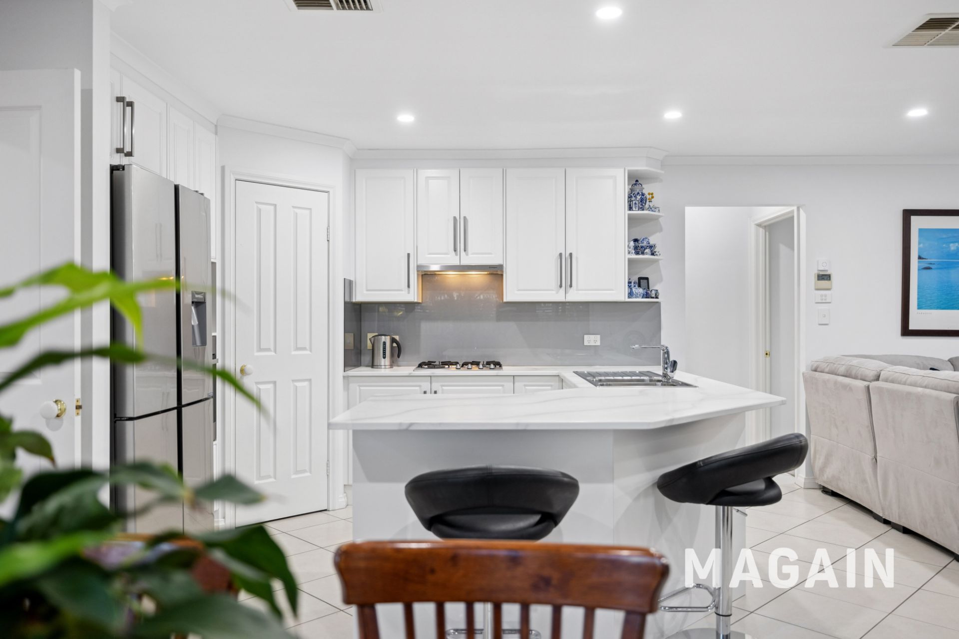 At the heart of the property sits a generous open-plan living and dining space overlooked by an impressively updated kitchen. Featuring a dual drawer dishwasher, stainless steel appliances including a gas cooktop, rangehood and dual sink, as well as abundant storage, bench space and a corner walk-in pantry, this is a kitchen designed for both style and practicality.