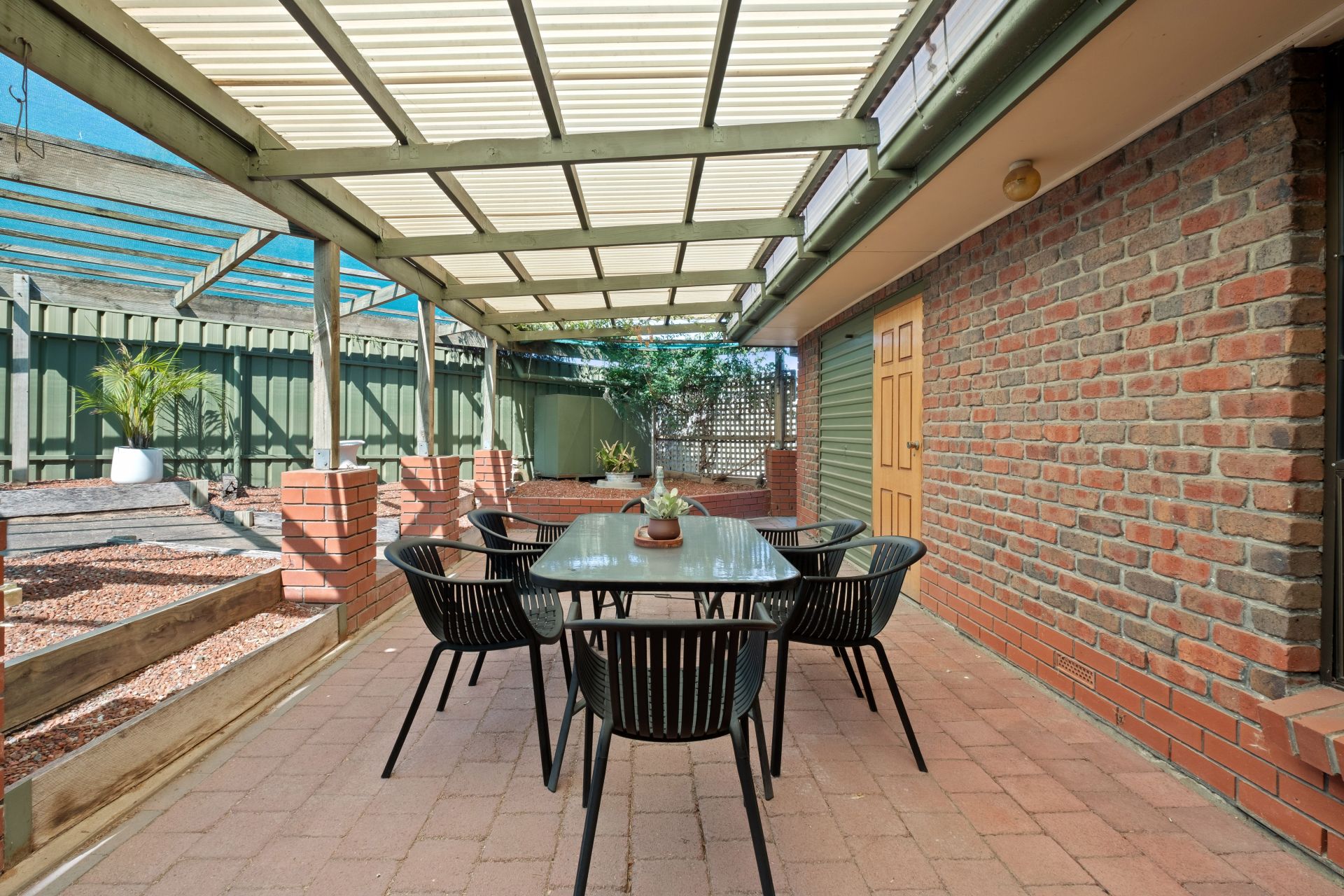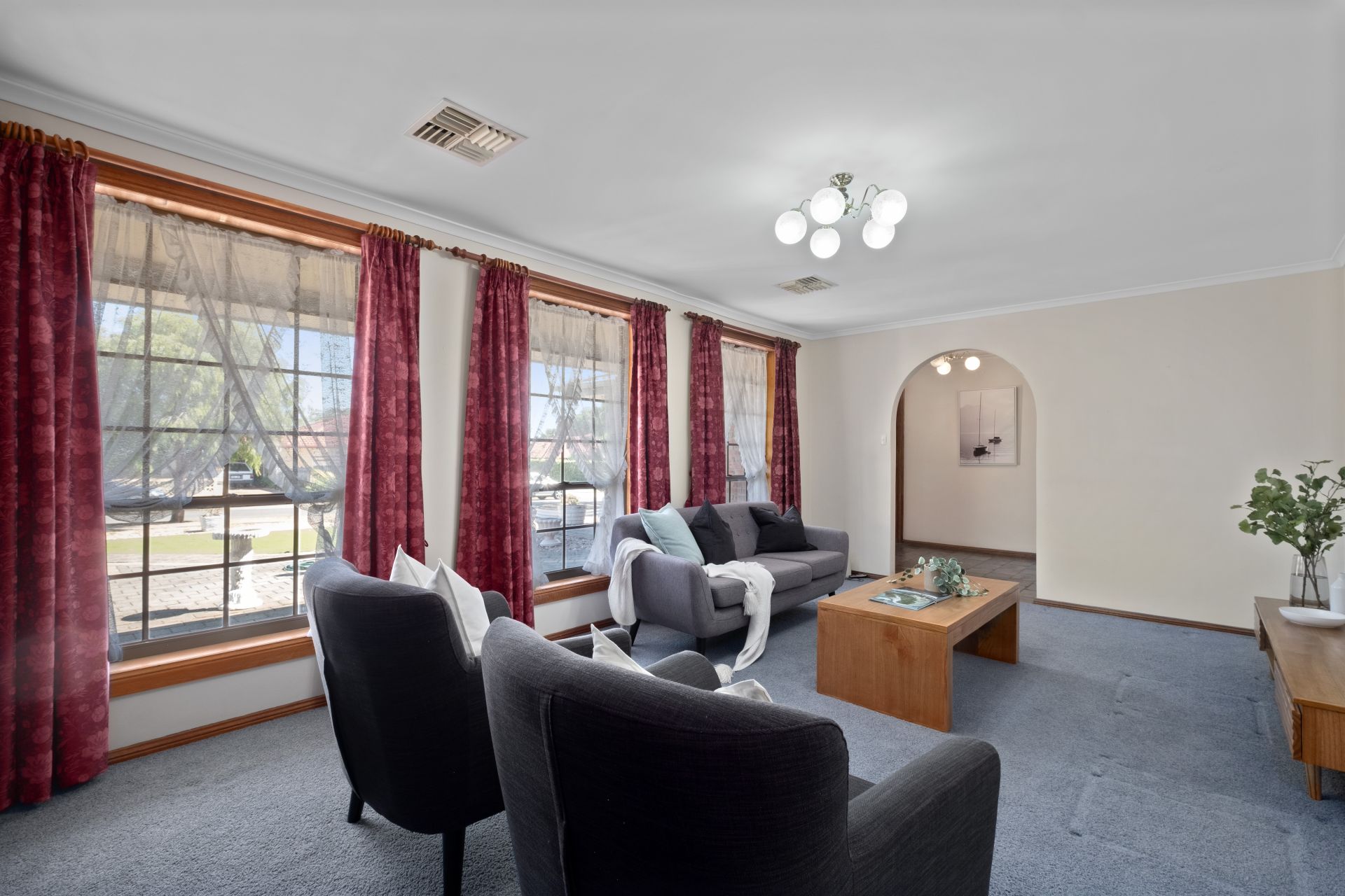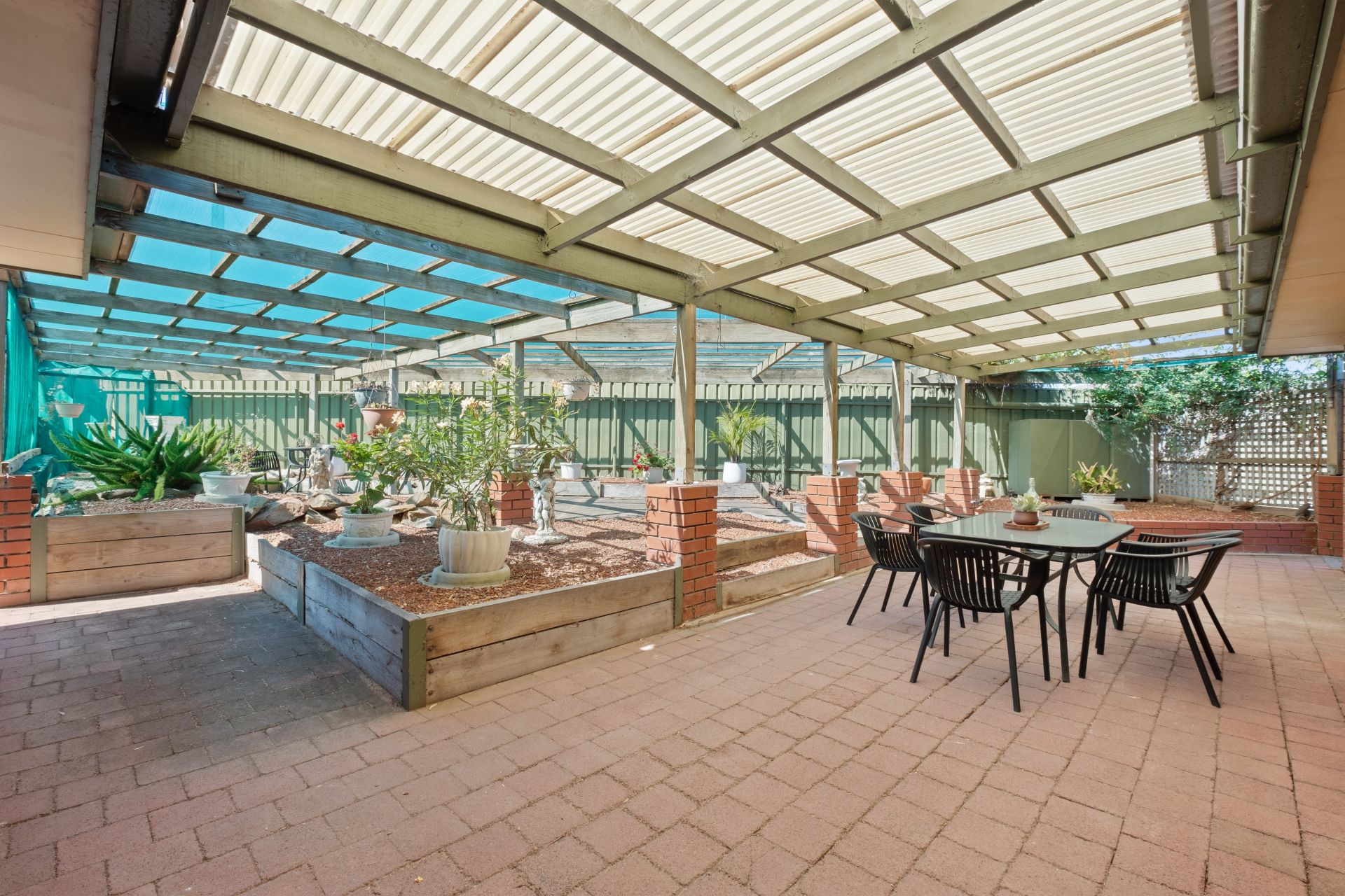 Positioned on a valuable corner allotment, the highlight of this property is the outdoor area. The kids will love the sparkling in-ground swimming pool, it is private and secluded with a paved area for the adults to sit back and relax while the kids splash around. Enjoy outdoor entertaining under the large pergola, part solid roof and part shade cloth, it is accessed from the family room and is the ideal place for hosting family gatherings, birthday celebrations or summer barbeques with friends. An additional paved area is a versatile space while the pergola down the side of the house could be utilised as a fernery. There is plenty of room for parking multiple vehicles, the garage is oversized with room for two small cars or one car and a trailer, with a roller door on the front plus a p/a door to the backyard & one to the front patio. Additional off-street parking in the driveway, a second driveway plus rear access from Parham Crescent with room for a boat/caravan etc behind the gates. The established gardens are easy-care with fruit trees, roses and artificial lawn.