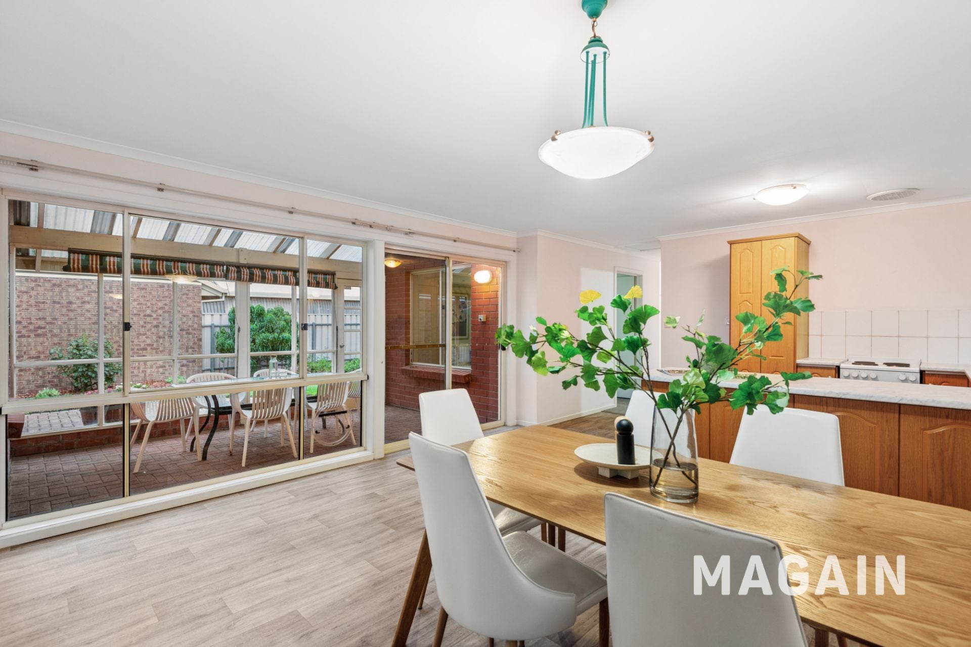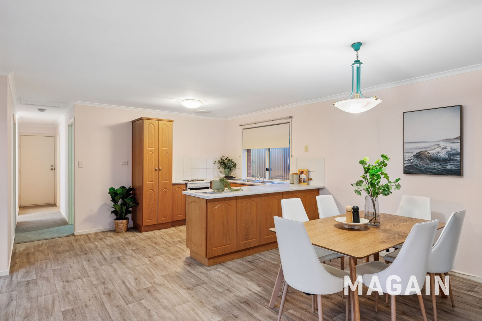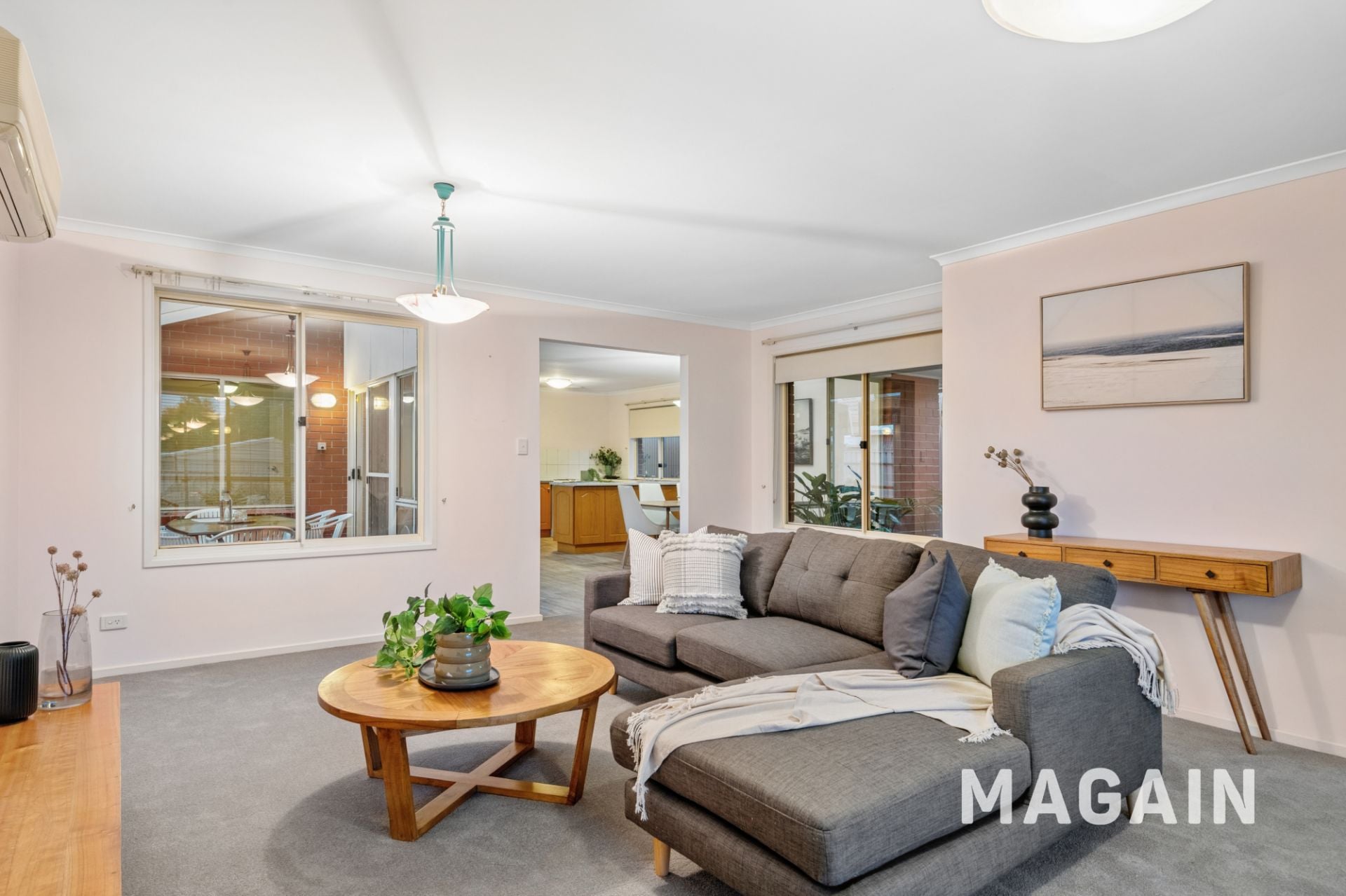 The heart of the home flows seamlessly to the kitchen, dining and casual living area. The kitchen is both practical and inviting, featuring an electric cooktop, stainless steel double sink and a breakfast-bar style bench ideal for everyday living or entertaining. A conventional three-way bathroom services the home with separate bath and shower, a separate toilet and a spacious vanity/powder area while the large laundry room is positioned at the rear of the home.