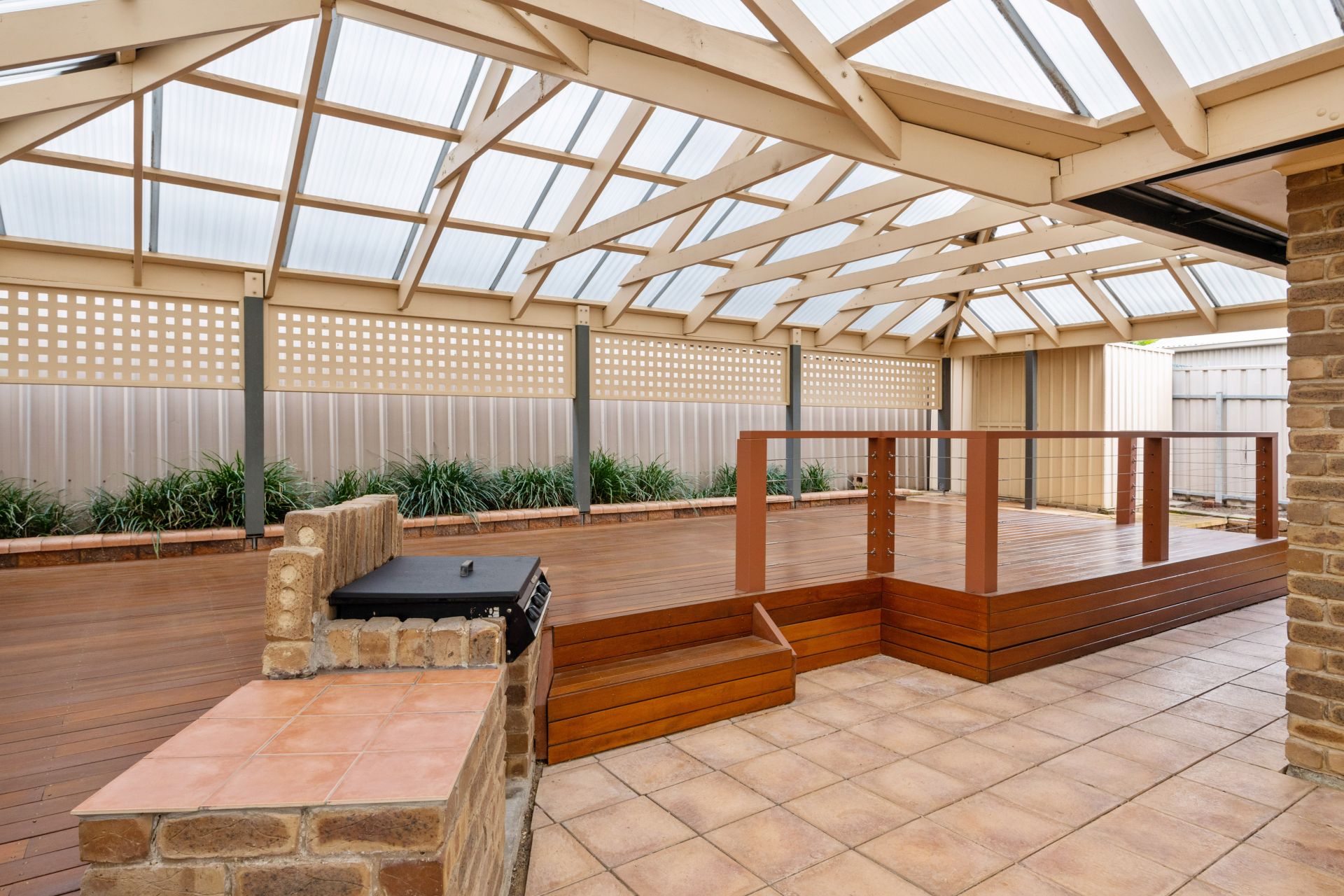 > large outdoor decked entertaining area