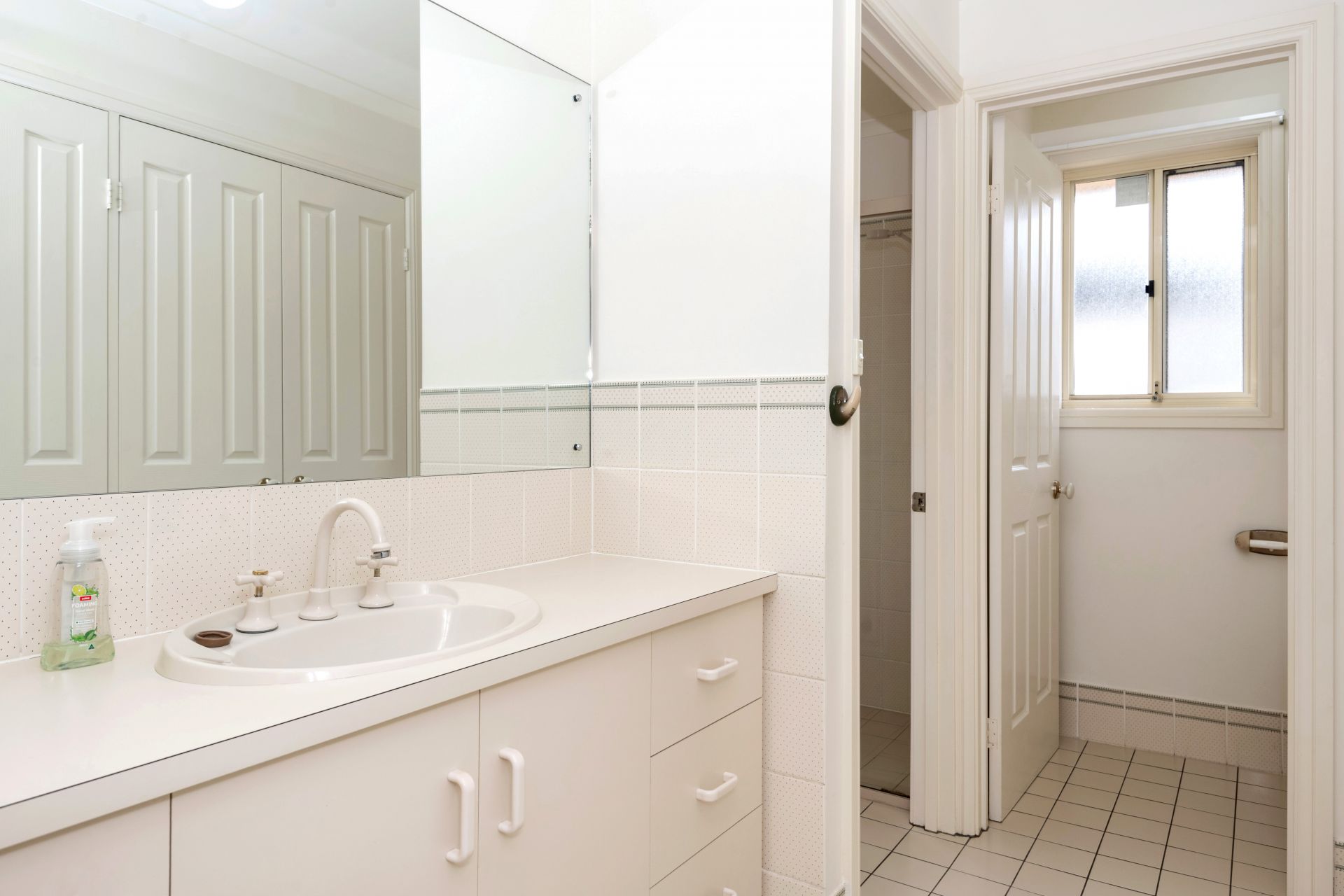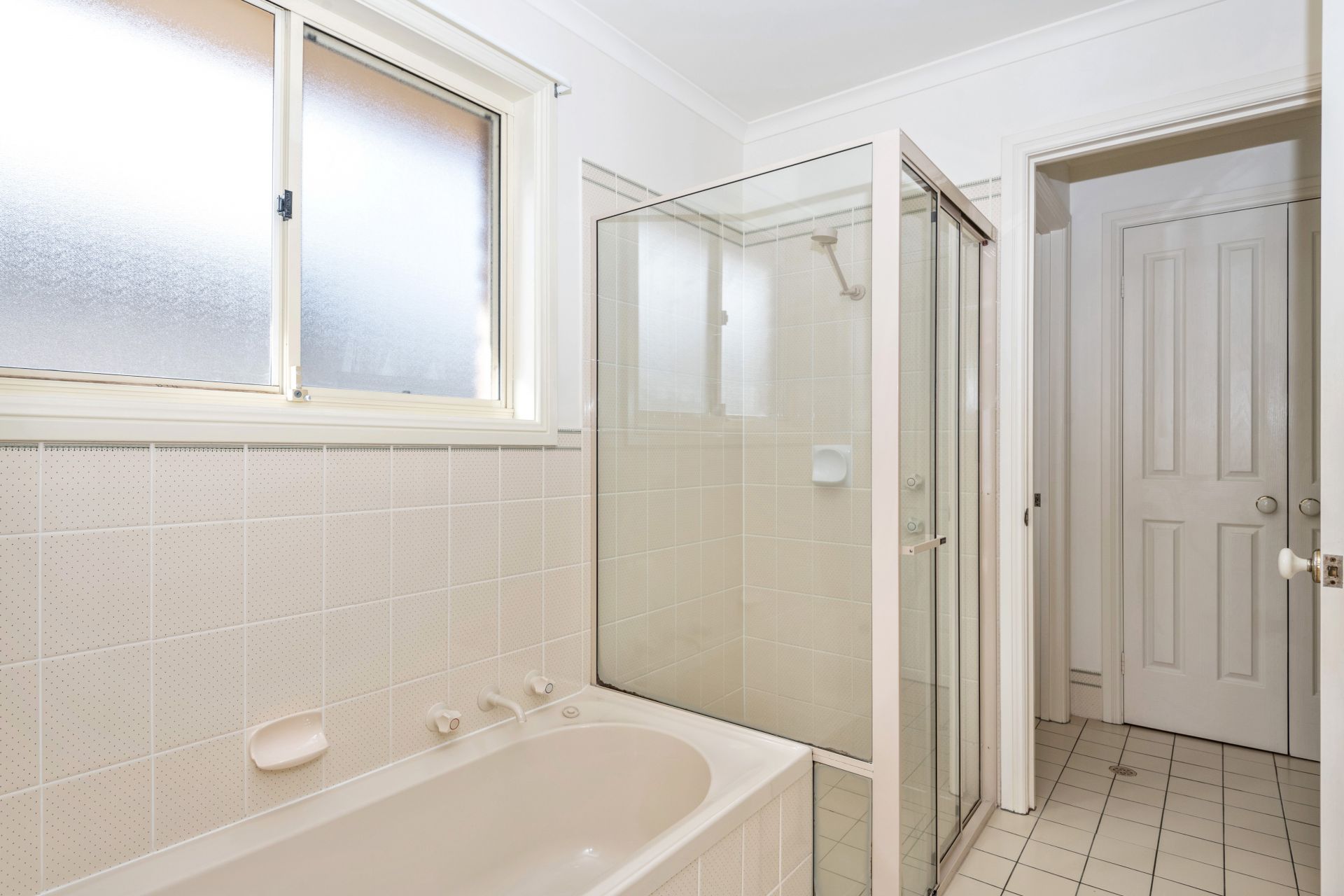 > neat and airy 2-way bathroom with separate shower, bath and toilet