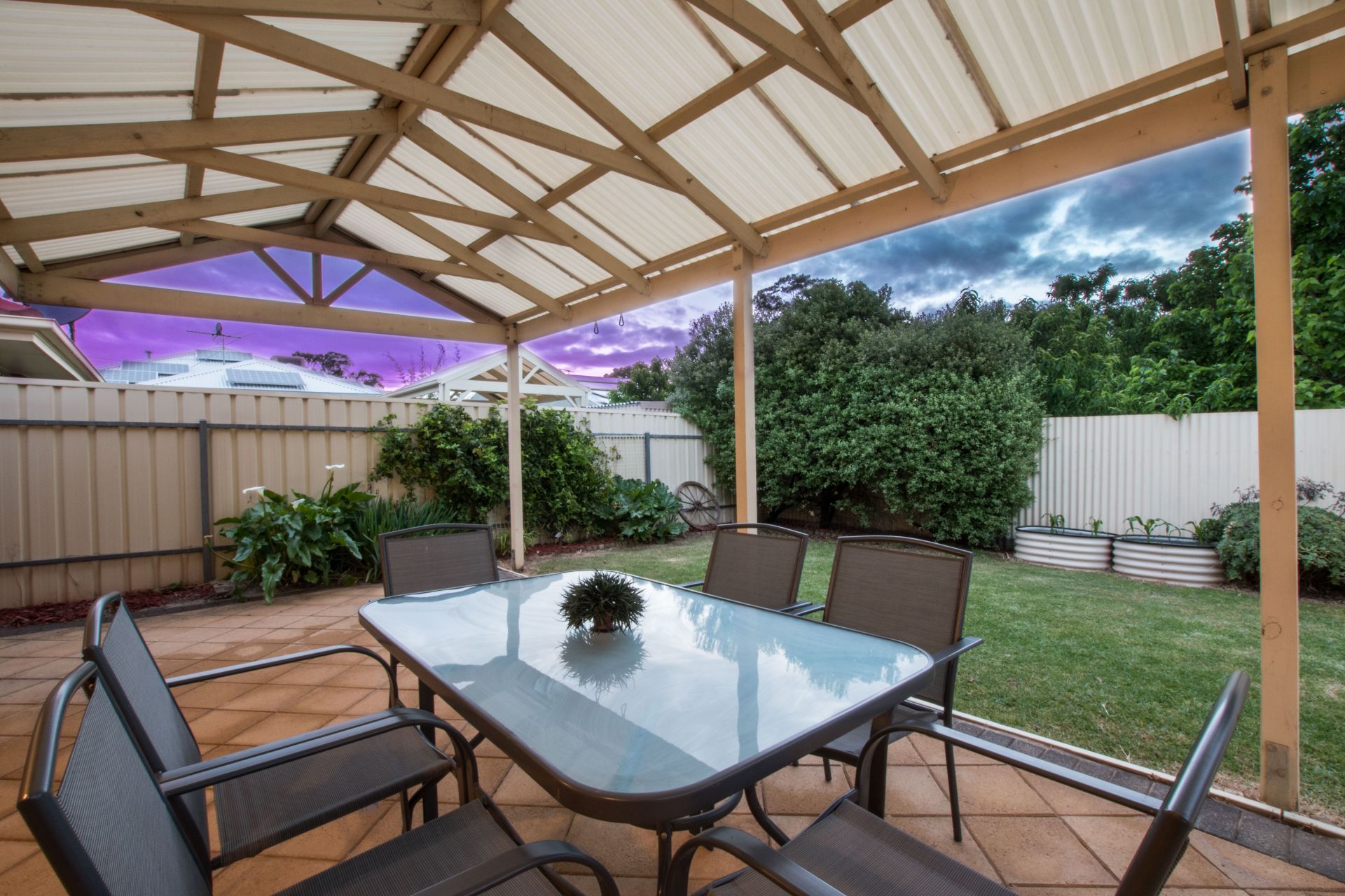 Entertain in style this summer under this brilliant outdoor entertaining area. There is plenty of room to host your family and friends and cook a barbecue under the pitched pergola, all while watching the kids run around on the low maintenance yet spacious lawned area. The gardens have been well manicured and there is a garden shed for that extra storage.