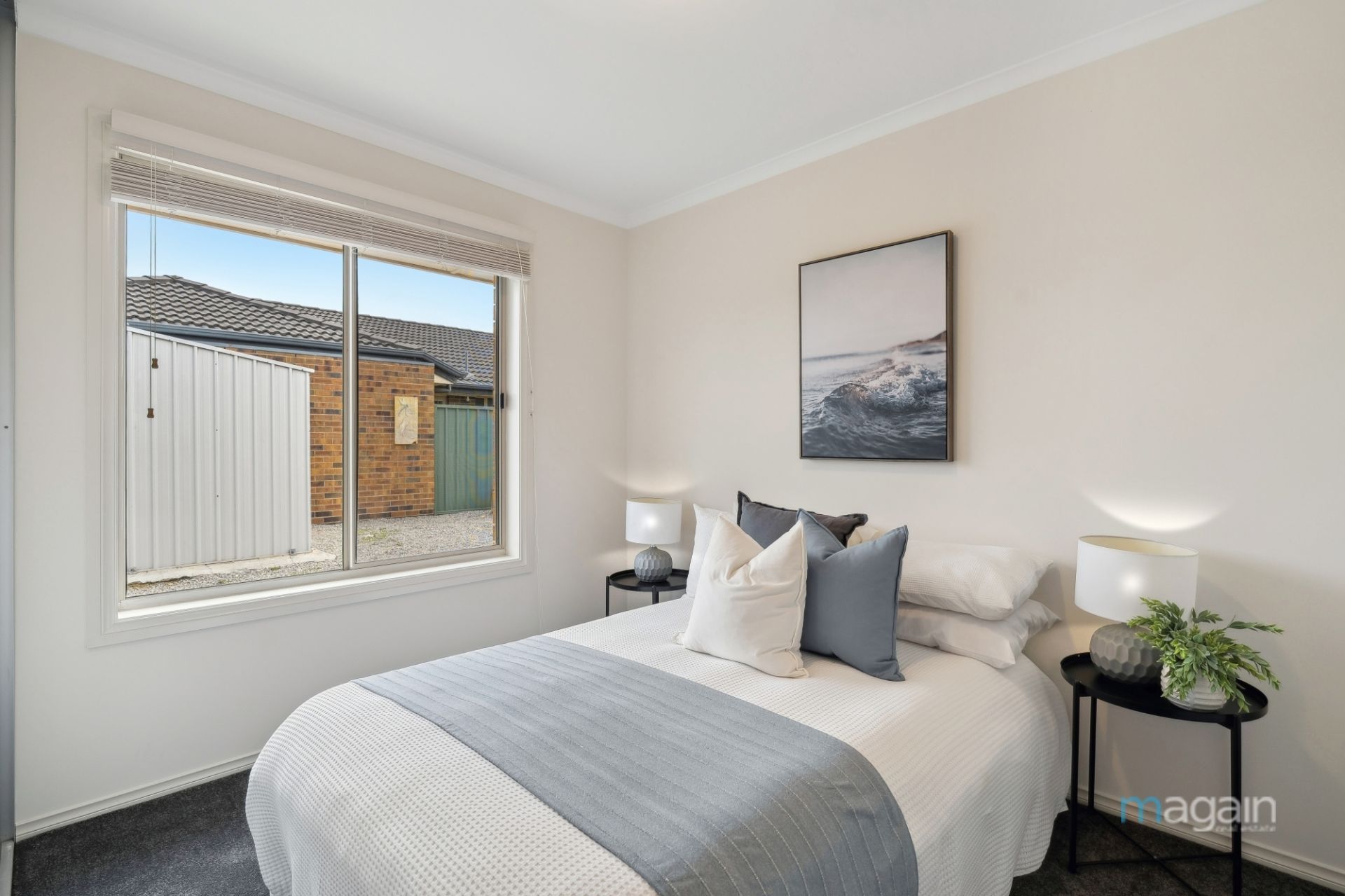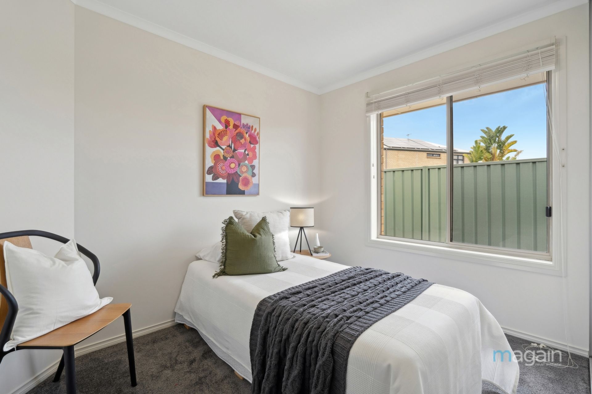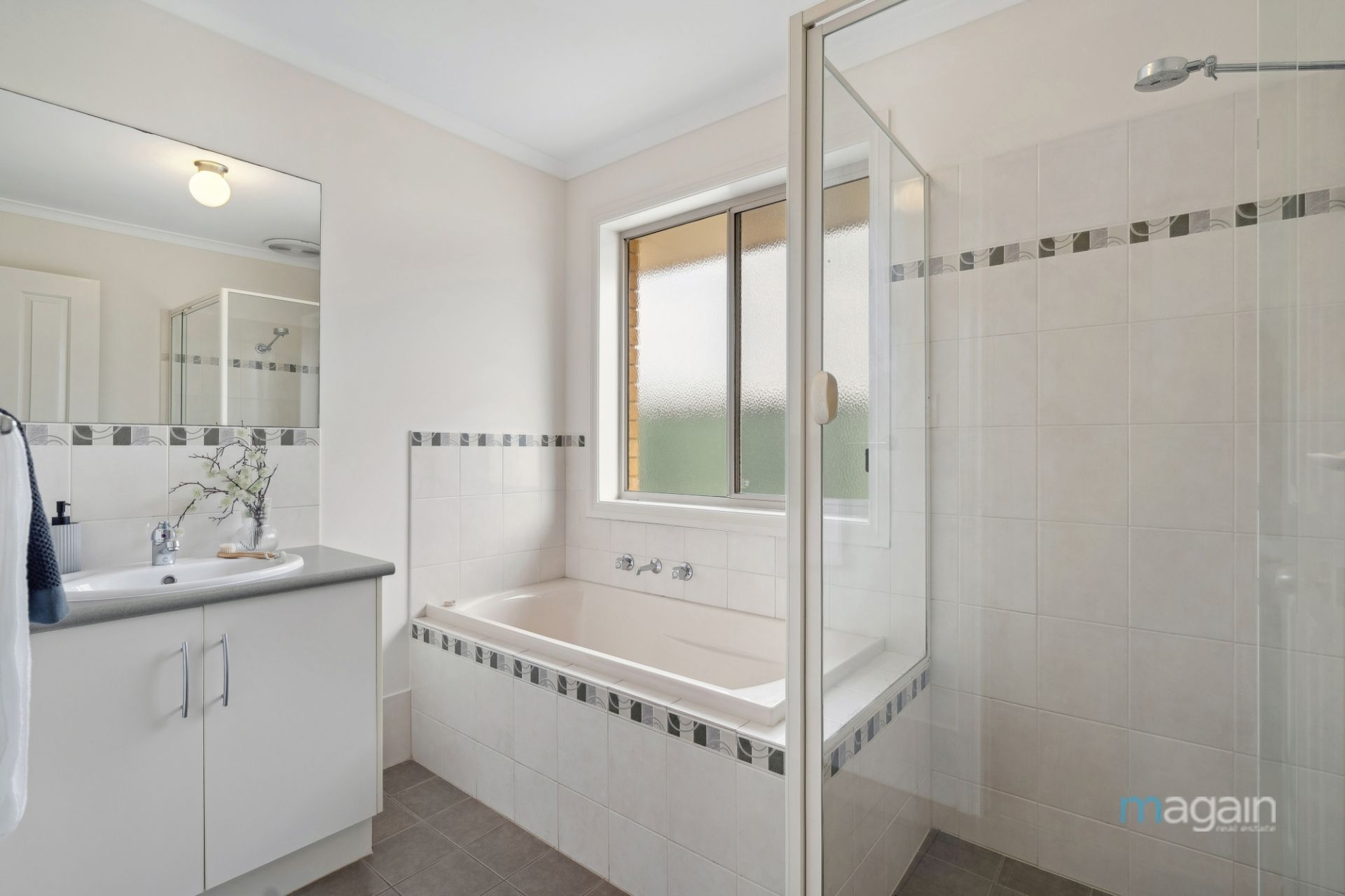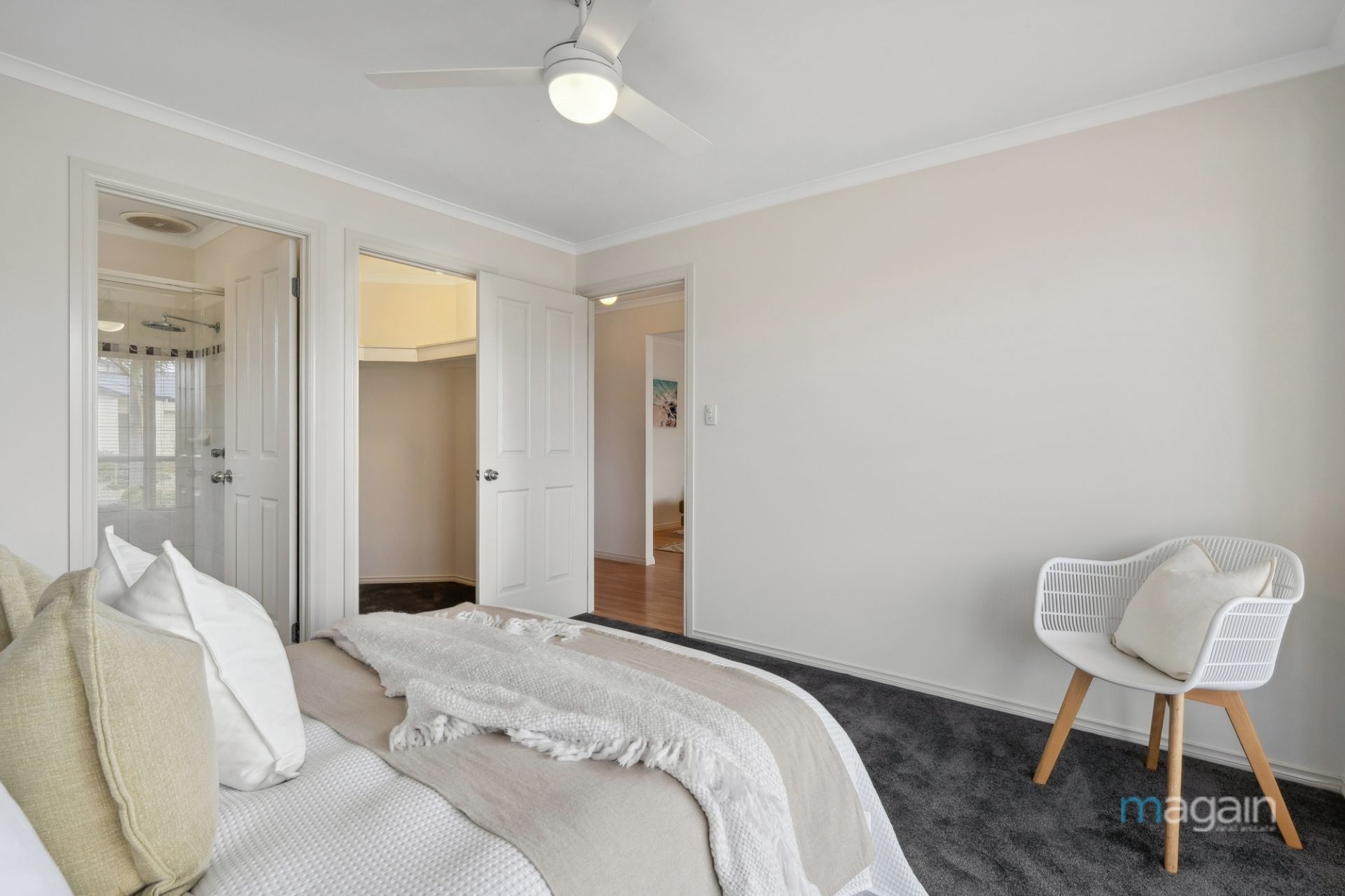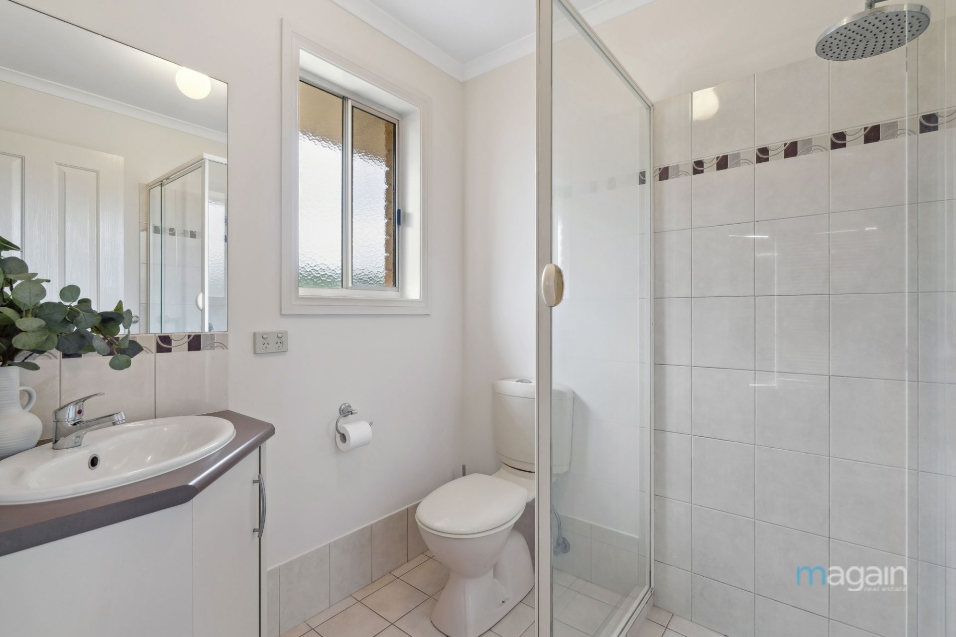 The main bedroom is a true retreat, offering a peaceful haven complete with a walk-in robe and a private ensuite bathroom. This serene space is perfect for unwinding after a long day, providing both comfort and privacy. The two additional bedrooms are thoughtfully designed, each complete with built-in robes. These bedrooms are serviced by a family-friendly bathroom, which includes a toilet ensuring convenience and space for everyone during busy mornings.