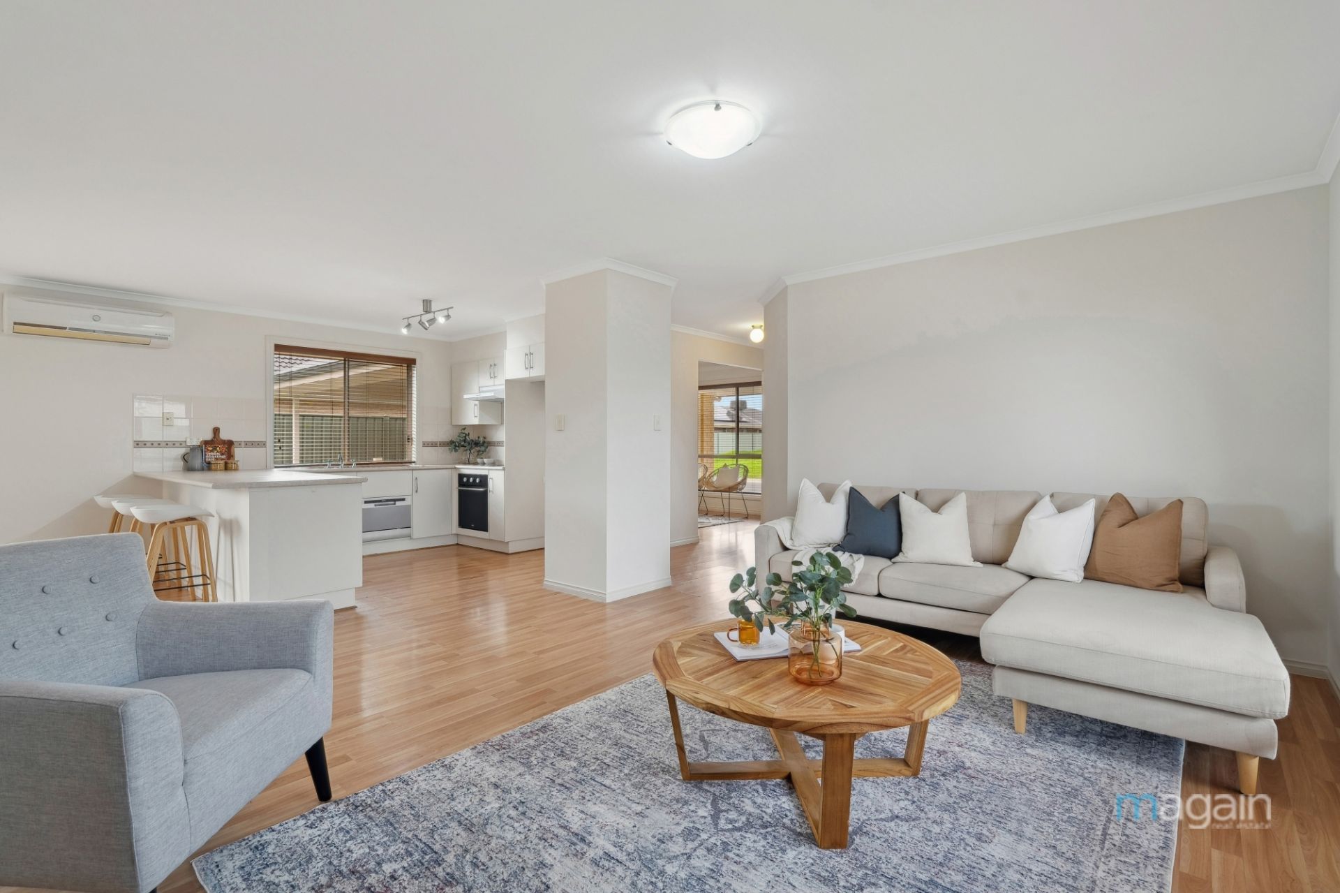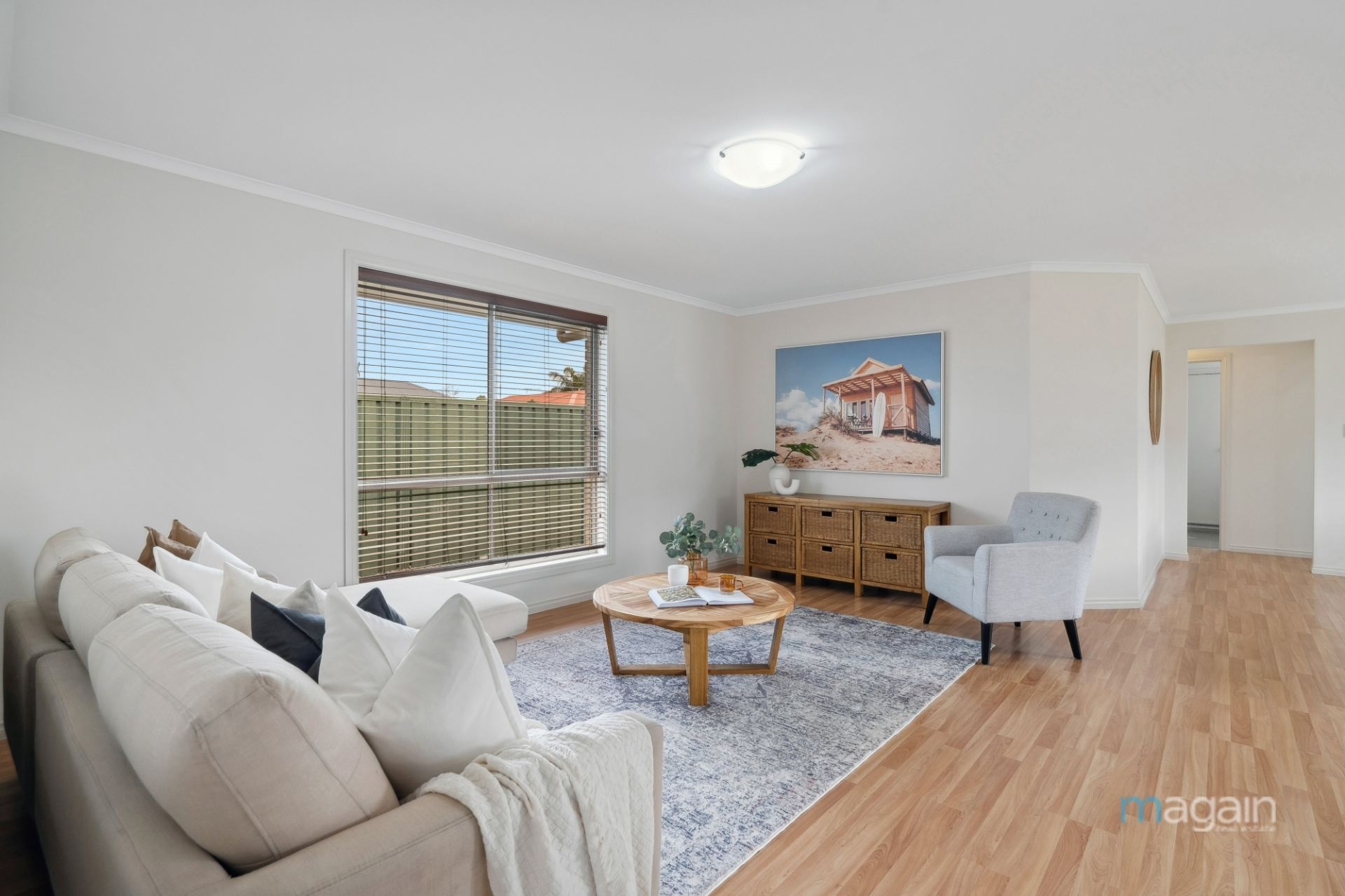 As you step inside, you're immediately welcomed by the inviting atmosphere of a freshly painted home, complemented by brand new carpet in each of the three bedrooms. The interior boasts neutral colour tones that enhance the feeling of spaciousness and light, while the timber-look flooring throughout the living areas adds a touch of warmth and sophistication.