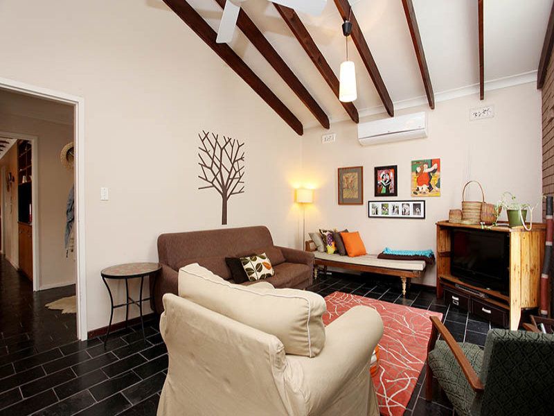 This lovely home offers three bedrooms all with polished floors, ceiling fans & built-in robe to main. The large living area is set to the front of the home and features a cathedral ceiling with exposed beams, split system air conditioner and slate floors. Central two way bathroom has been updated with spa bath, while a second toilet is located just off the laundry. The spacious kitchen with dishwasher is adjacent the dining area with sliding door that leads to the outside entertaining area.