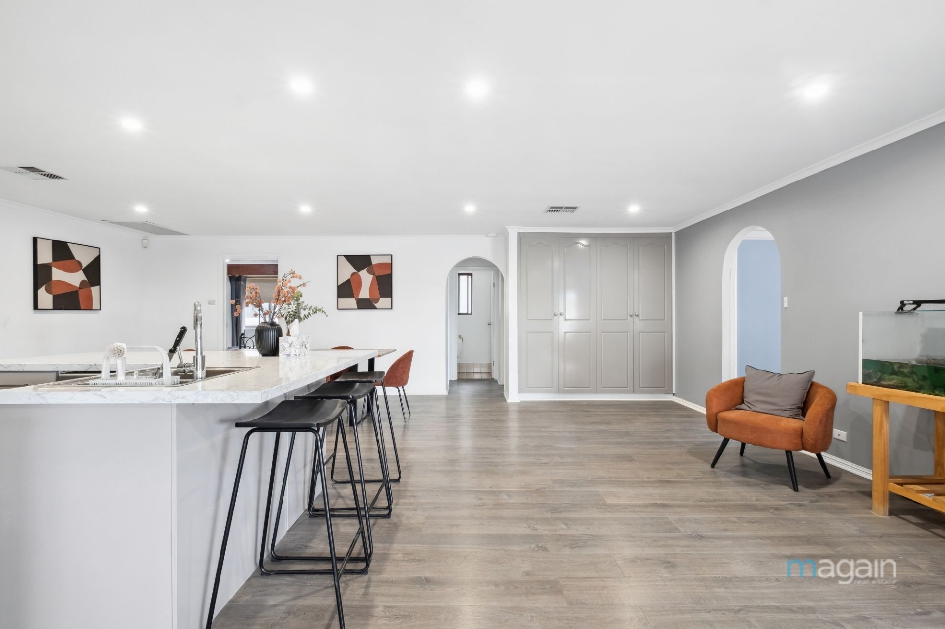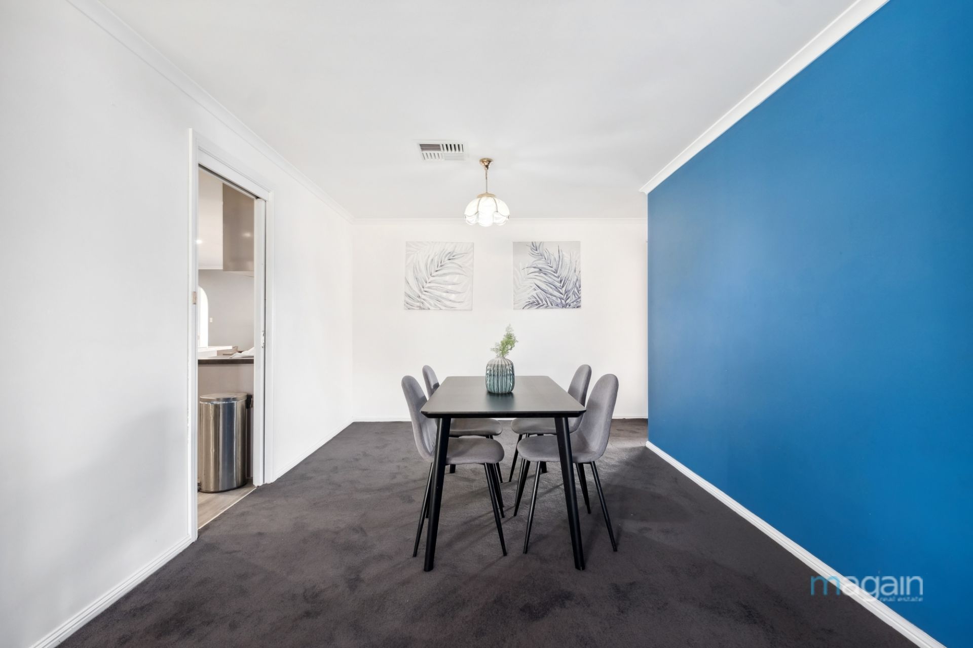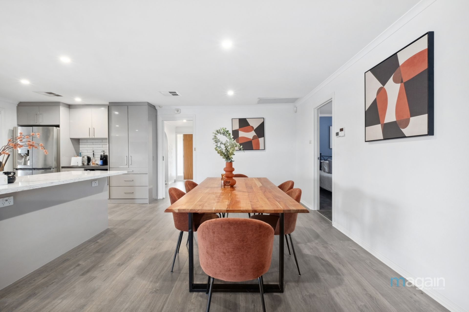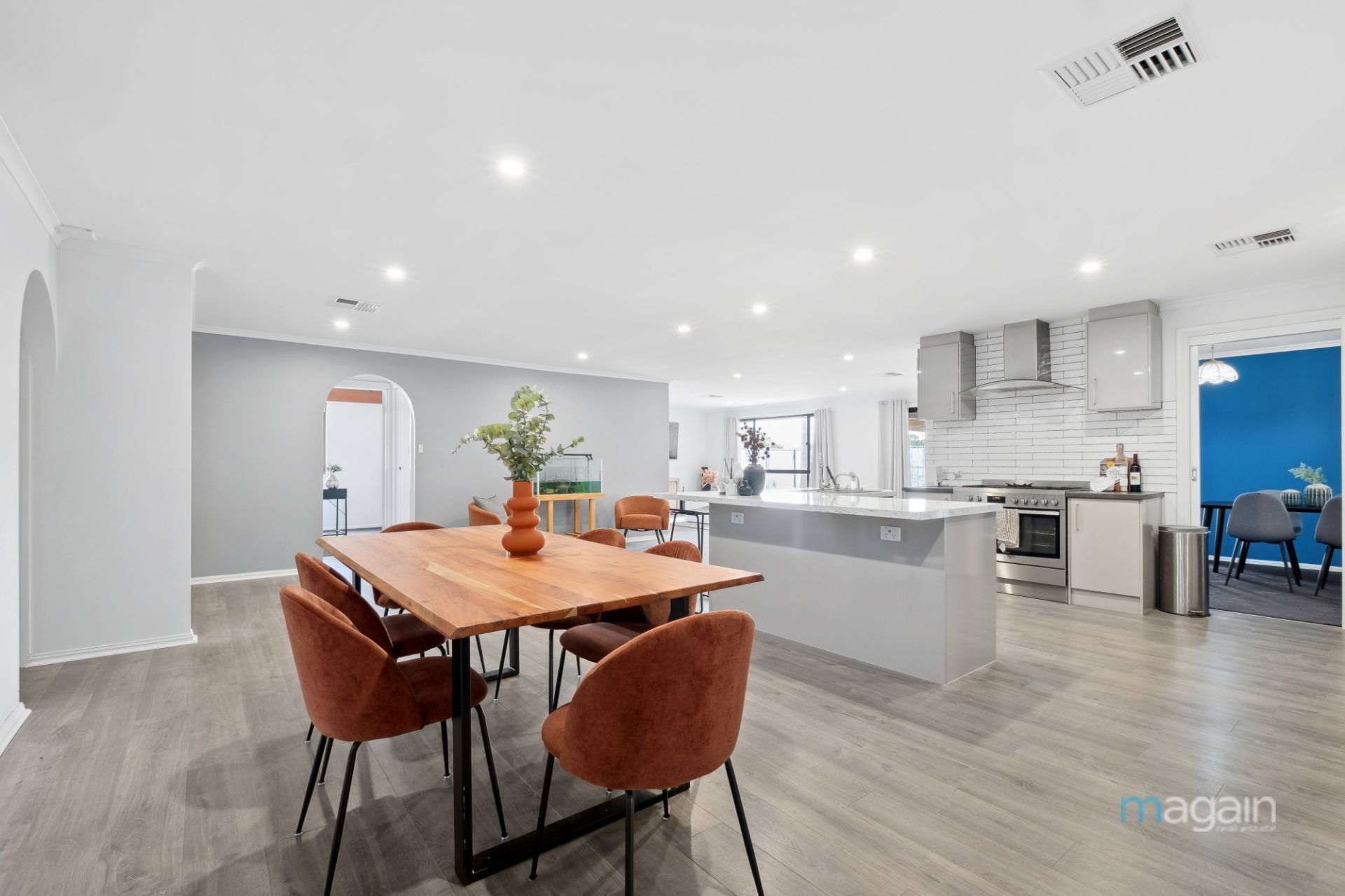 Discover the epitome of family living in this beautifully presented home nestled in the heart of Woodcroft. The allure begins with an inviting kerbside appeal, setting the stage for a remarkable journey through this home. Enter through to a neat entry hall, that gracefully ushers you into an L-shaped formal lounge and dining area, creating an atmosphere of warmth and sophistication.