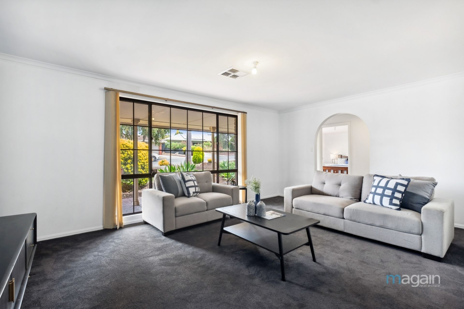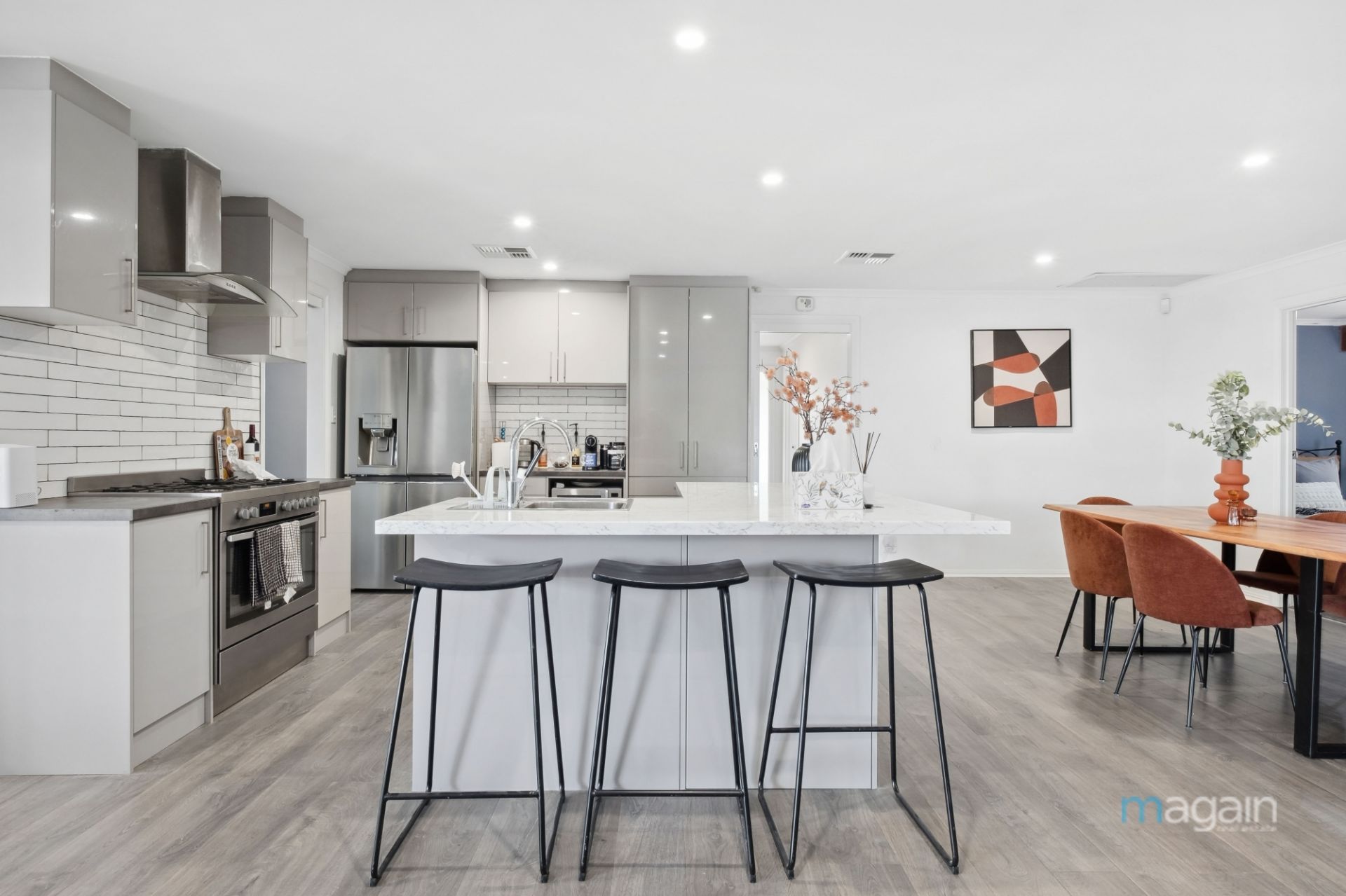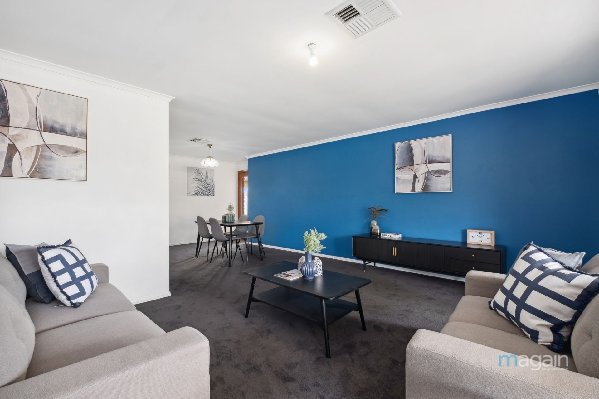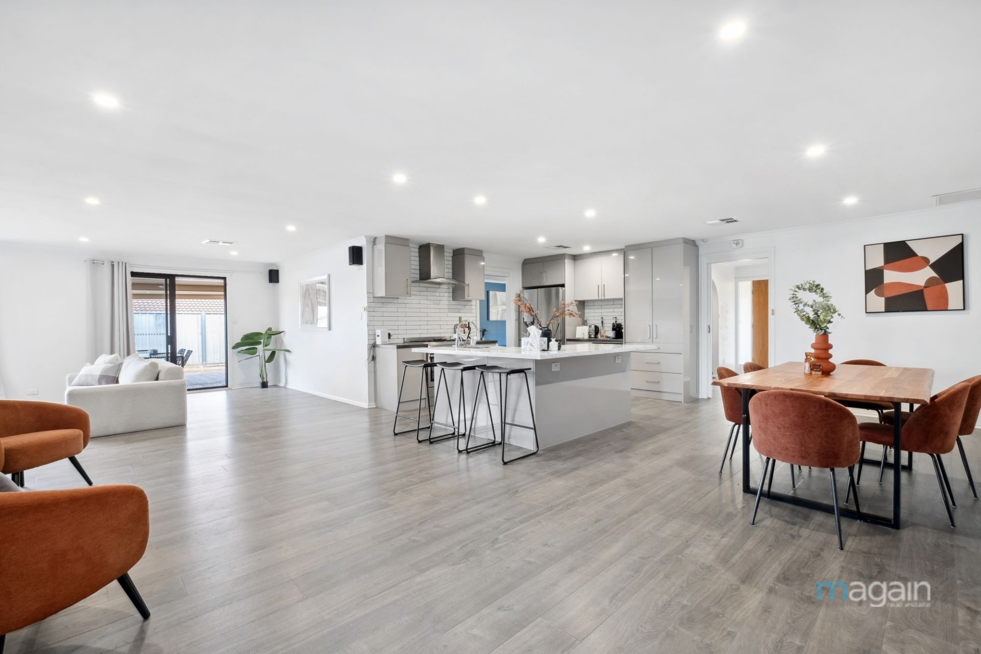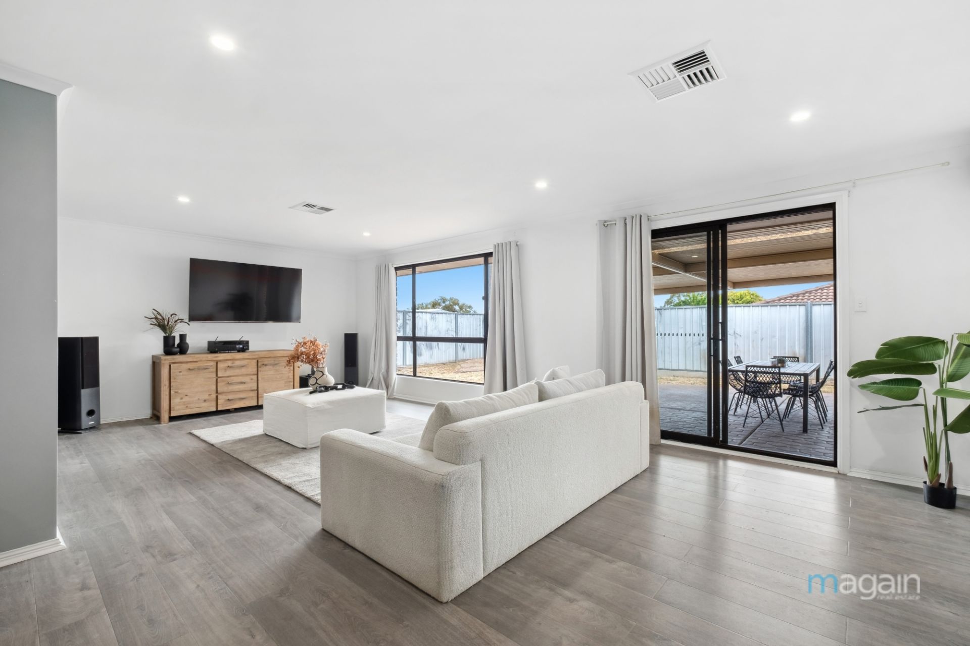 Discover the epitome of family living in this beautifully presented home nestled in the heart of Woodcroft. The allure begins with an inviting kerbside appeal, setting the stage for a remarkable journey through this home. Enter through to a neat entry hall, that gracefully ushers you into an L-shaped formal lounge and dining area, creating an atmosphere of warmth and sophistication.