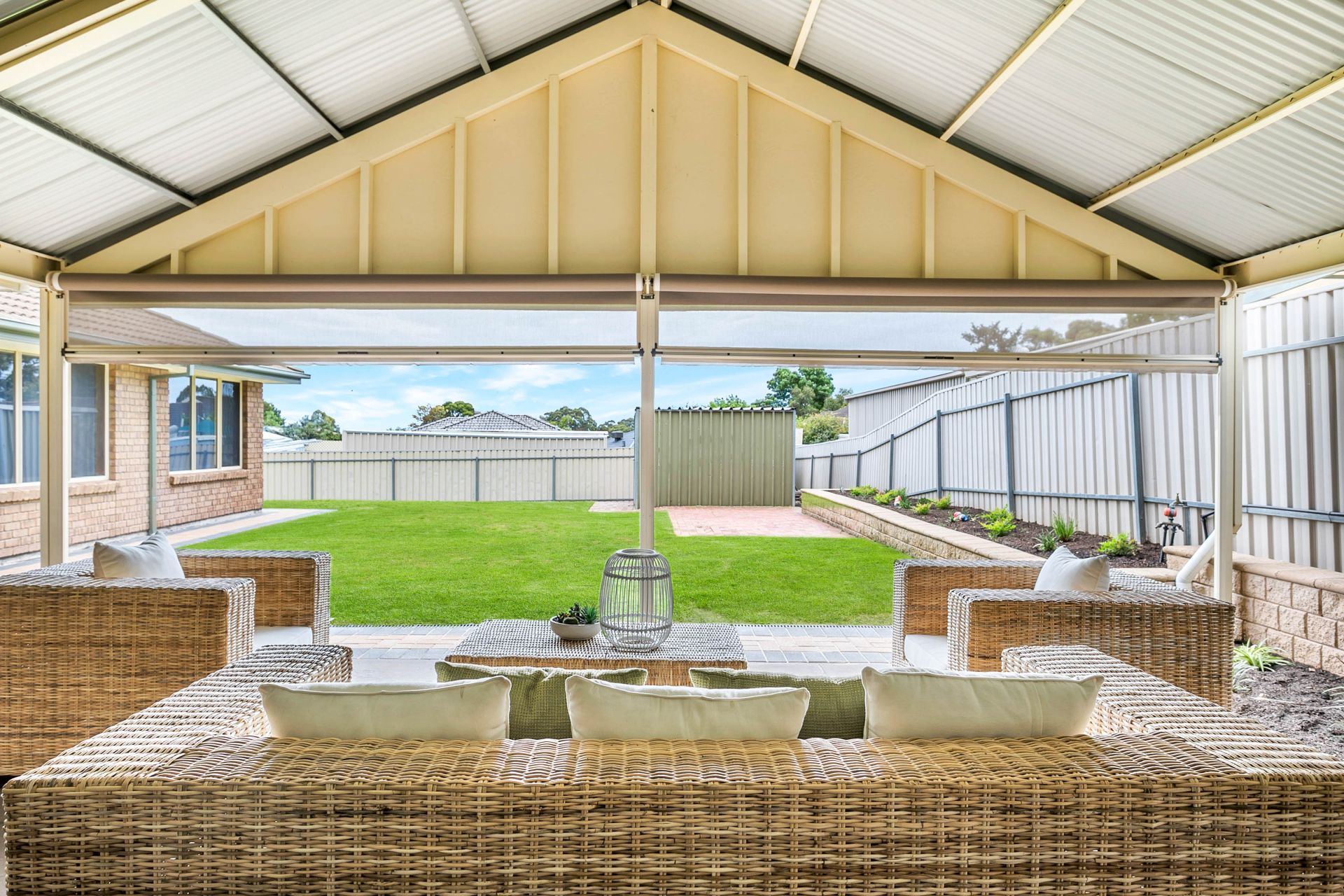 Heading outside you will be in awe of the sheer size of the place. The entertaining area spans a good 35sqm; a perfect place to entertain your family and friends all summer long. The entertaining area is complete with zip track blinds for year round comfort and overlooks the huge grassed area. The block is over 900 square meters so there is plenty of room for the kids to play around, or there is plenty of space to fit the family pool or drive through shed. There is a double garage under the main roof and two sheds for the handyman of the family.