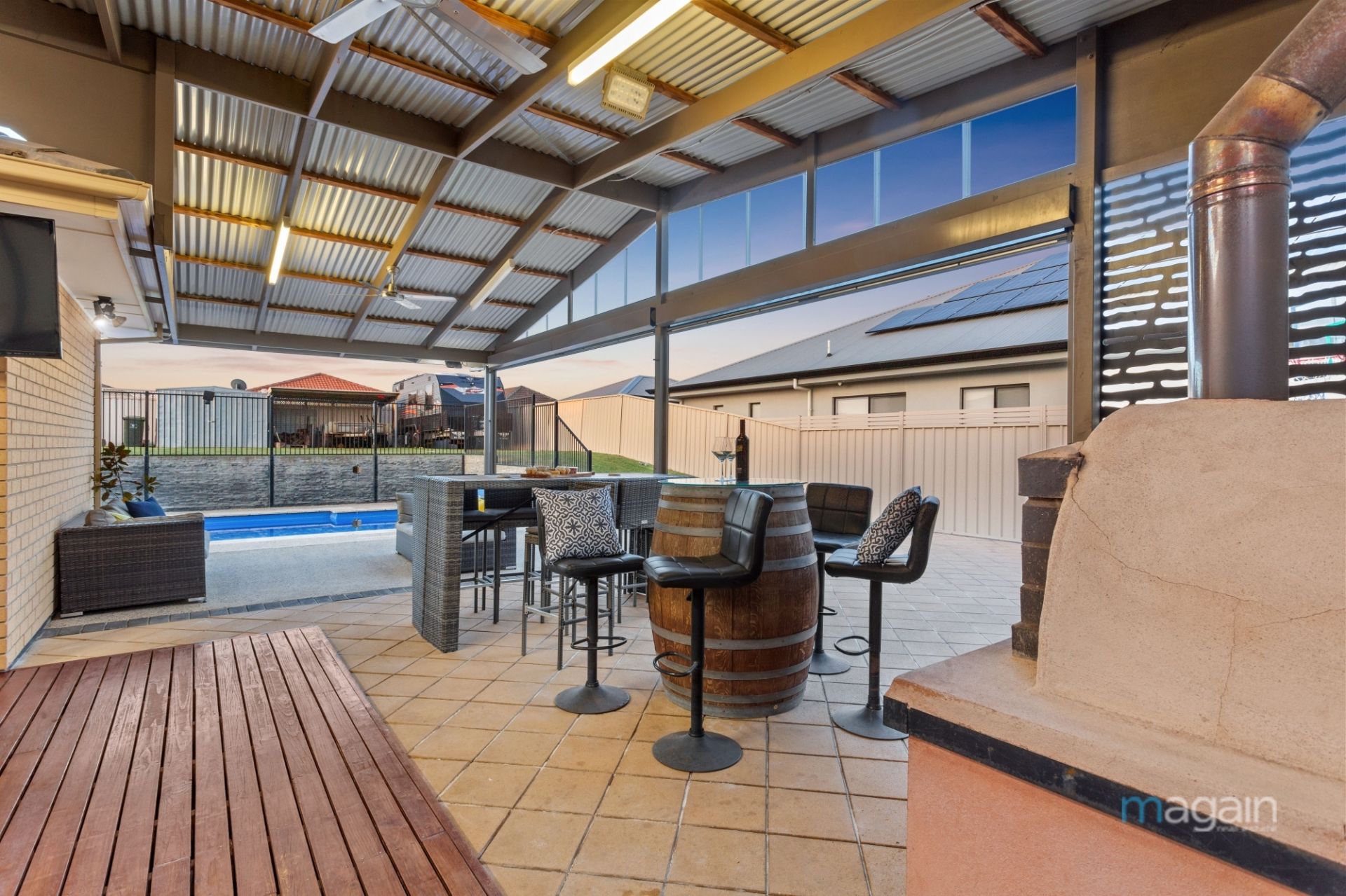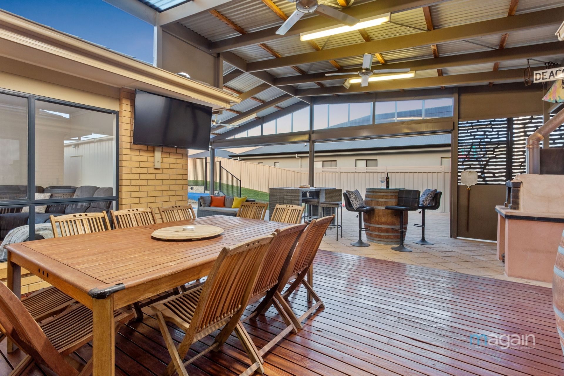 You'll be suitably impressed when you step outside onto the rear deck that is protected by an all weather pergola that wraps around the corner and comes with fitted café blinds. This space includes a wood oven and is the ultimate space to relax or entertain all year round!