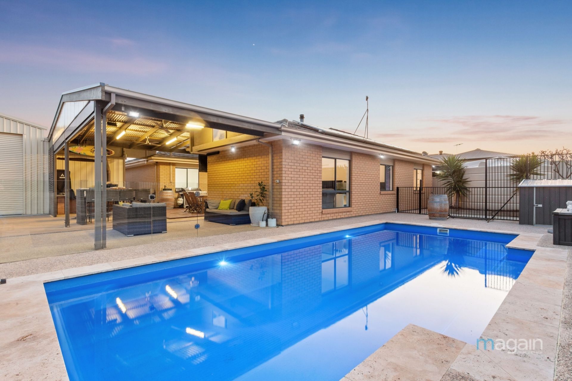 There is side access into the large garage/workshop that has a rear roller door that flows through to the back yard. Behind the house and overlooked by the rear outdoor entertaining area is a sparkling in-ground swimming pool that is perfectly positioned, just in-time for Summer.