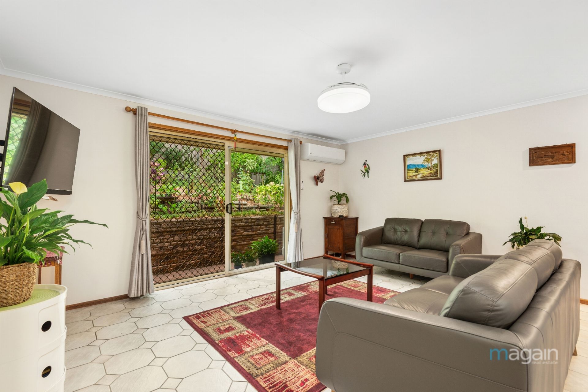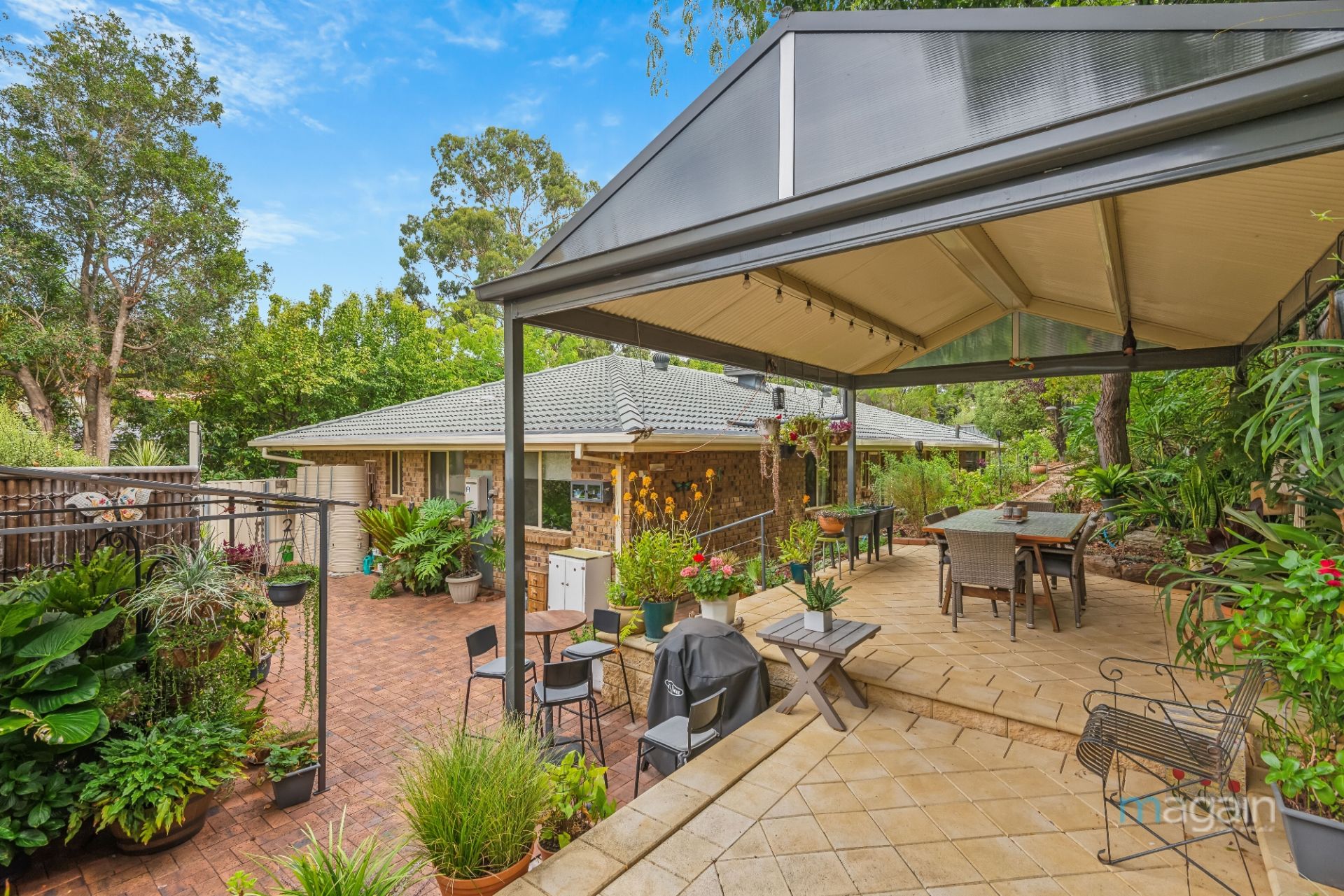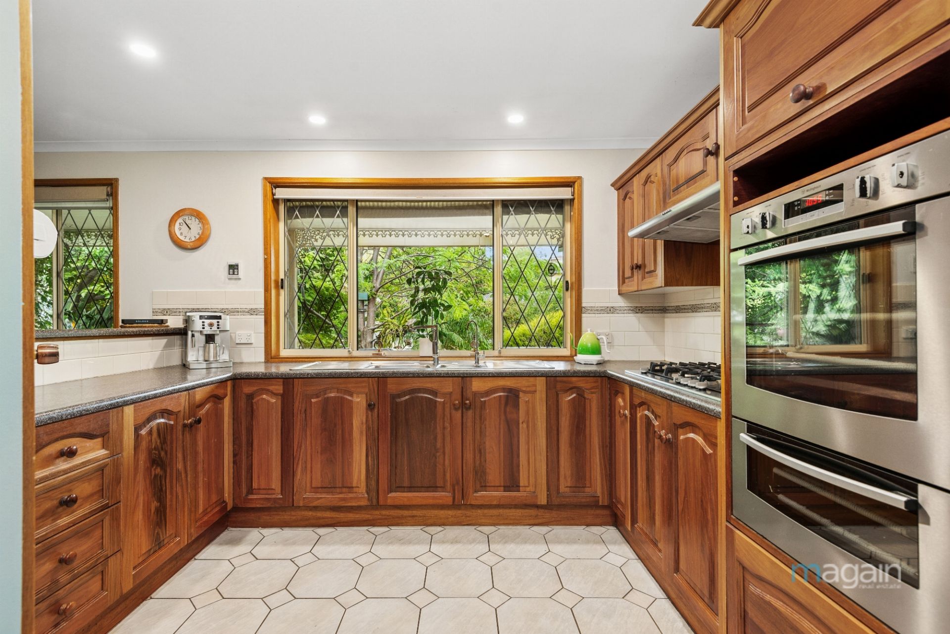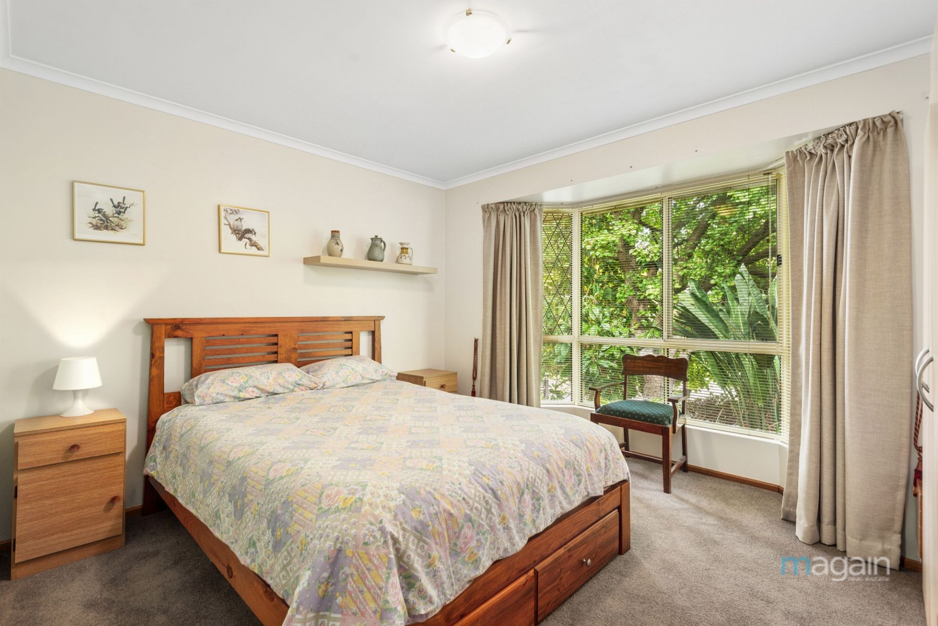 Outside, the elevated, pitched pergola creates the perfect space for entertaining while enjoying views of the lush surroundings. The backyard also offers two toolsheds and two rainwater tanks, ensuring practicality for garden enthusiasts. Separate and secure gate access to the yard provides a great storage solution for a boat, caravan, or trailer.