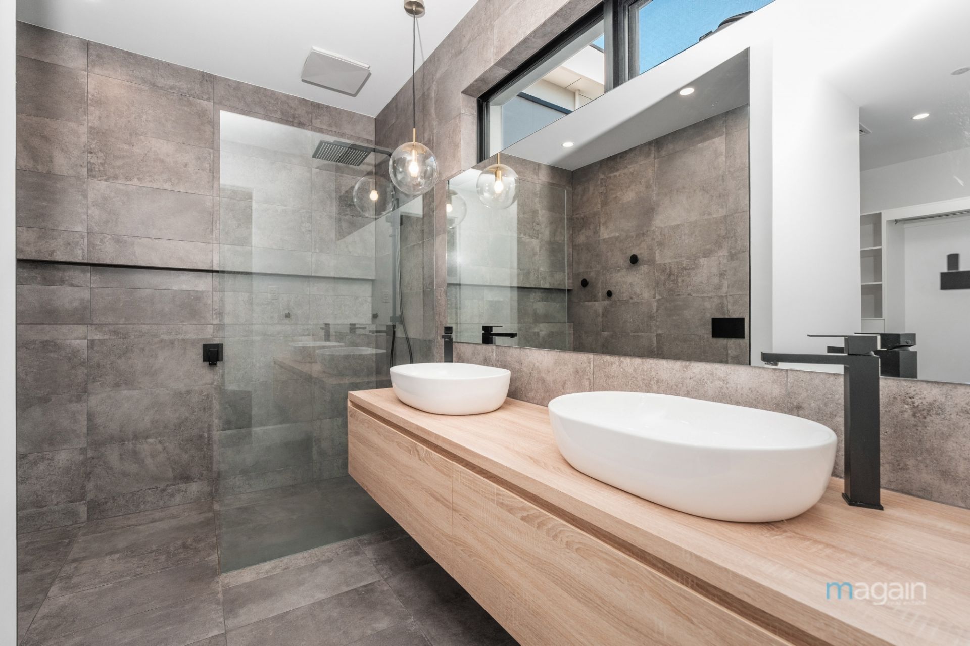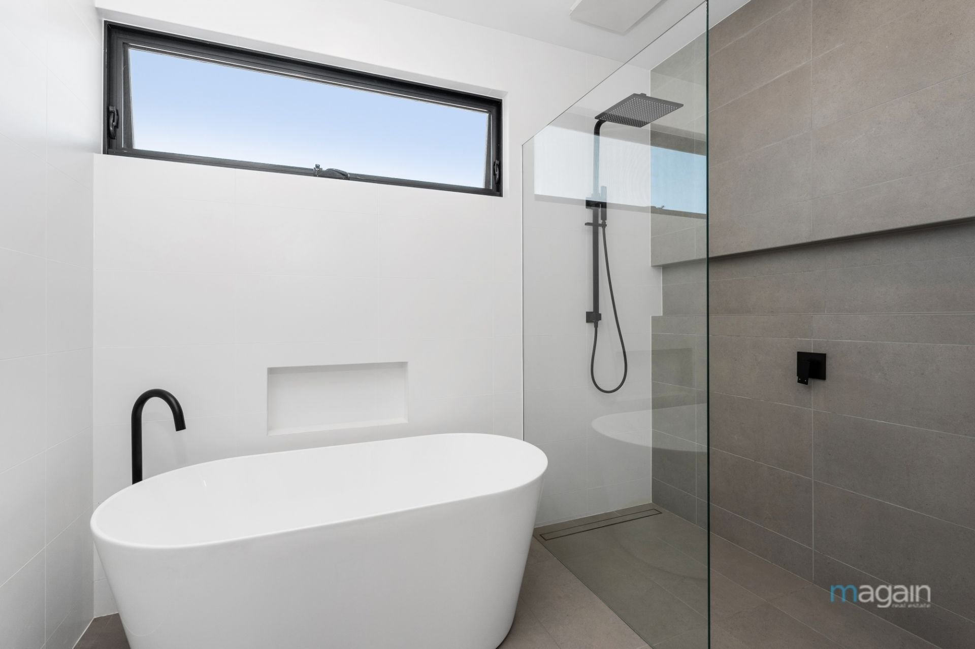 > bedroom 1 with walk in robe, ensuite and ceiling fan