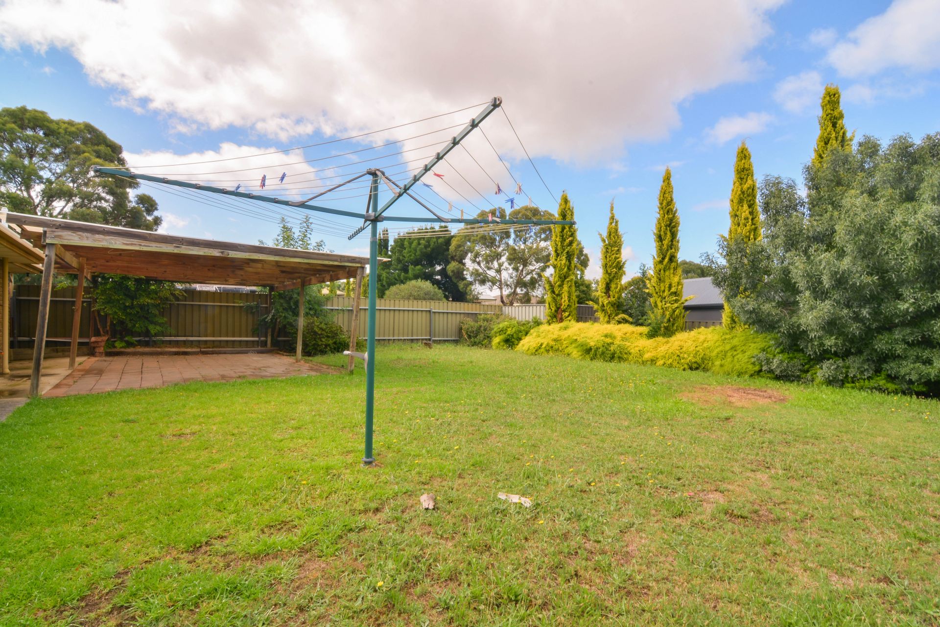 > the back yard is large and secure, with plenty of space for the kids to play or to entertain