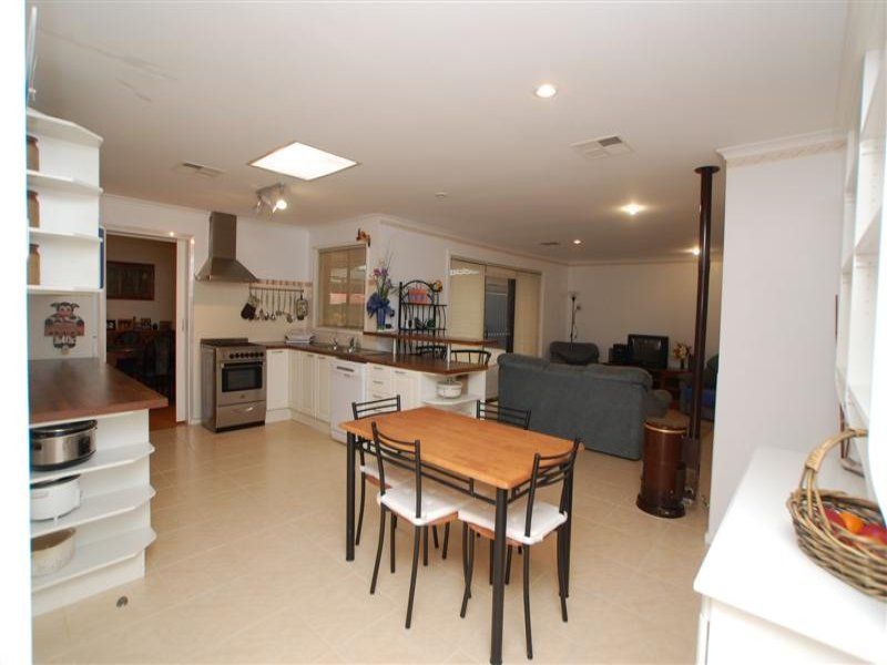 There are four bedrooms (three with robes), ensuite with spa bath, three way main bathroom and laundry.The main bedroom is sited well away from the children's area. The living areas feature stunning tiles whilst laminated flooring and new carpets are a feature in other sections of the home.