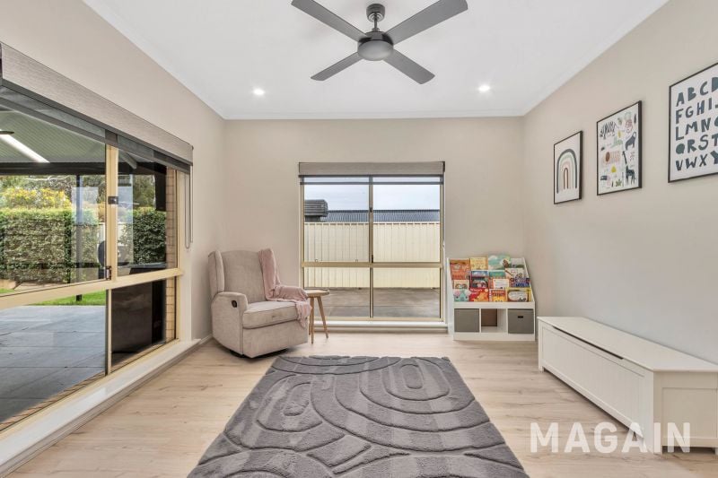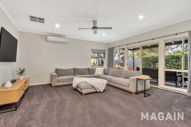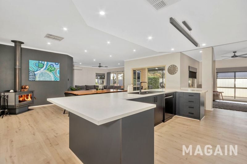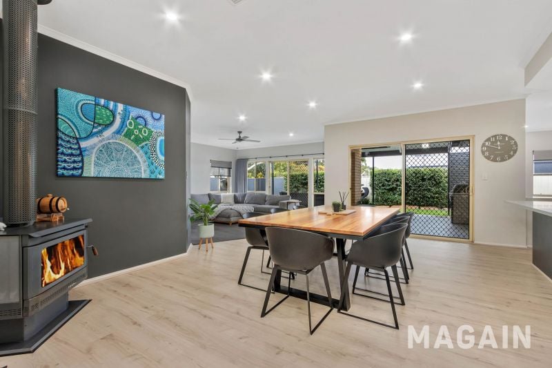 Inside, you're welcomed by 9ft ceilings that enhance the sense of space, complemented by multiple climate control options including evaporative cooling, reverse cycle split systems to the living area and bedroom 3, and a combustion heater for cosy winter nights. Ceiling fans feature throughout the main bedroom, lounge, activity room, and bedrooms 3 and 4.